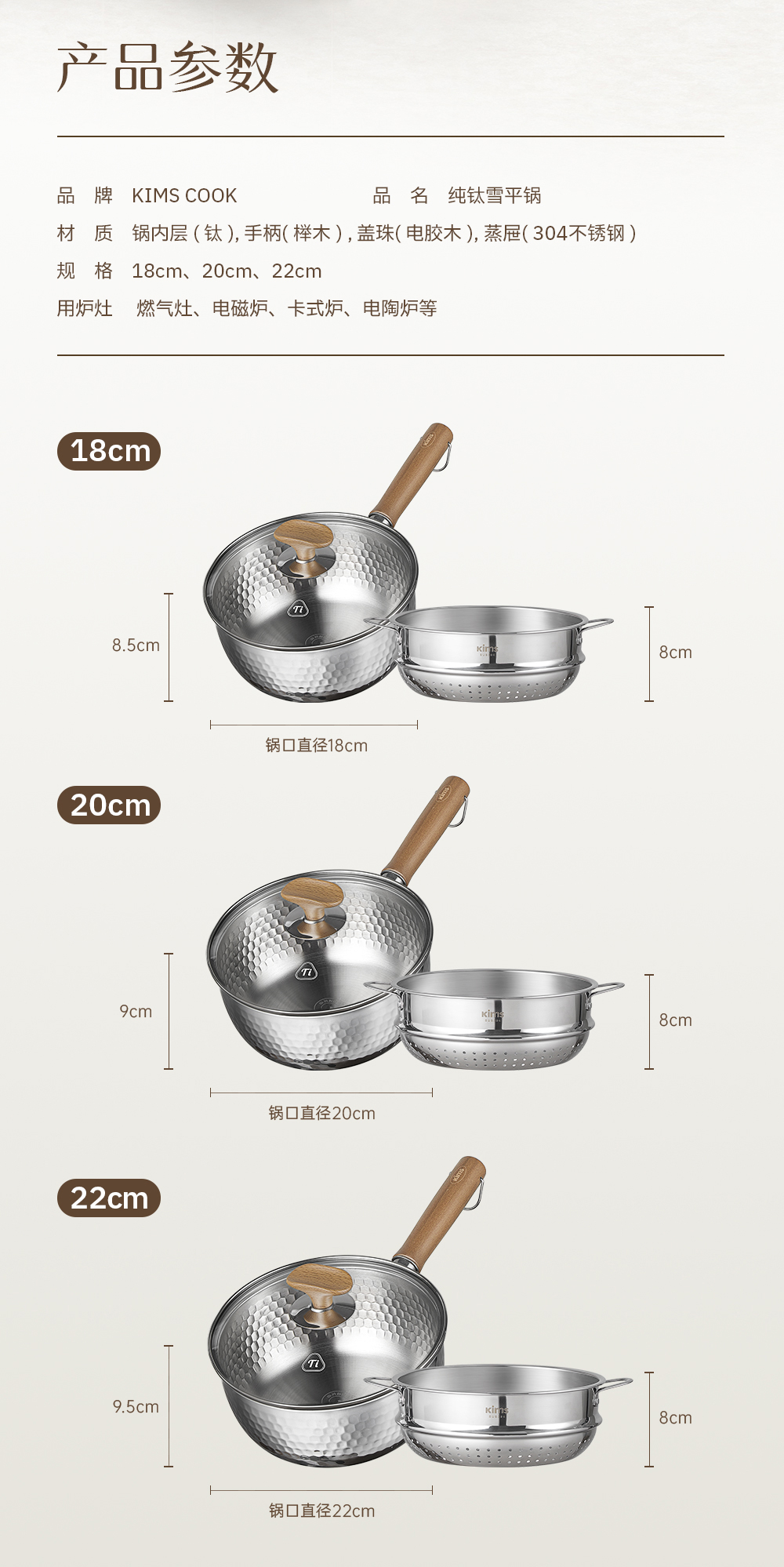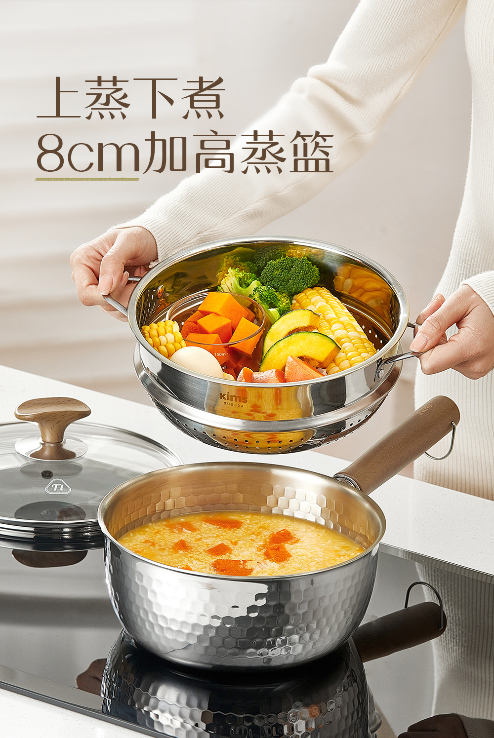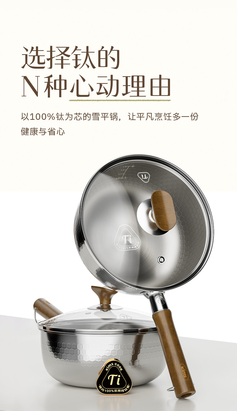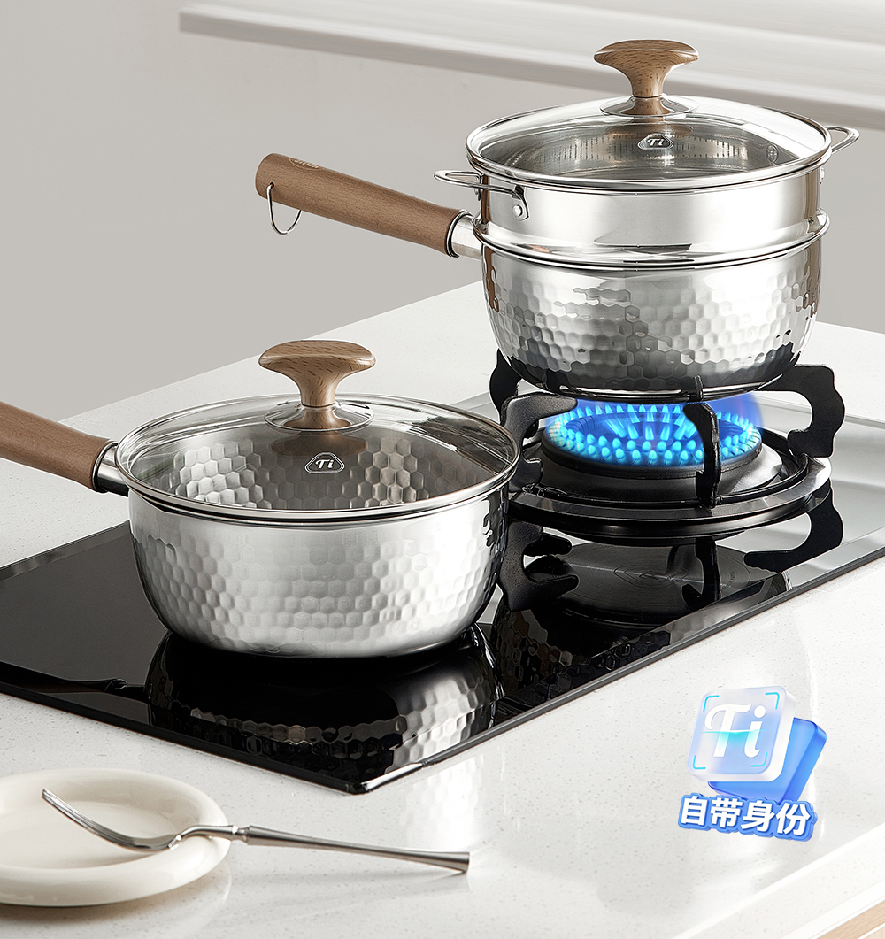 kimscook纯钛雪平锅无涂层奶锅一人食泡面小锅蒸煮一体宝宝辅食锅