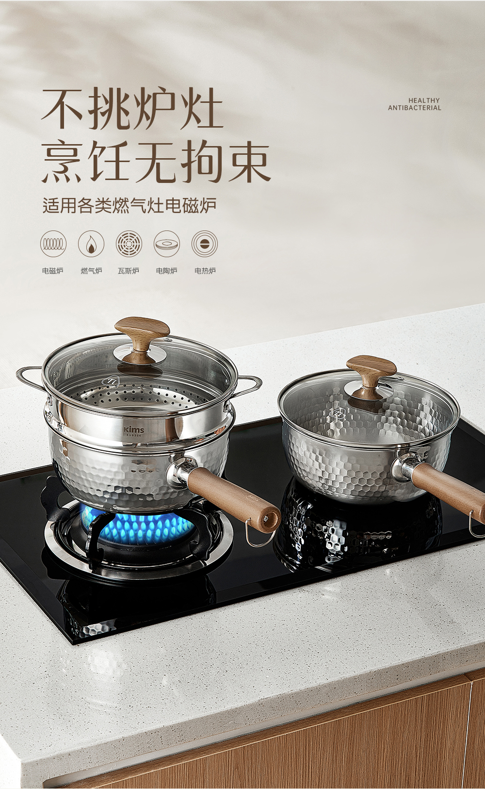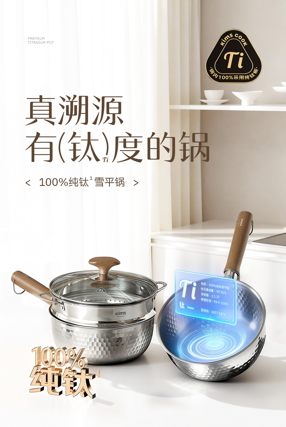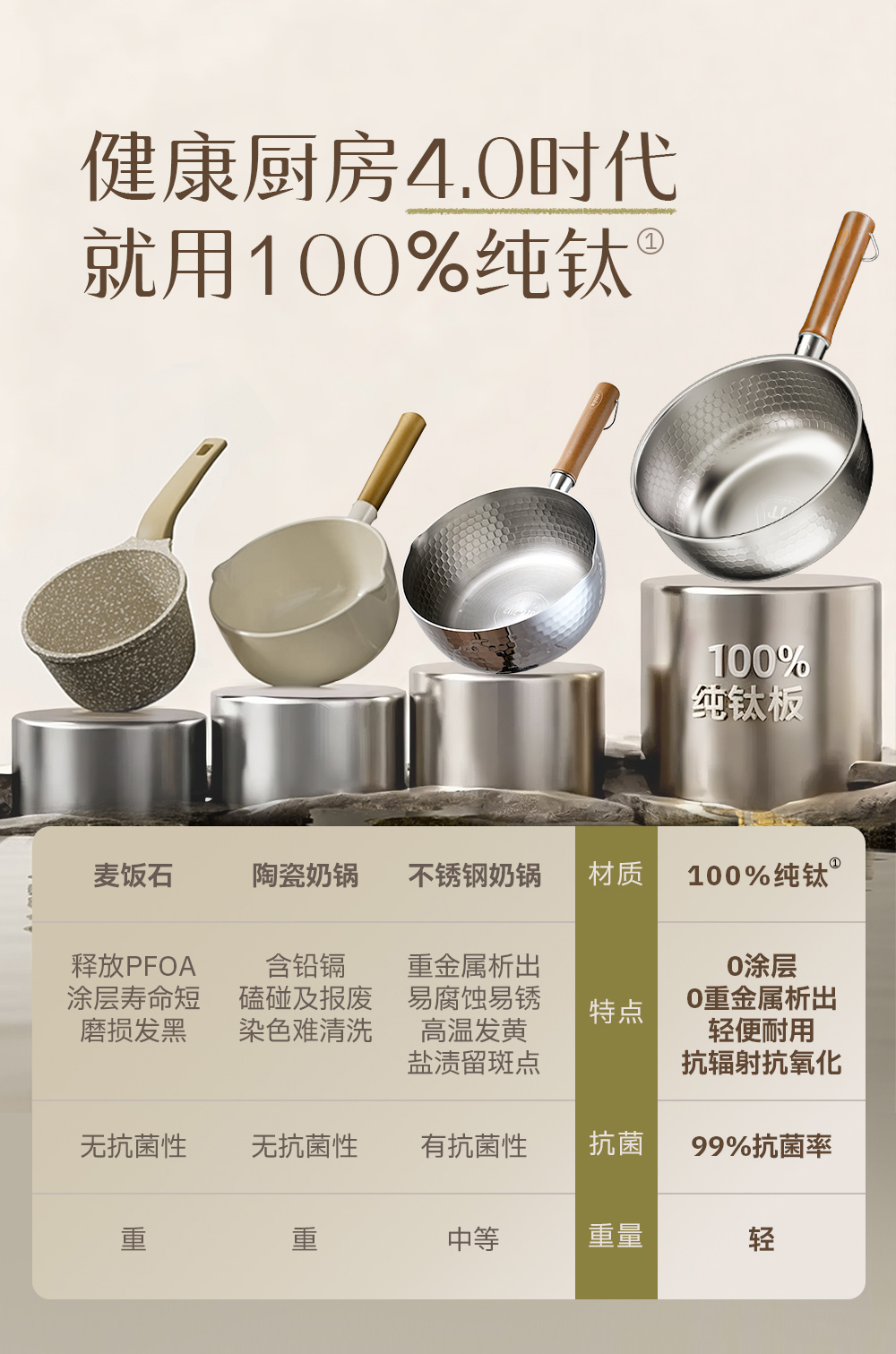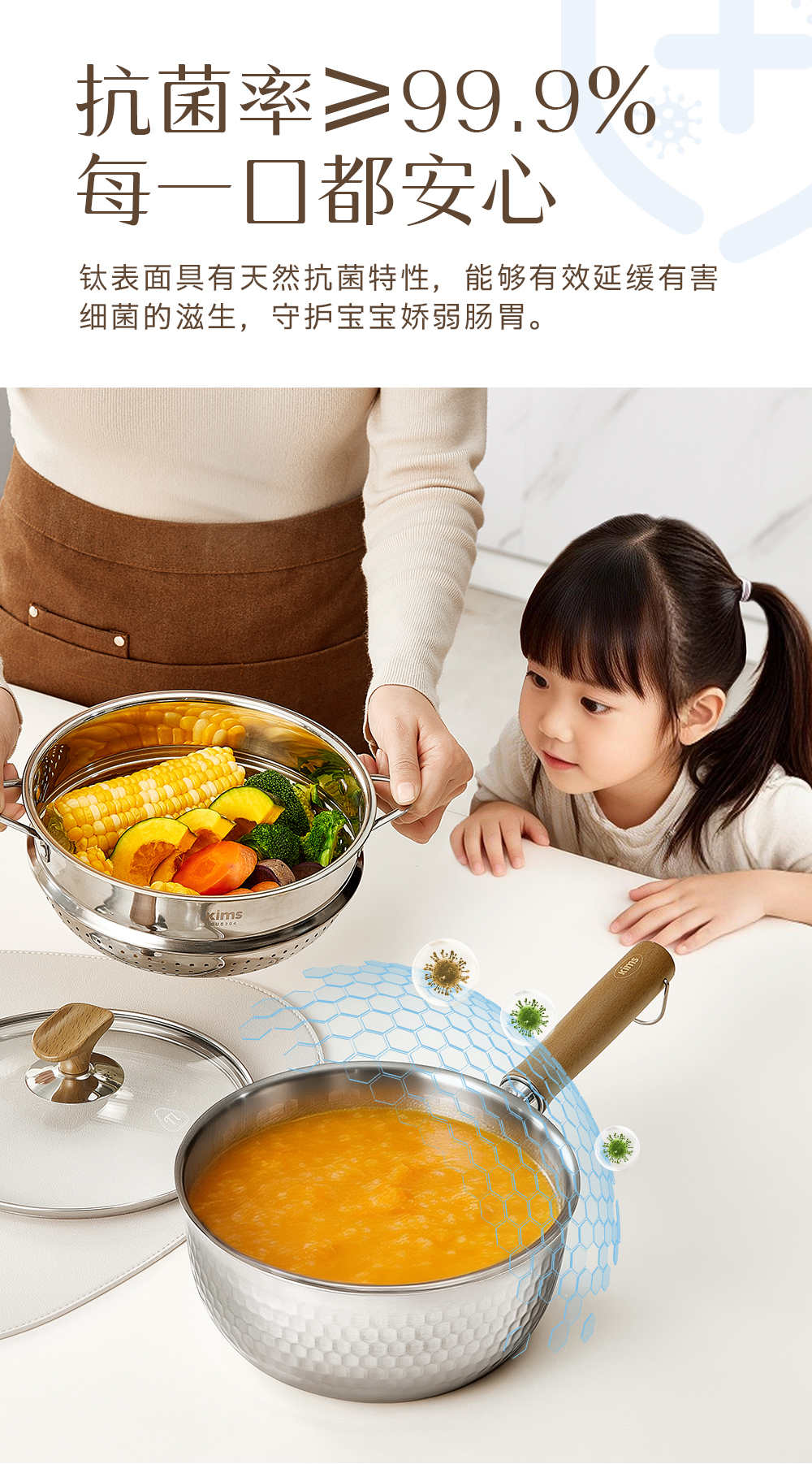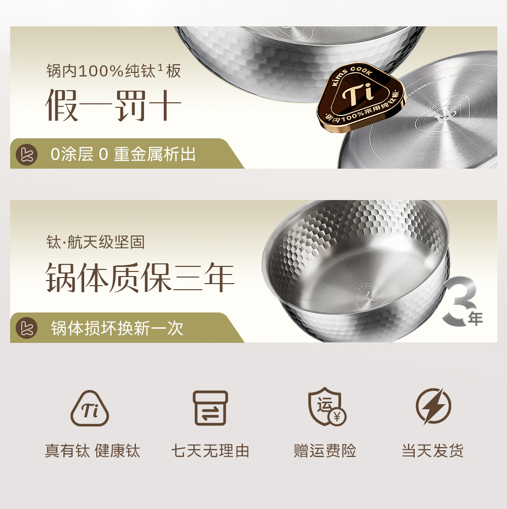 kimscook纯钛雪平锅无涂层奶锅一人食泡面小锅蒸煮一体宝宝辅食锅