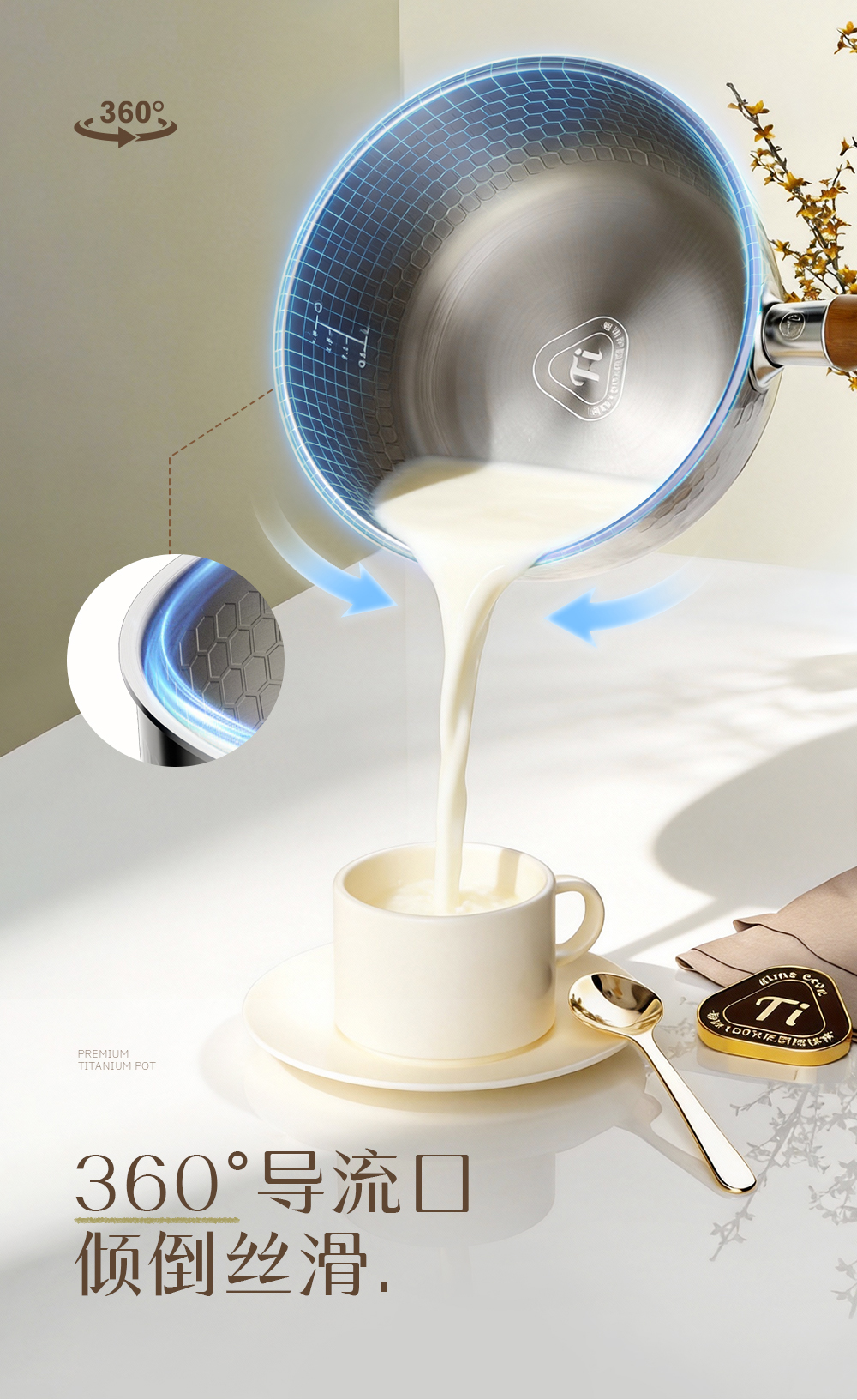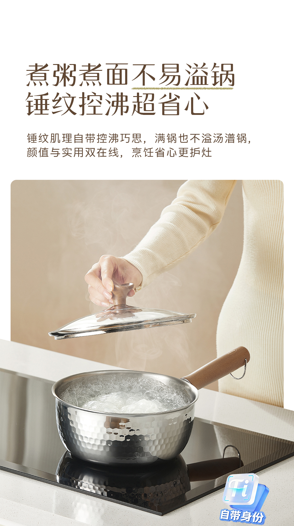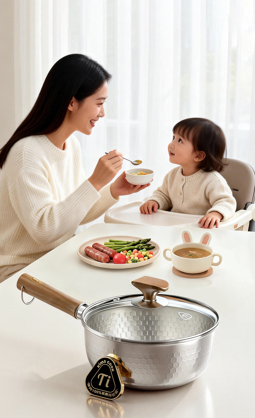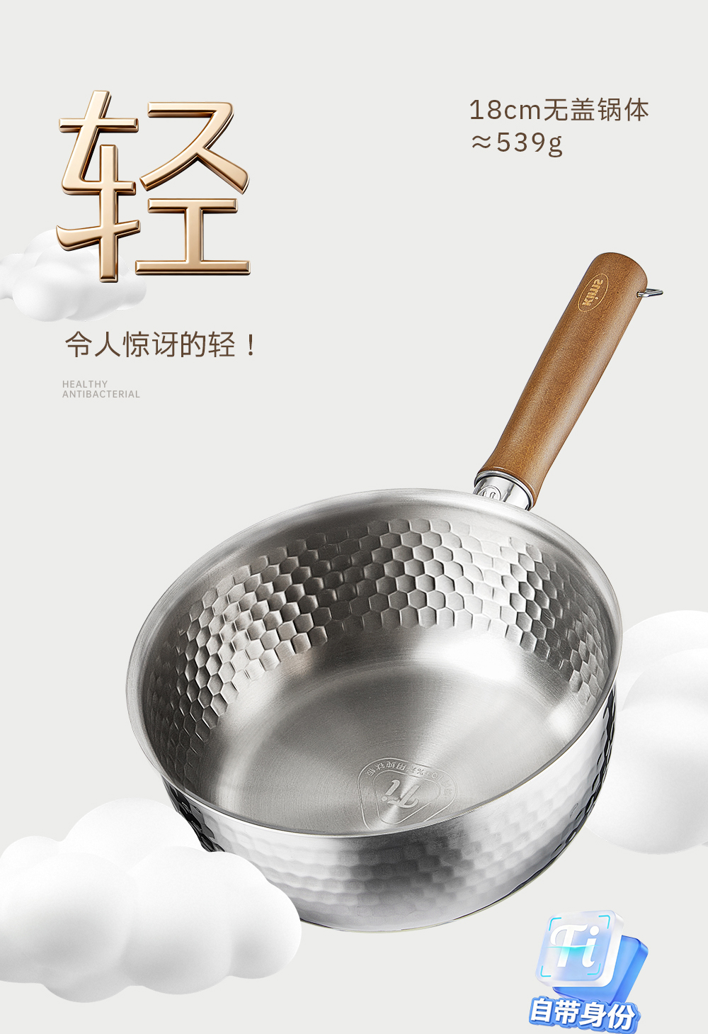 kimscook纯钛雪平锅无涂层奶锅一人食泡面小锅蒸煮一体宝宝辅食锅