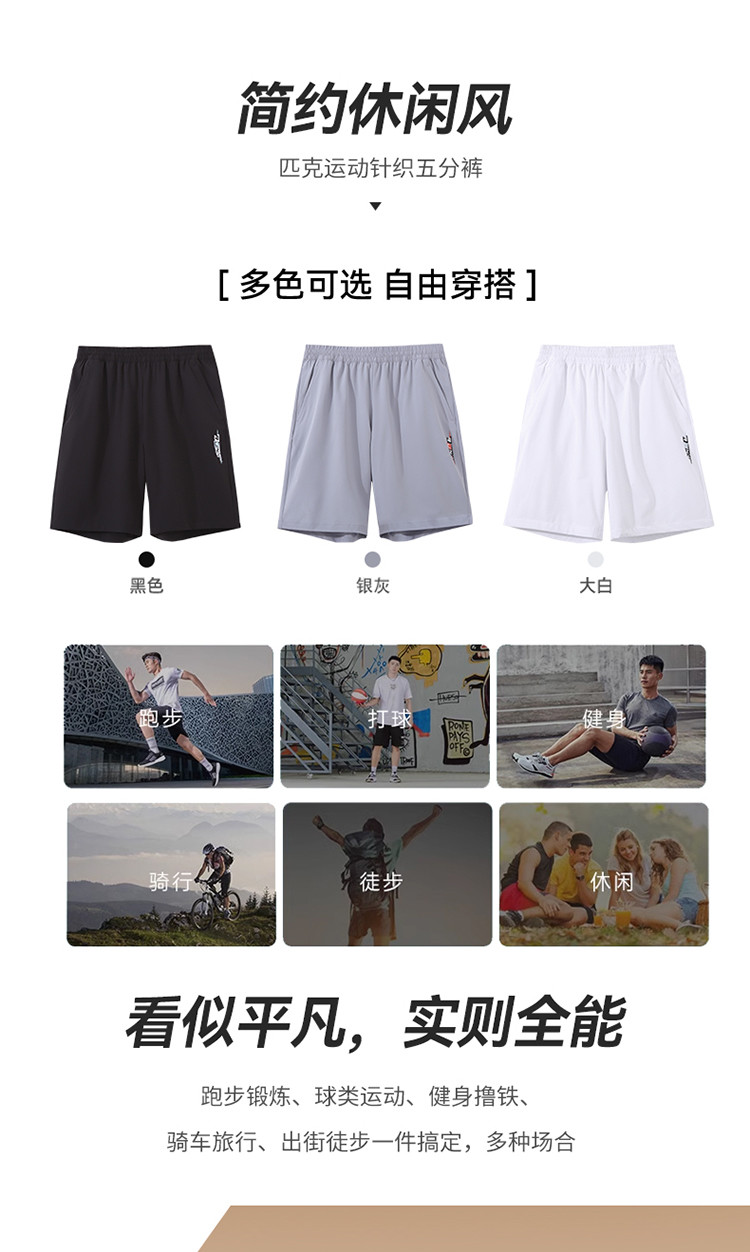 匹克【经典百搭】夏季男士运动户外休闲健身男裤五分裤跑步运动裤男DF332591