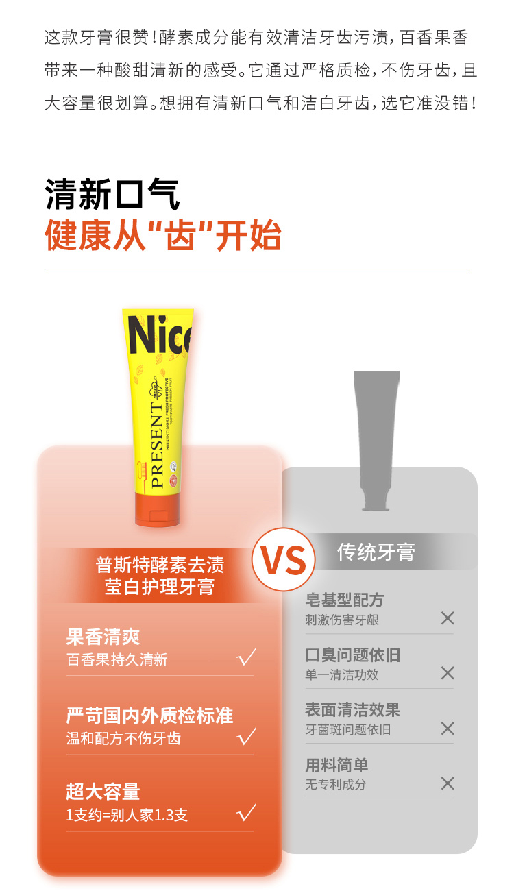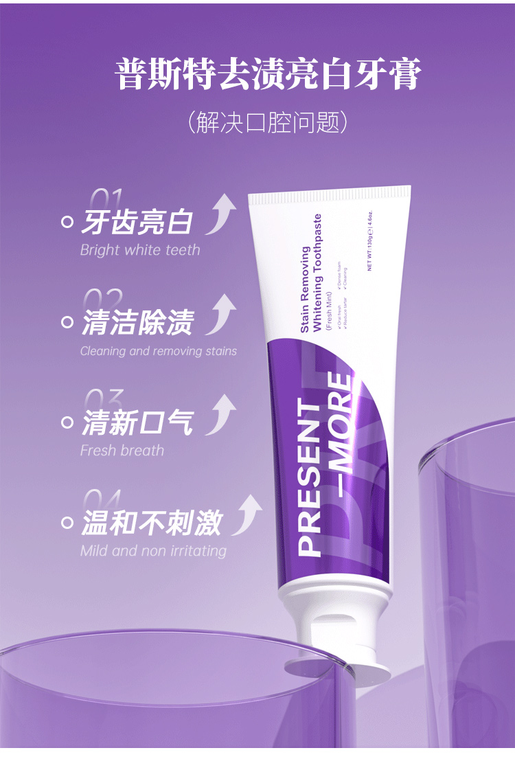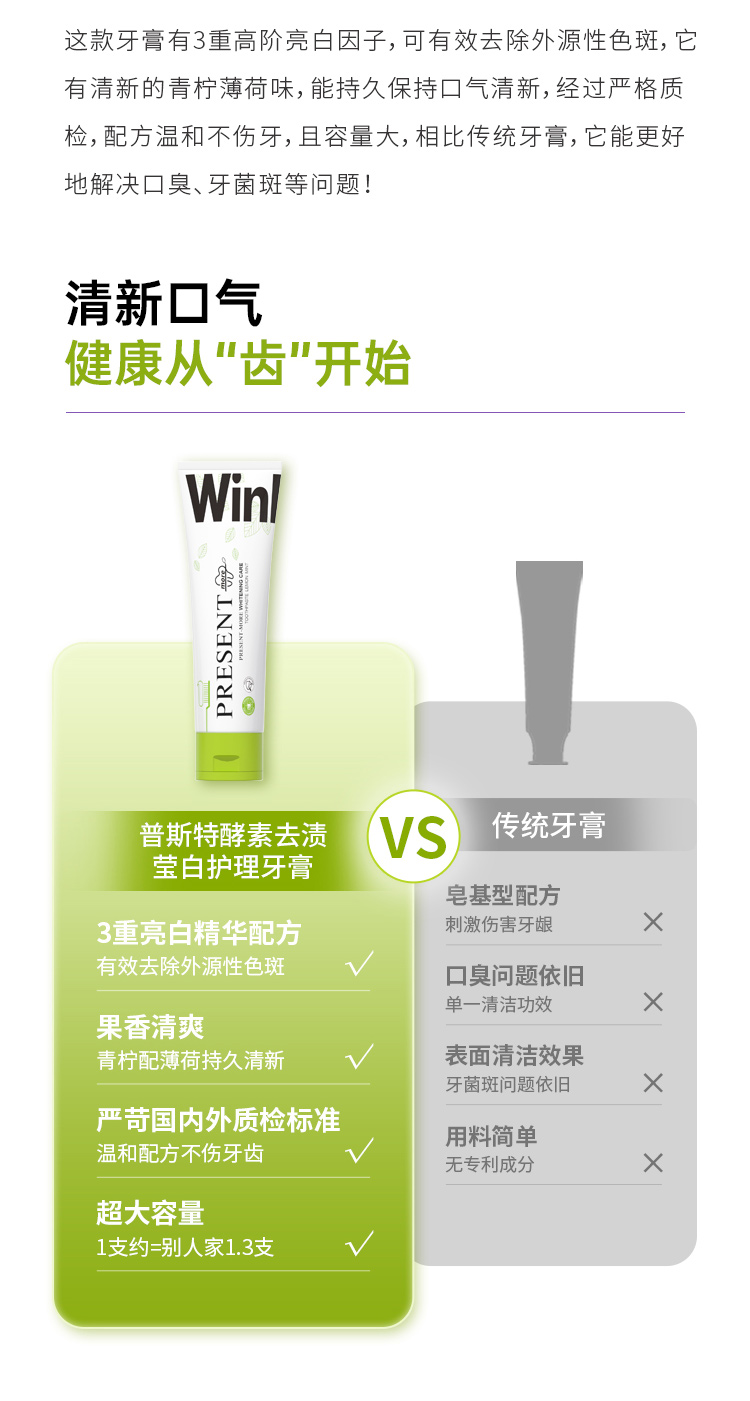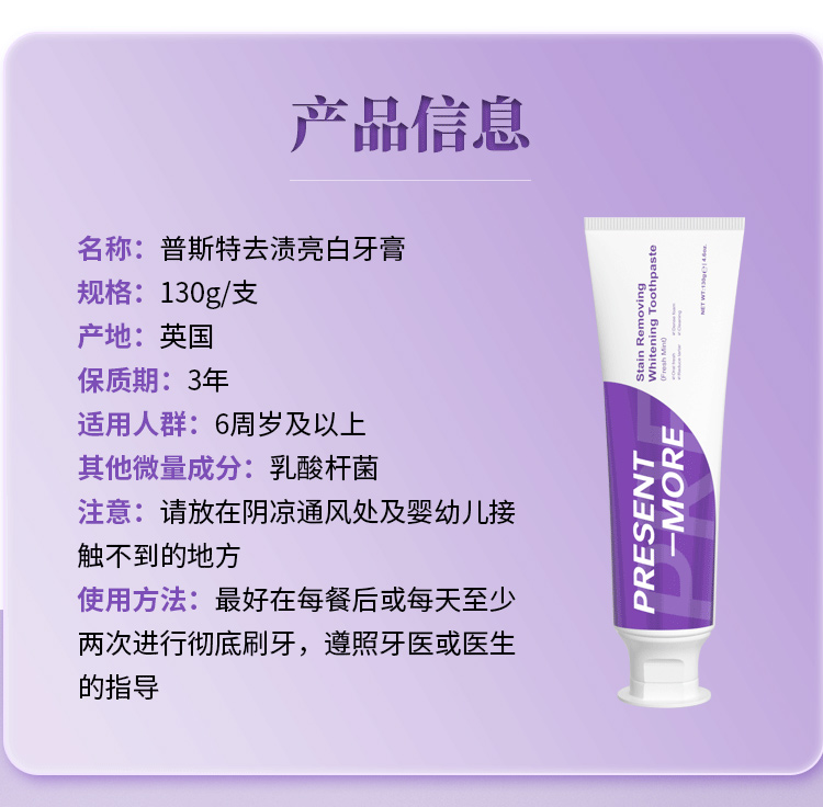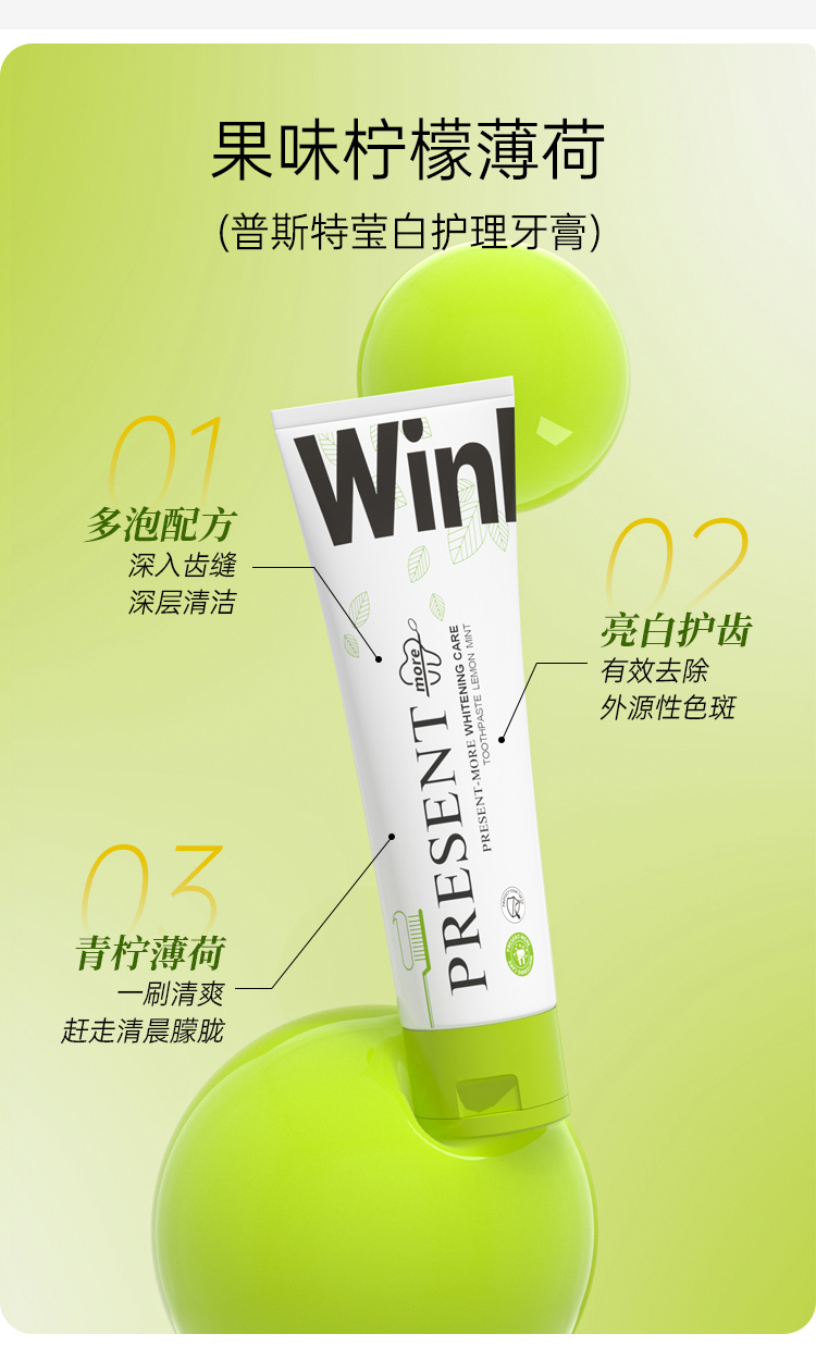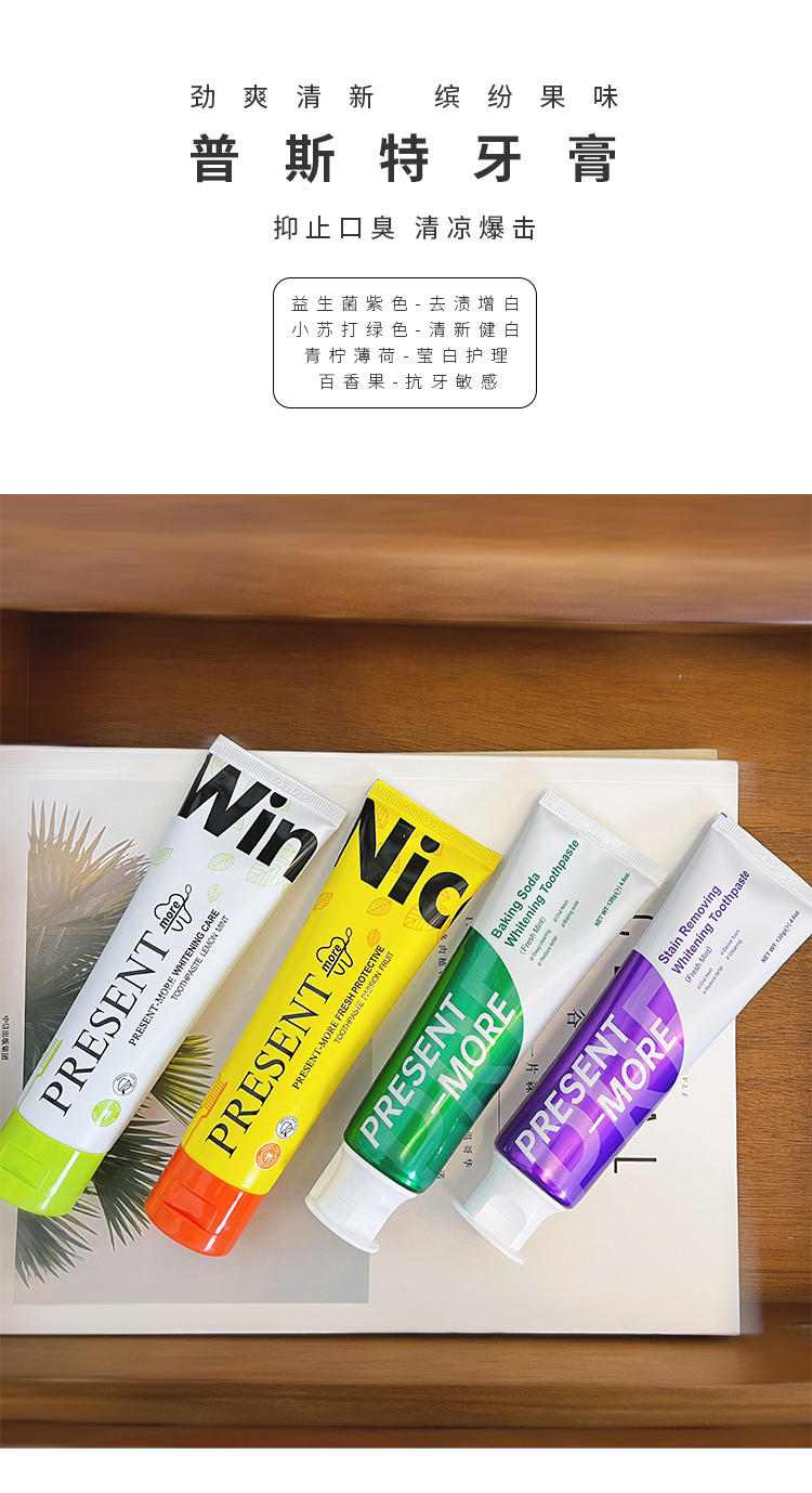 劲爽清新 缤纷果味 普斯特牙膏 益生菌紫色|去渍增白 小苏打绿色|清新健白 青柠薄荷|莹白护理 百香果|抗牙敏感 抑止口臭 清凉爆击