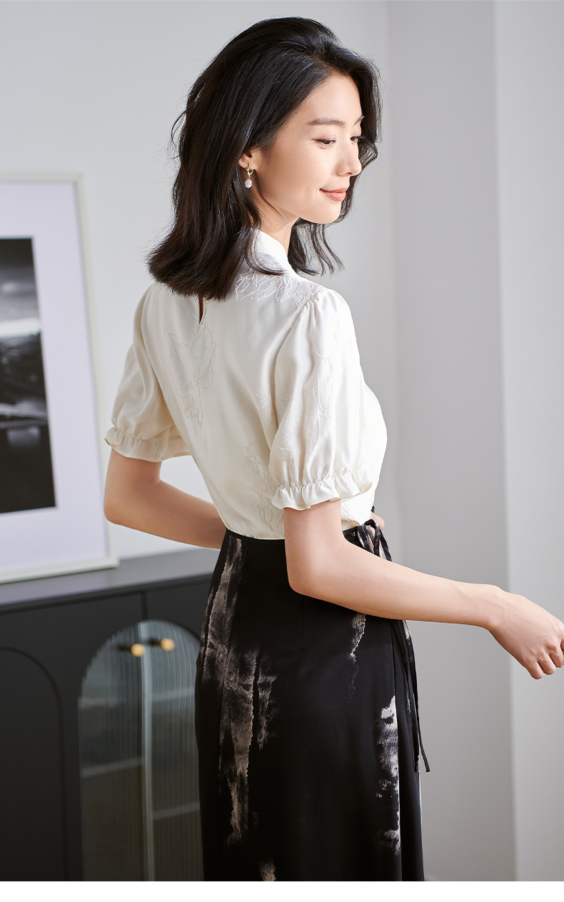剩M/L/XL/XXL 米思阳2025夏季新款新中式简约衬衫提花盘扣设计感泡泡袖上衣2559
