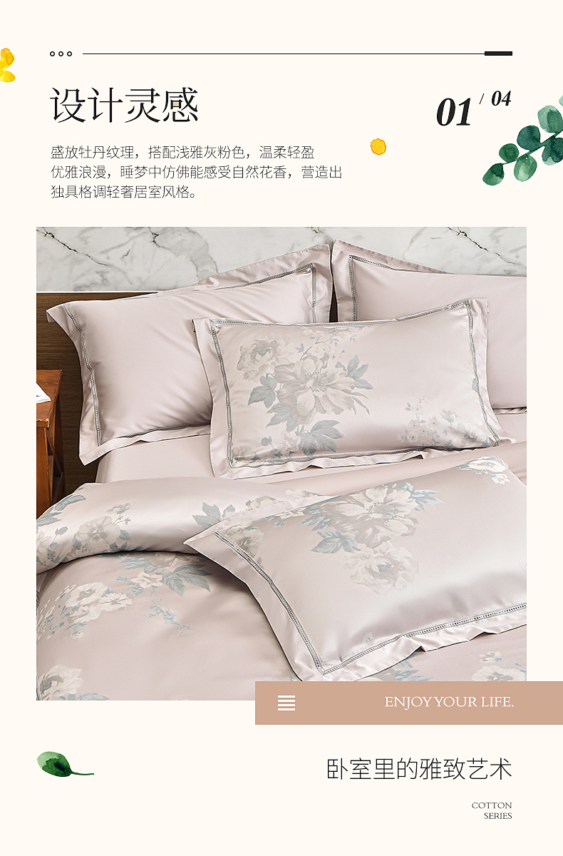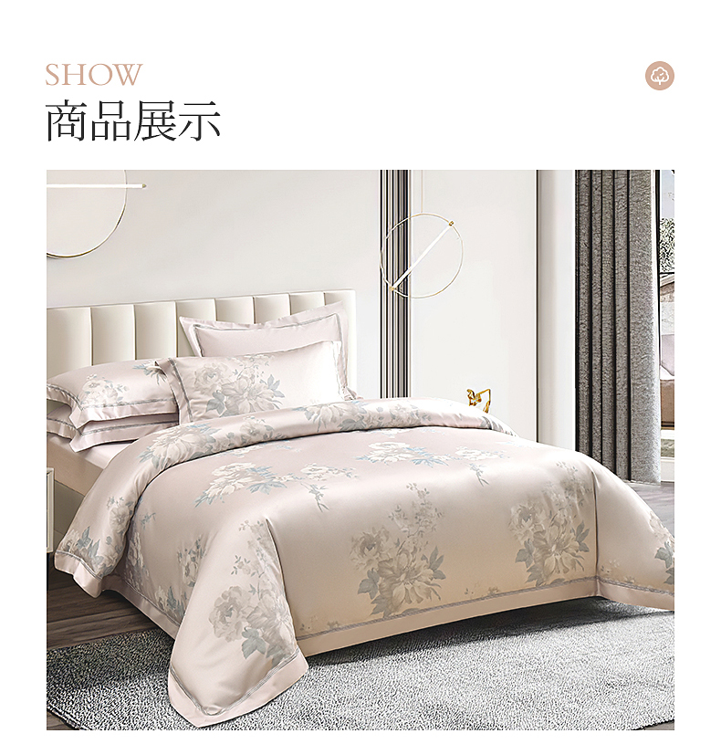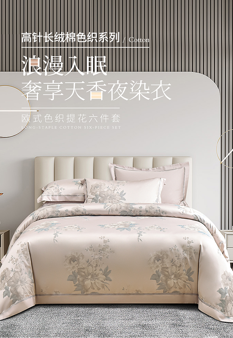 雅芳婷欧式色织提花长绒棉六件套被套枕套缎纹100纱支床笠连芯款套件