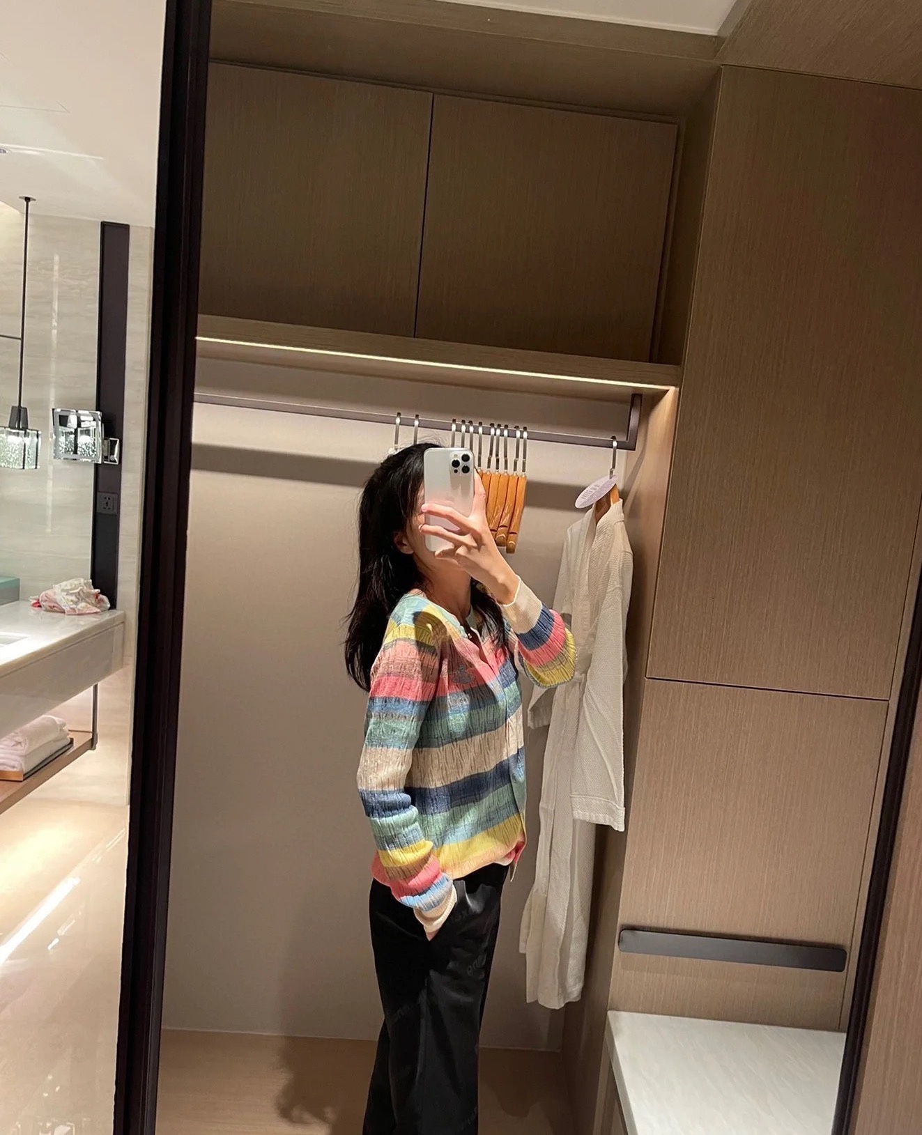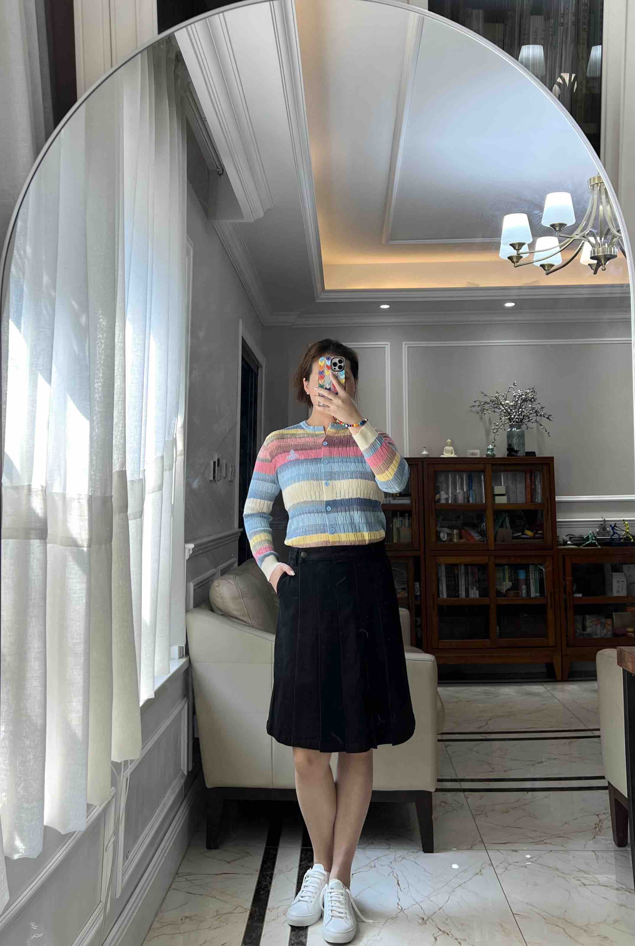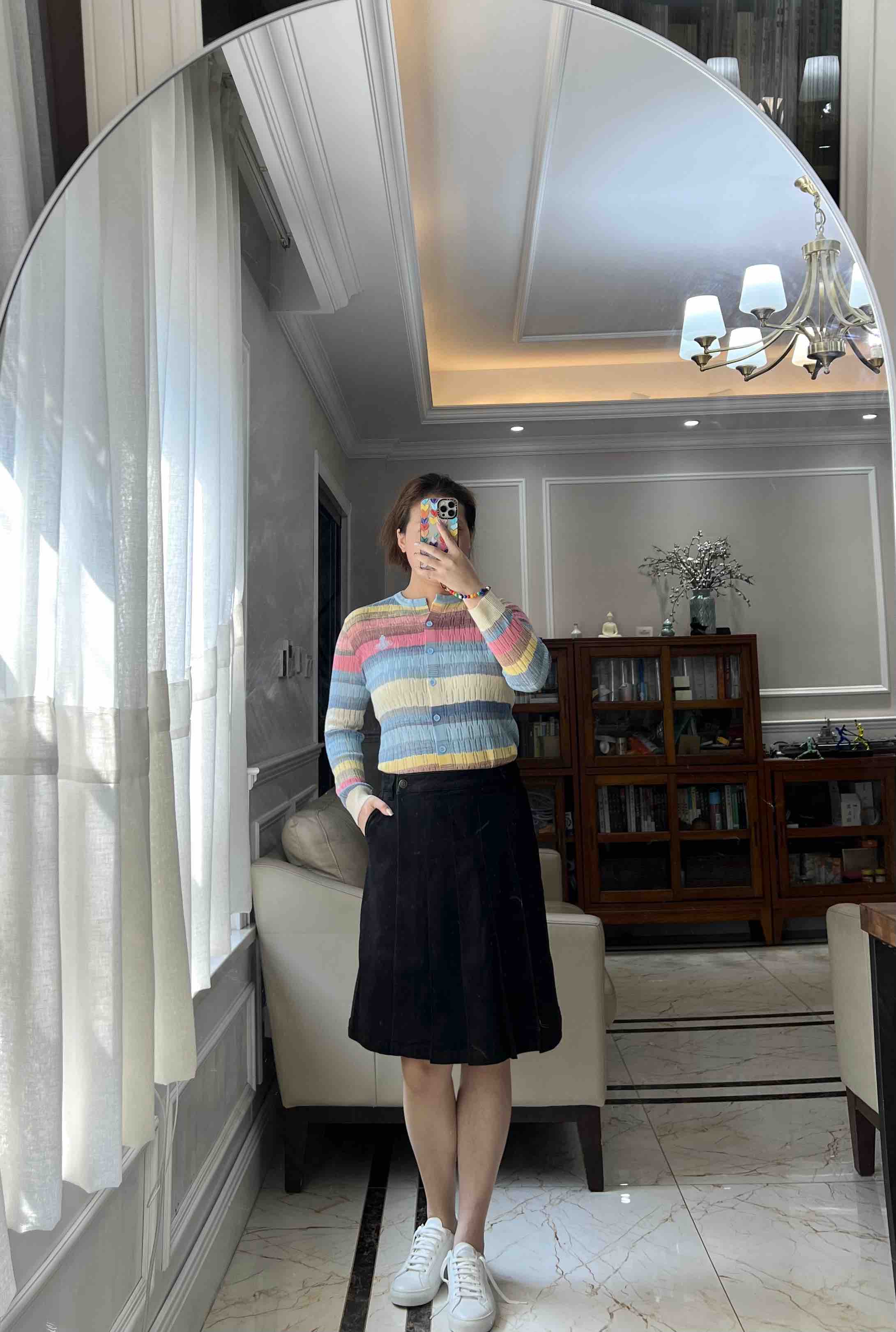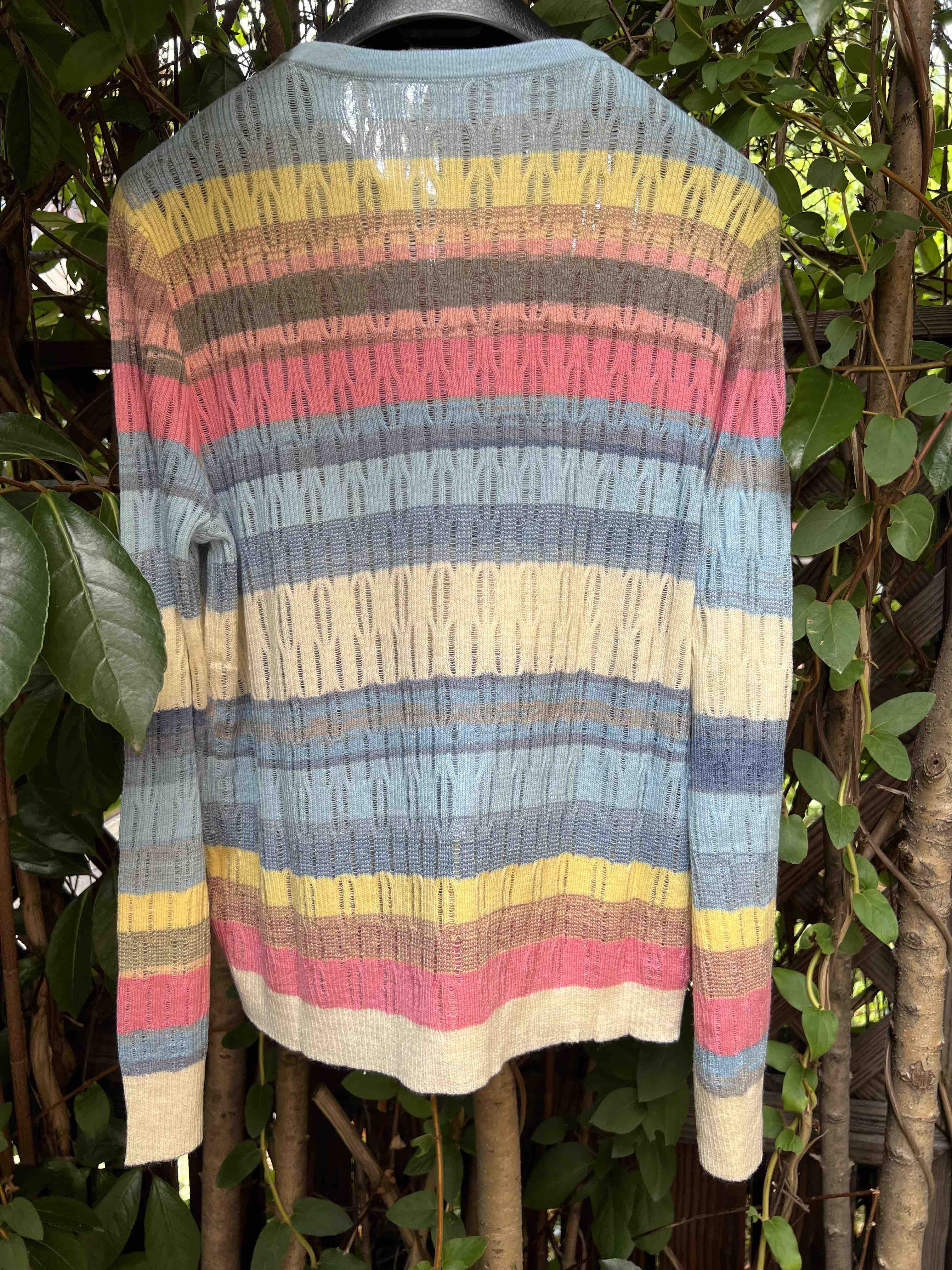 西太后土星🪐彩虹🌈多巴胺针织开衫,原厂订单纱线,有大几十件。原厂的纱线我拿到手的体感就是,怎么如此柔滑,滑溜溜的果冻质感,镂空针织彩色条纹,明媚阳光,这个配色,分外清爽黑色,因为有大面积粉蓝色和白色去平衡一丢丢粉色,所以完全不装嫩,一点点都不小气,分外大气明媚。
