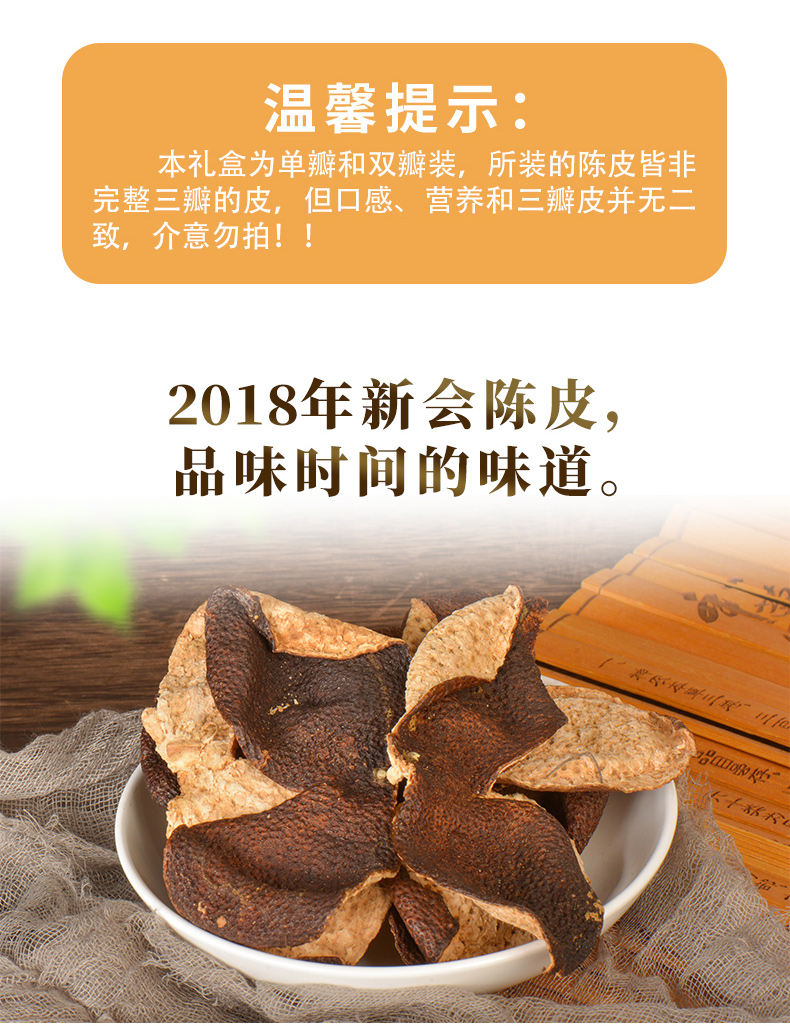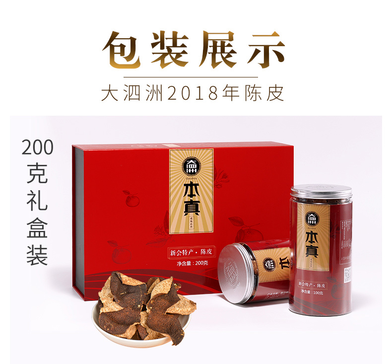本真2018年新会陈皮200g(注:本品为单瓣和双瓣款陈皮,介意勿拍)