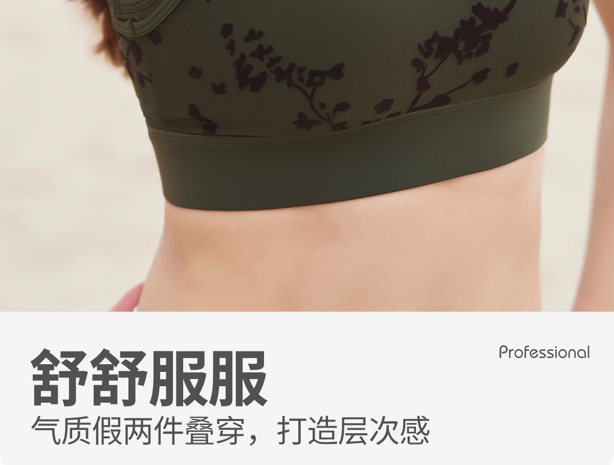 爱暇步中式复古网纱假两件瑜伽文胸普拉提夏新款带胸垫健身服背心A34311NSY
