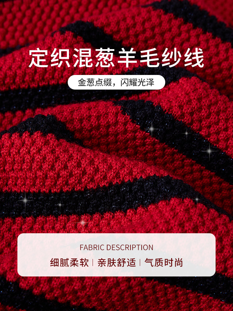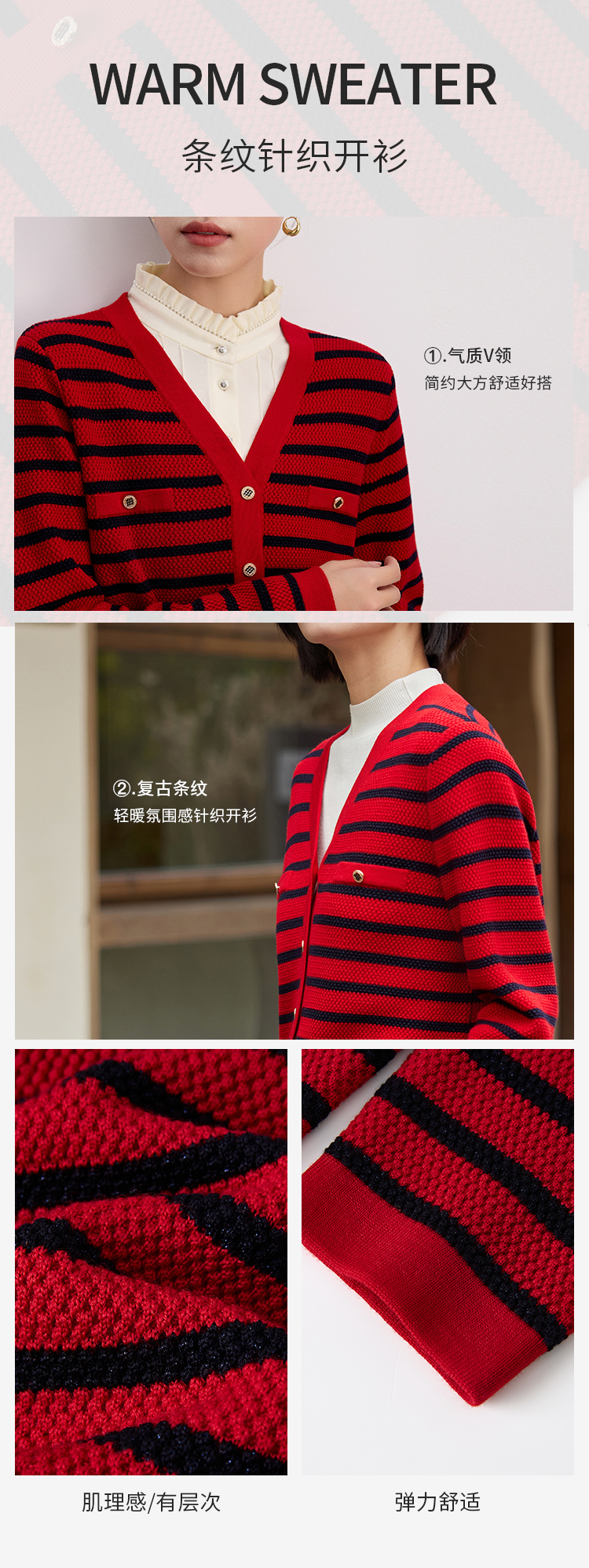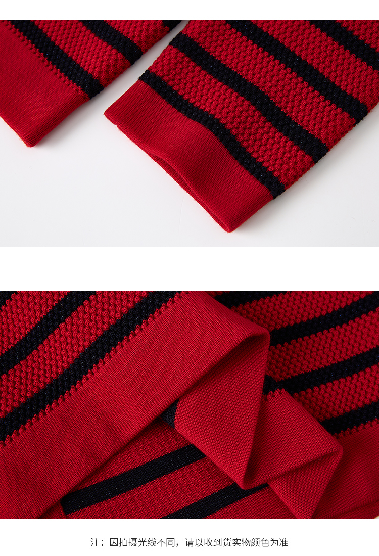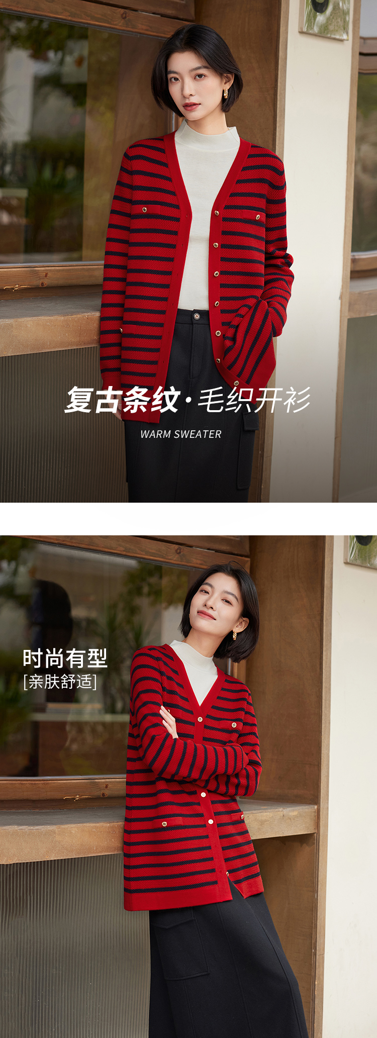 【商场同款】CNR4A97“经典条纹开衫”氛围感红色轻松愉悦 松H廓形中长款包容腰胯 浮雕金属扣增添时尚奢华感 肌理感针法有质感 羊毛开衫
