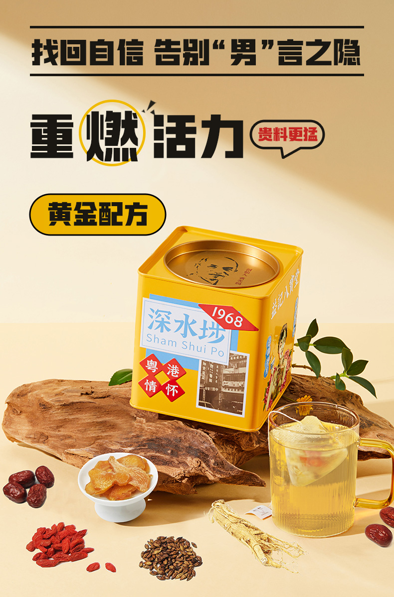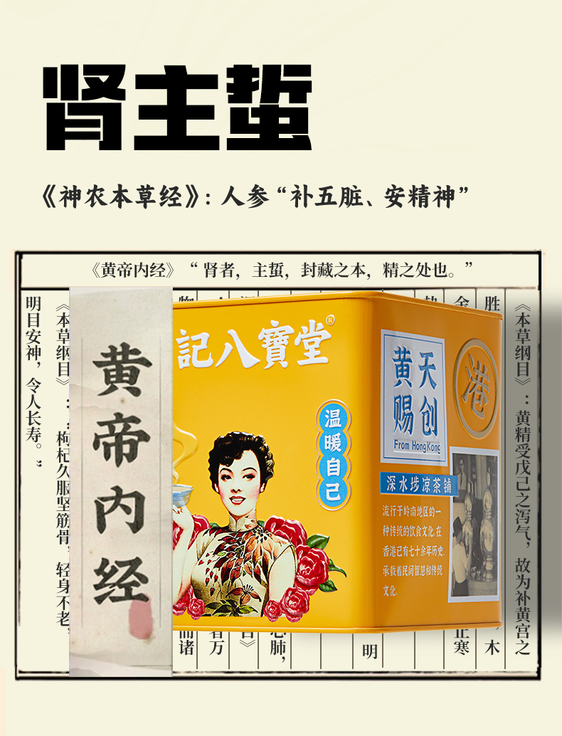 【新品】香港益记八宝堂人参五宝茶铁盒装甄选好料礼盒送礼180G/30包