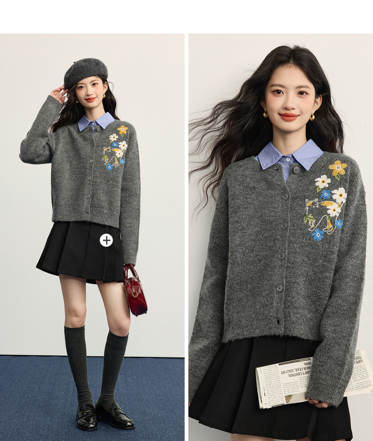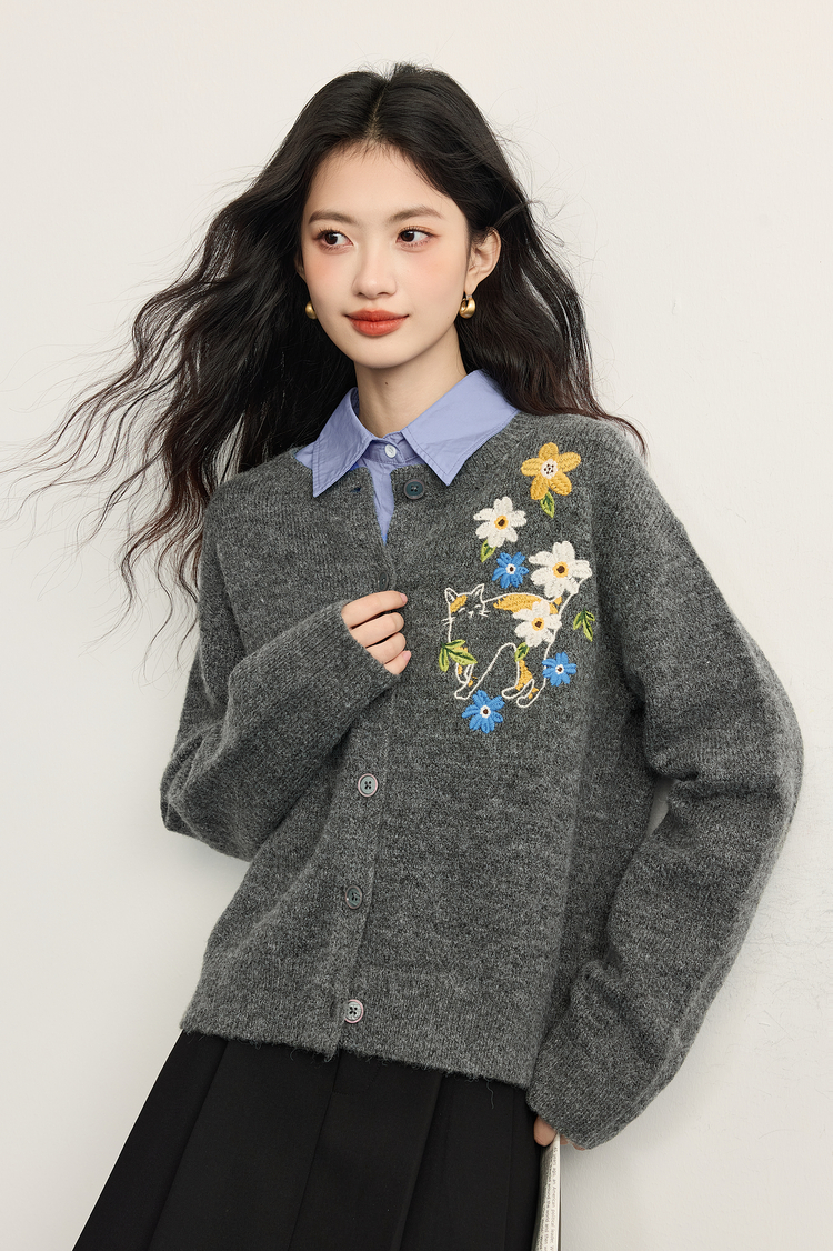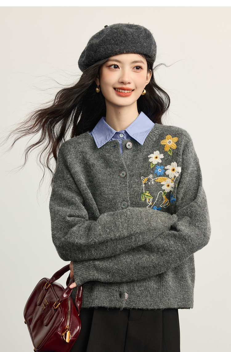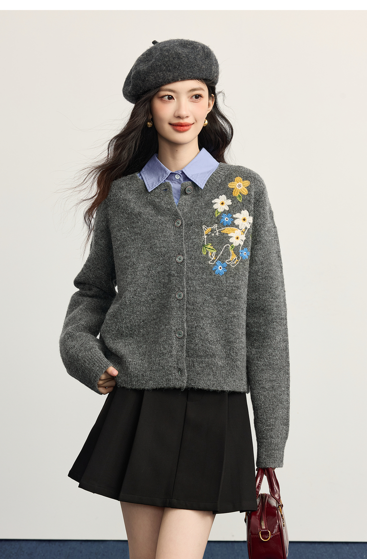 【年货节】熙世界「糯叽叽羊毛开衫」植物系绣花针织毛衣短外套女25秋冬新款