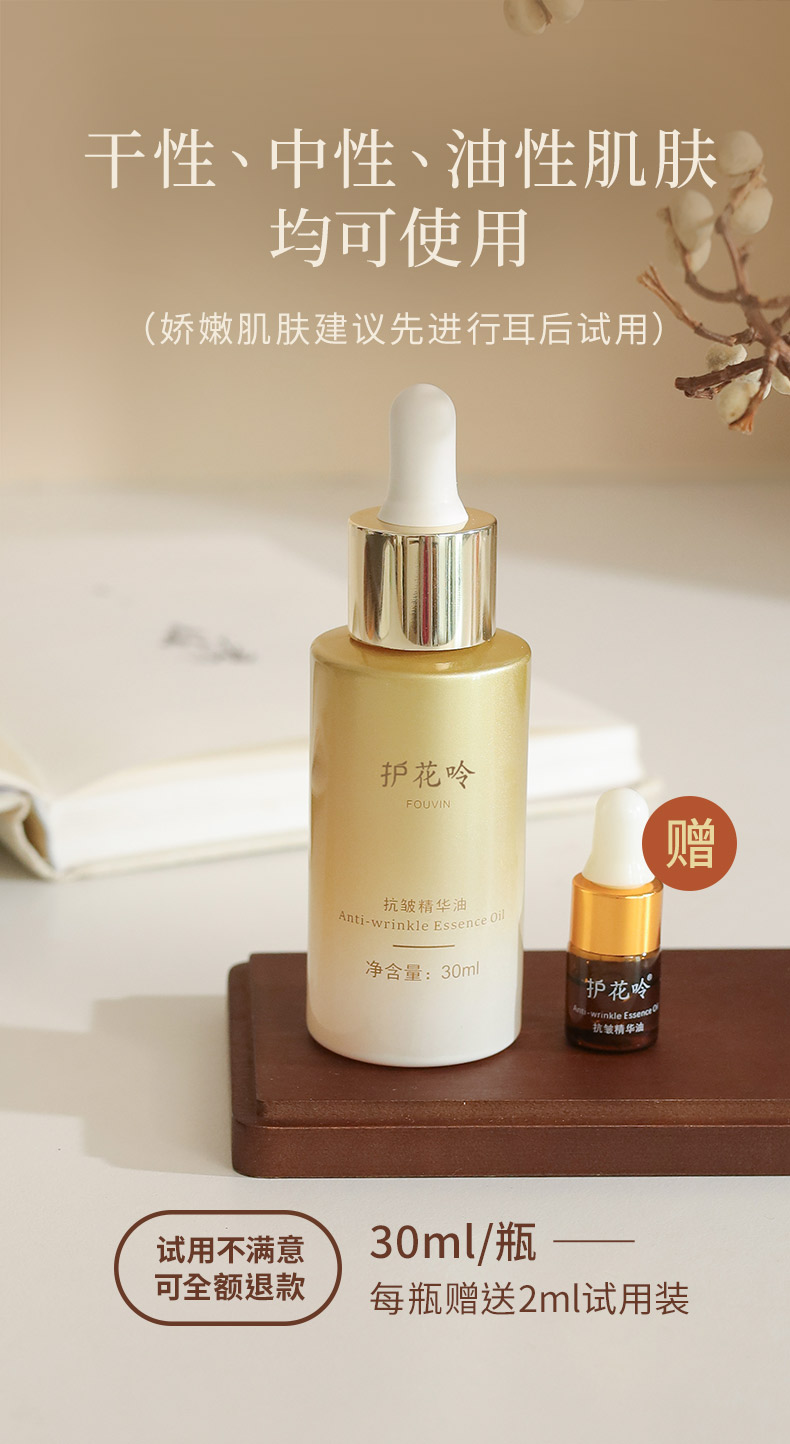 送试用装| 给肌肤的瓶装8小时睡眠,老牌国货护花呤抗皱精华油, 淡纹紧致,唤醒熬夜脸
