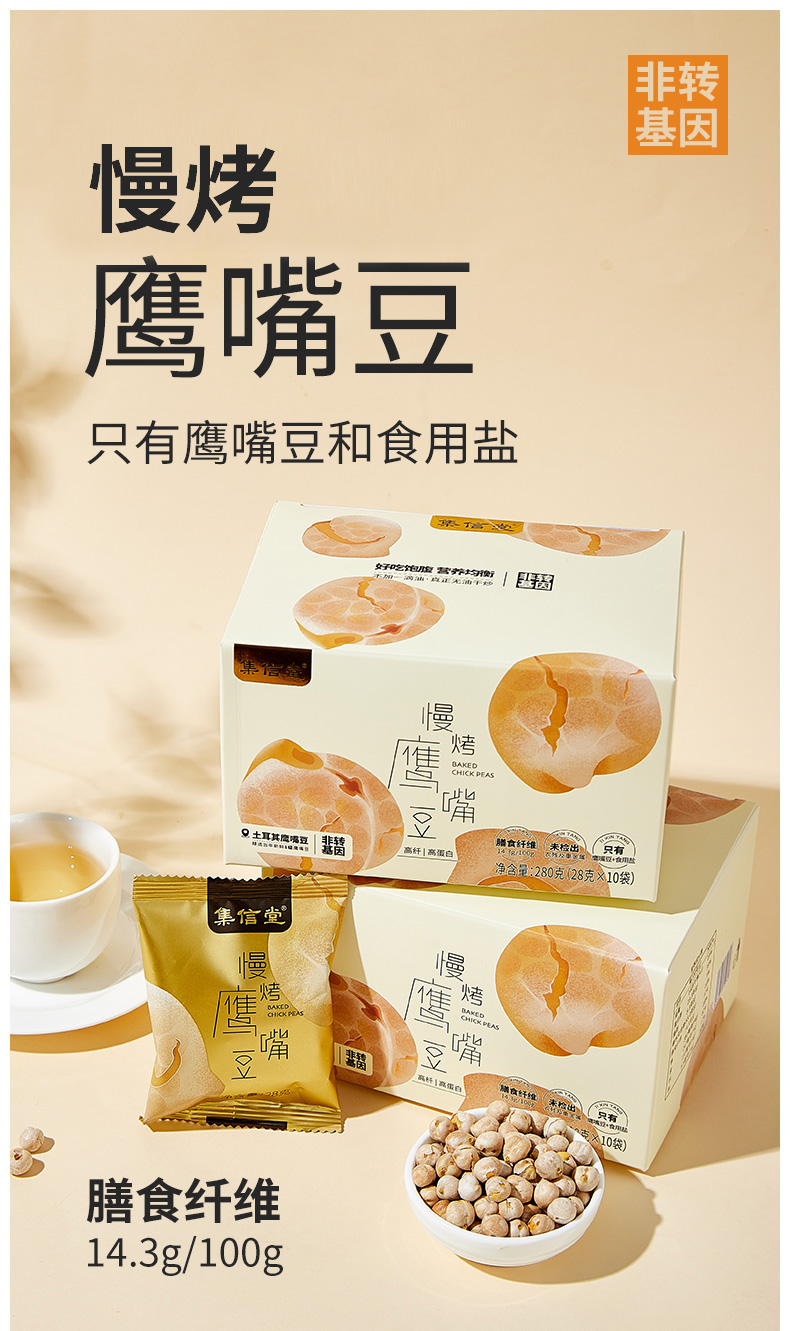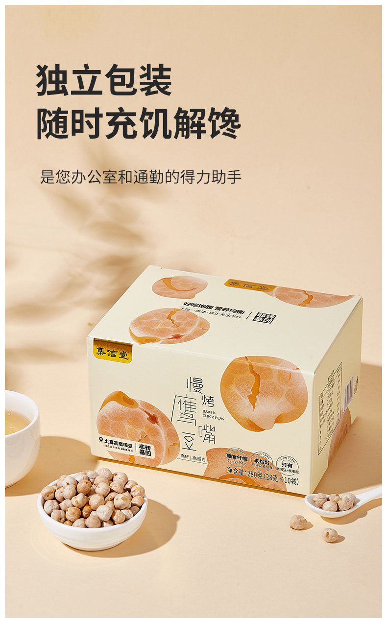 集信堂慢烤鹰嘴豆 即食更健康 独立袋装 办公室小零食 280g/盒(28g*10袋)