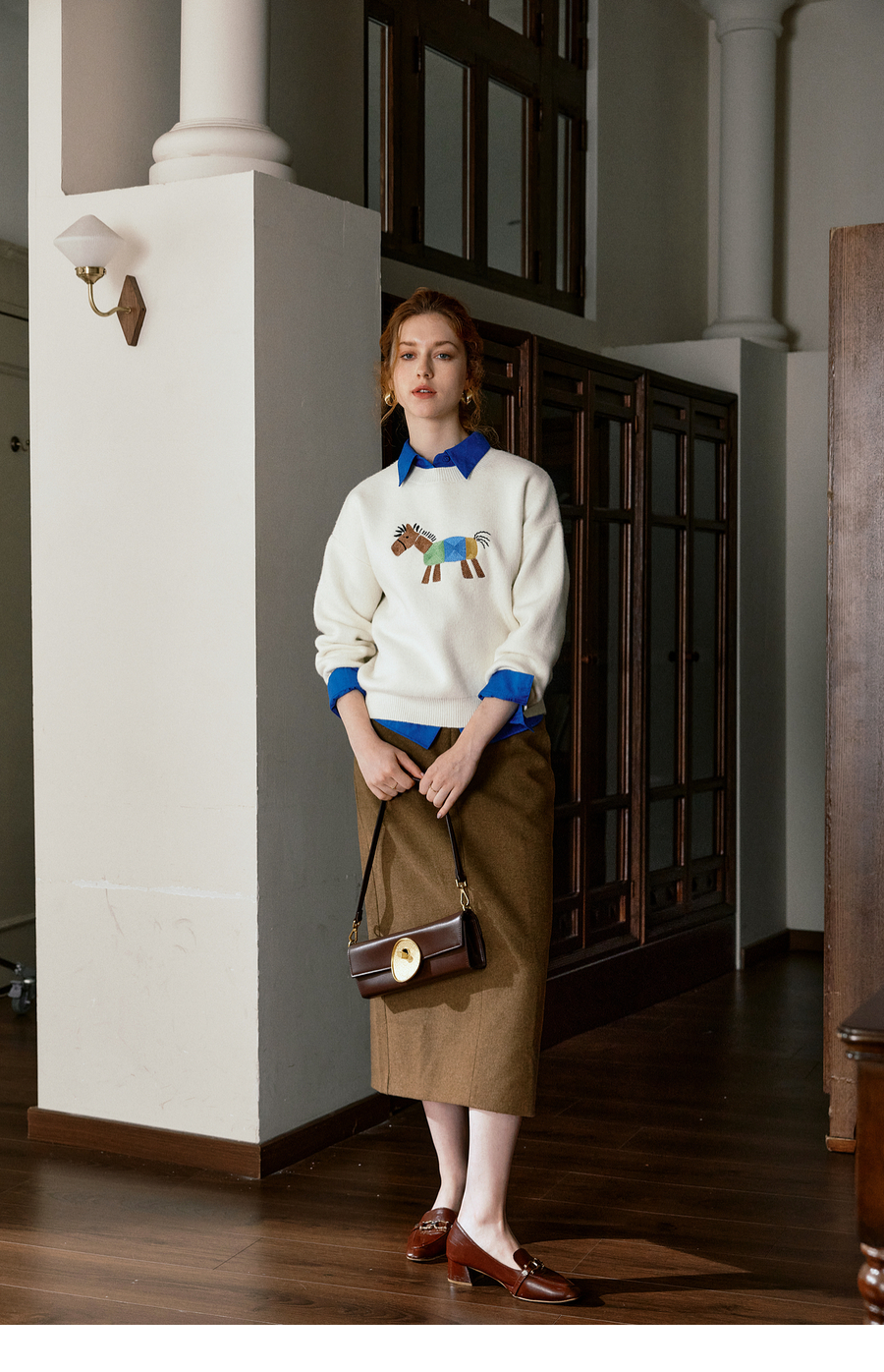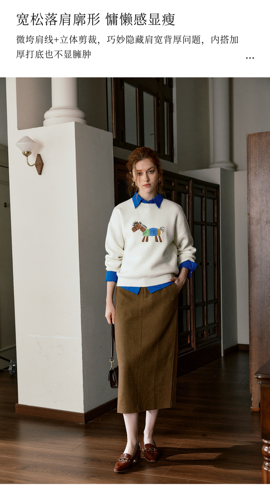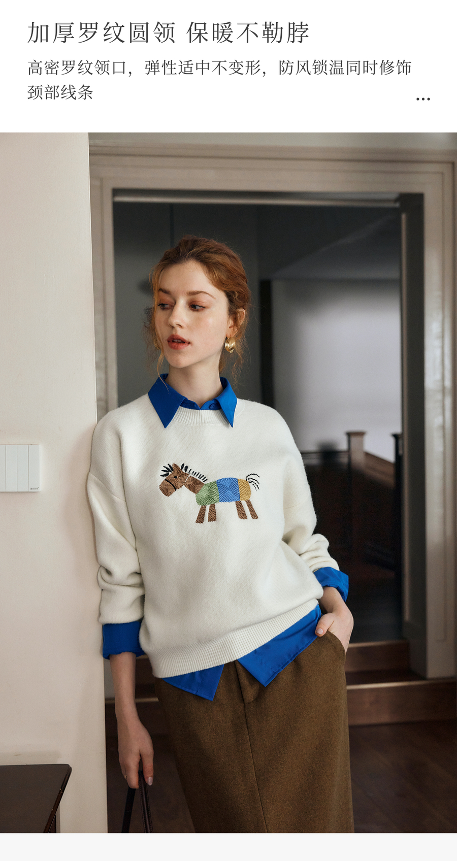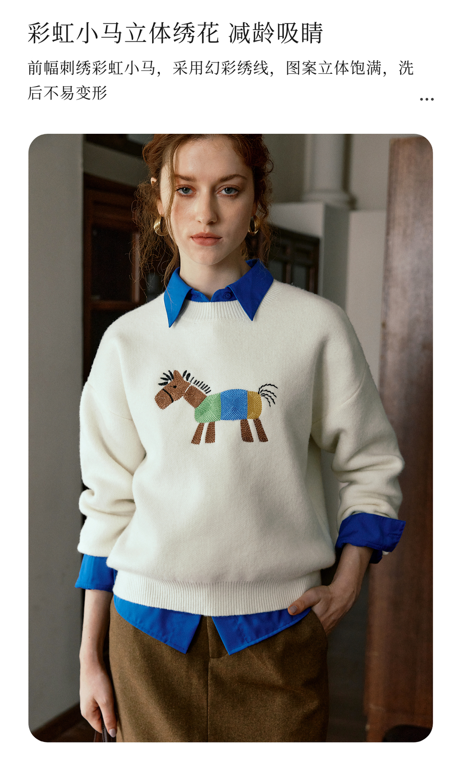 OLrain欧芮儿趣味小马绣花毛织套头衫女秋季2025新款慵懒羊毛上衣