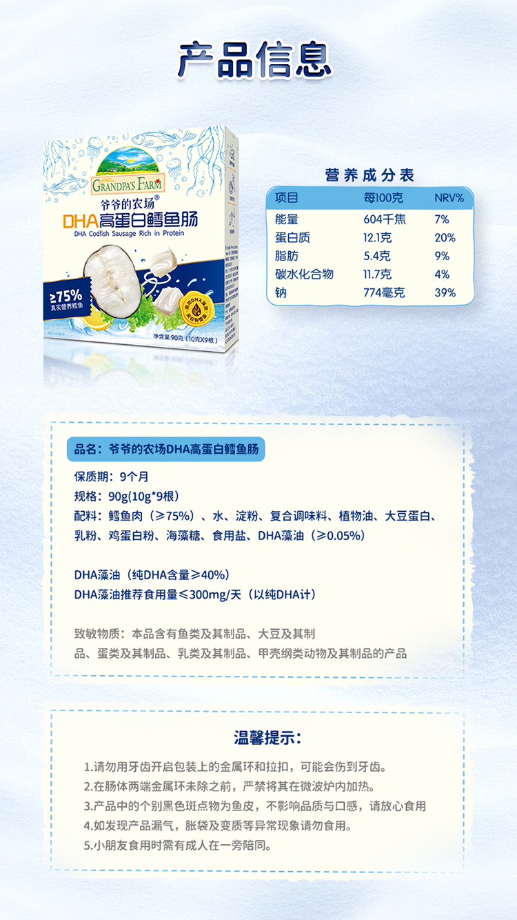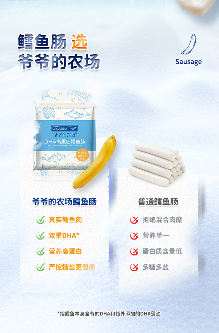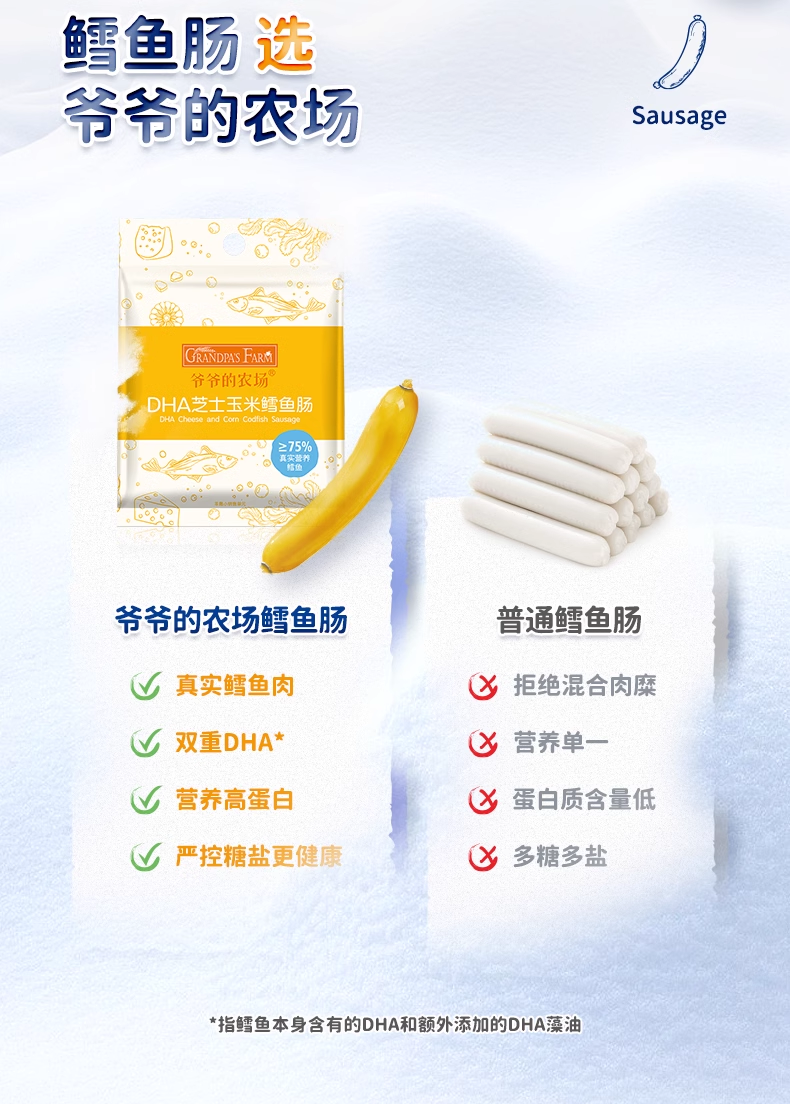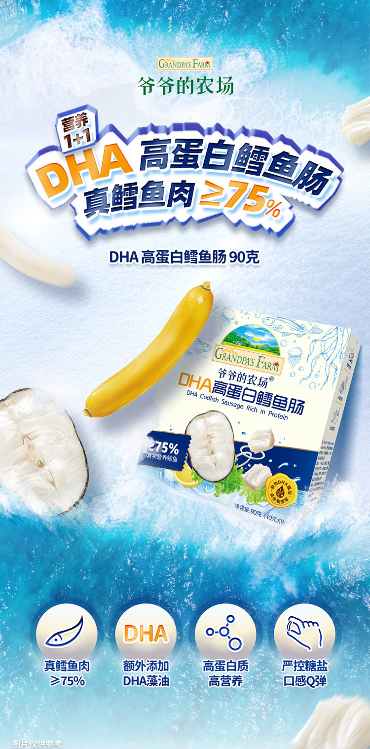 【阶梯满减】 Grandpa's Farm爷爷的农场DHA高蛋白鳕鱼肠90g