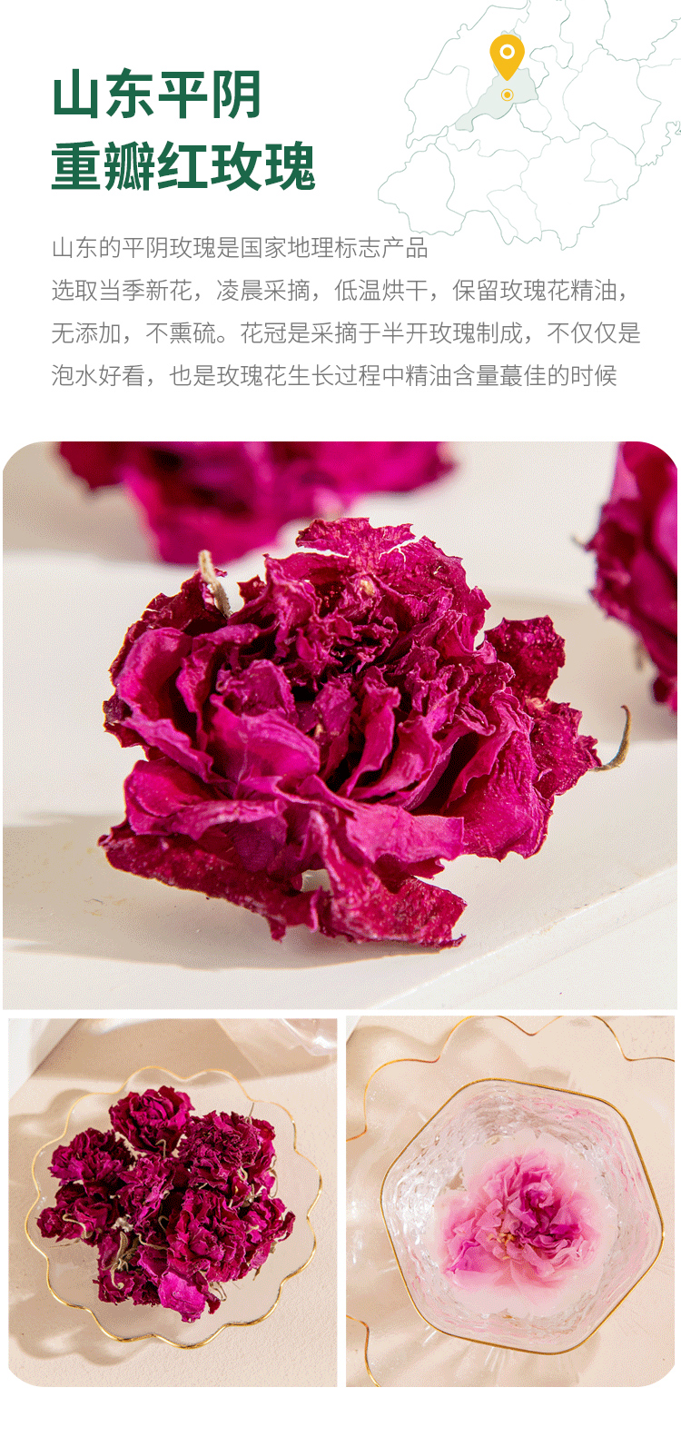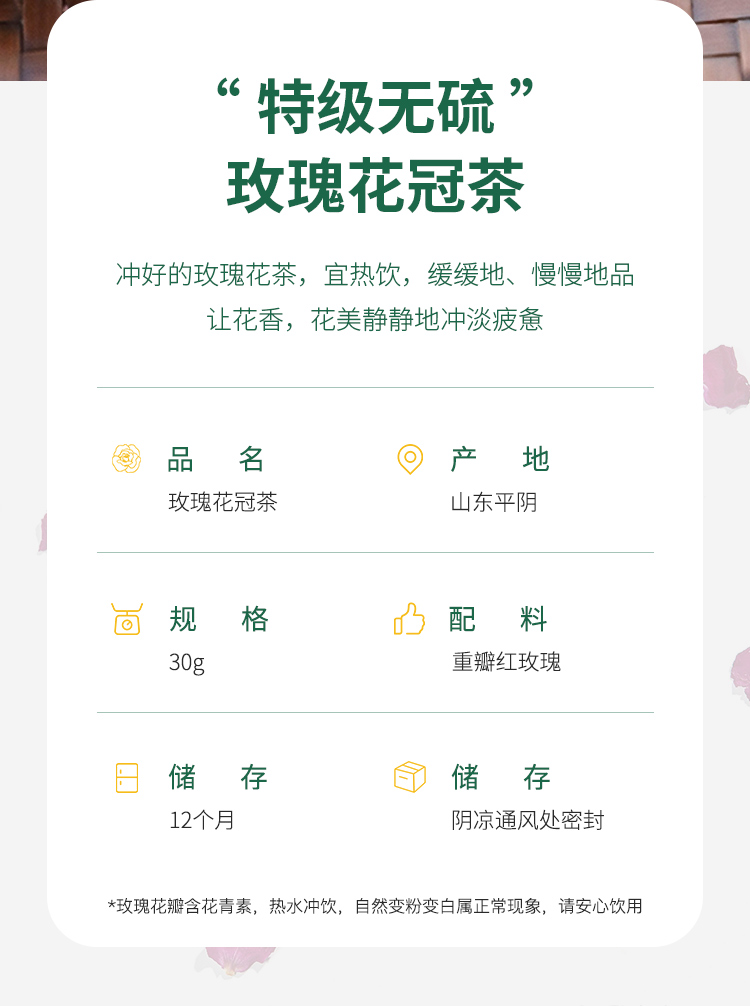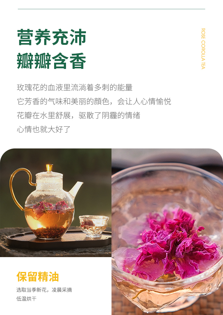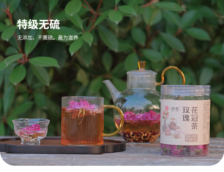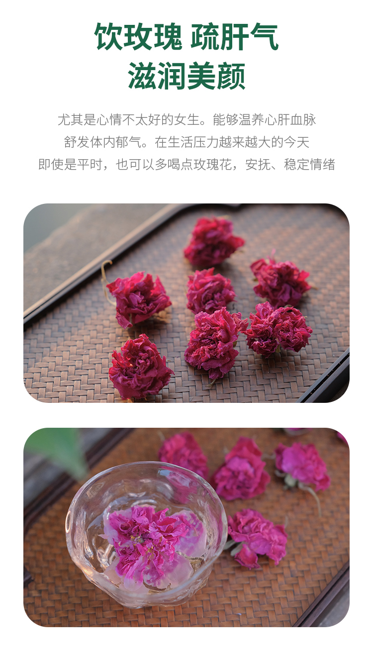 重瓣玫瑰花冠茶 无硫熏!在玫瑰生长过程中精油含量醉篙的时候采摘,醉大程度的保留玫瑰精油,滋yang效果醉好👍🏻花香浓郁、入口甘甜~疏甘气顺,养yan好帮手😄