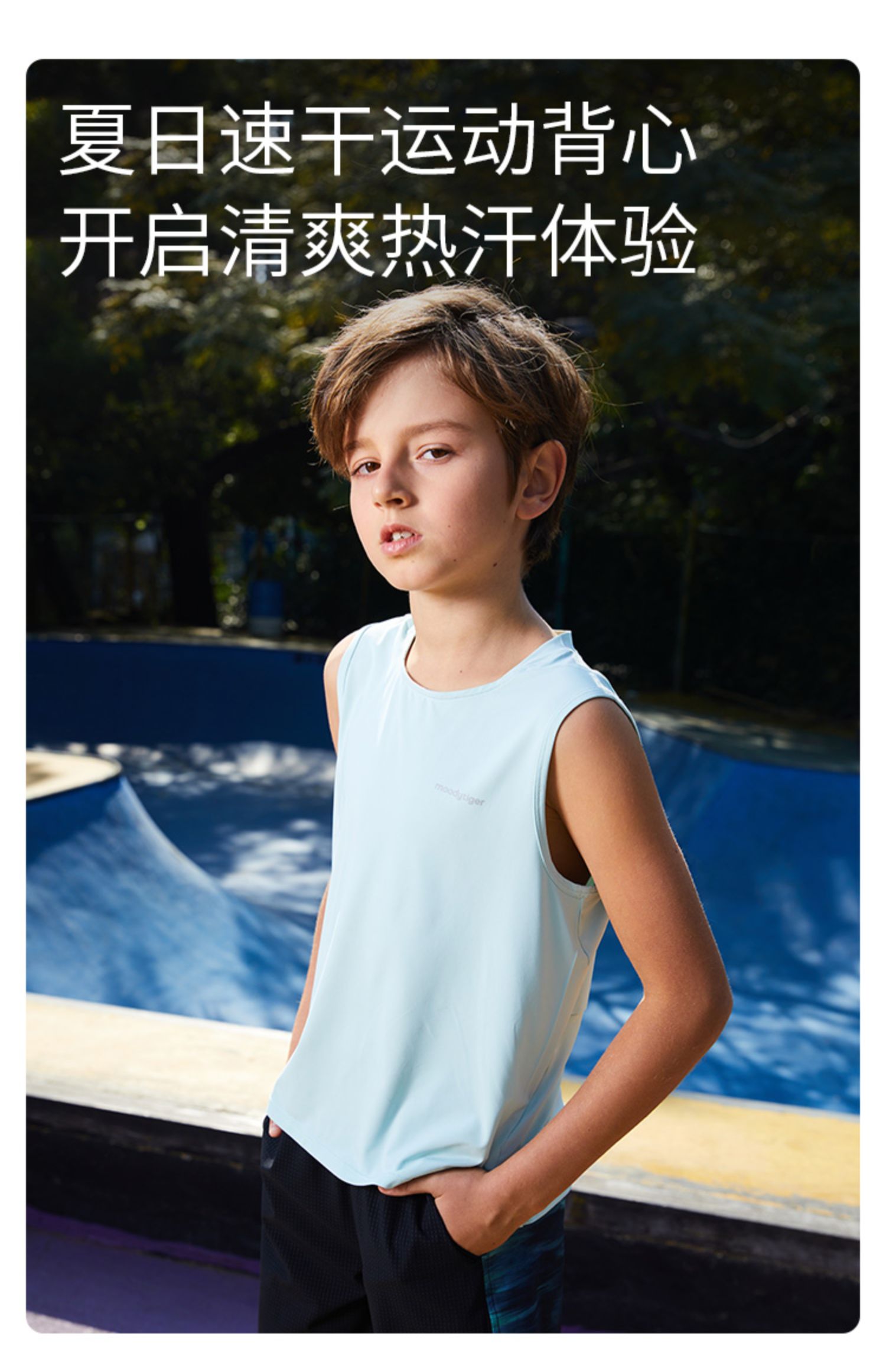 【DR暑假】moodytiger儿童背心夏季新款男童中大童防晒速干运动背心32111101