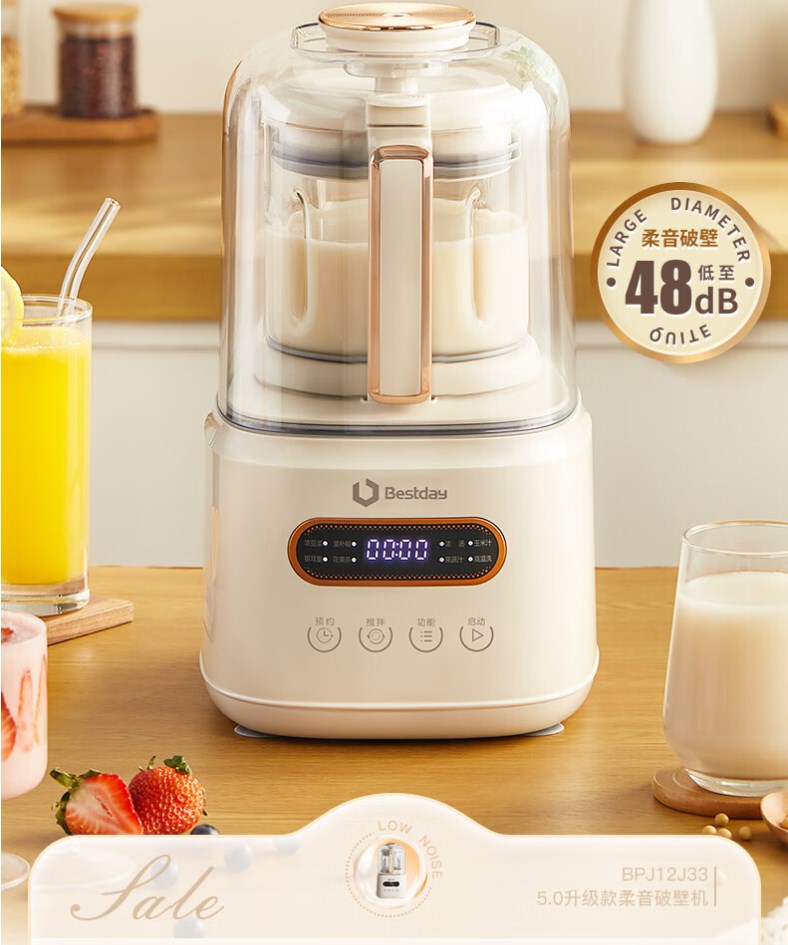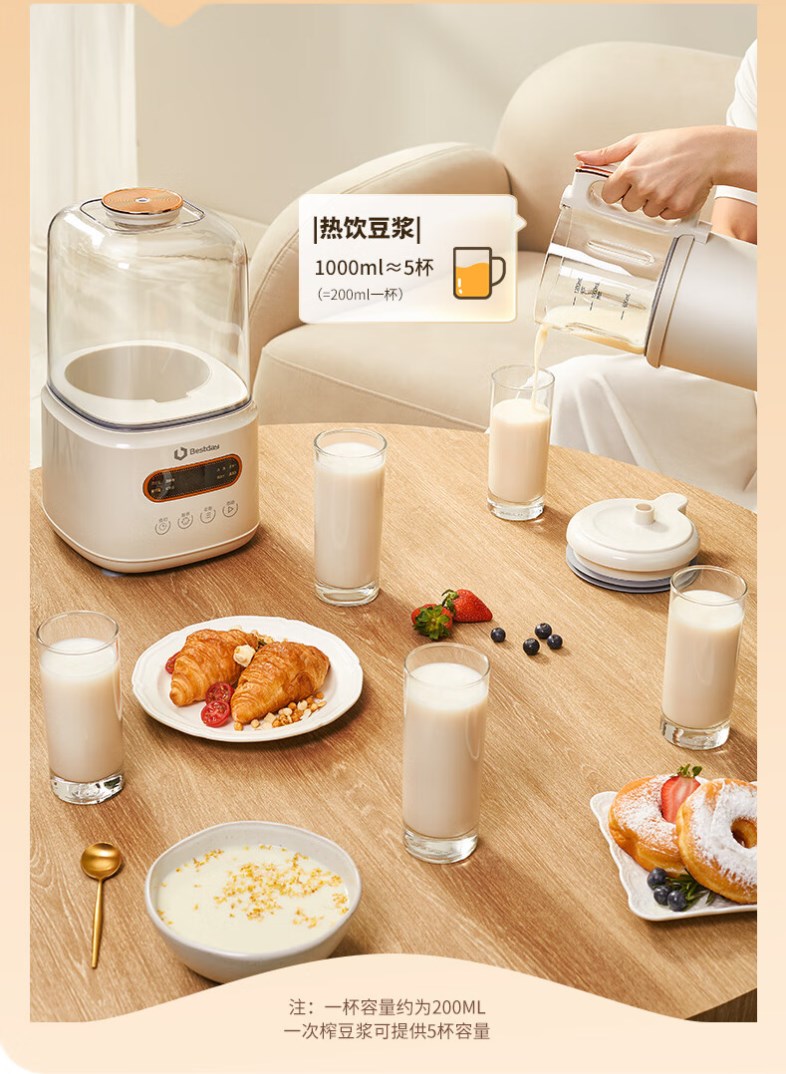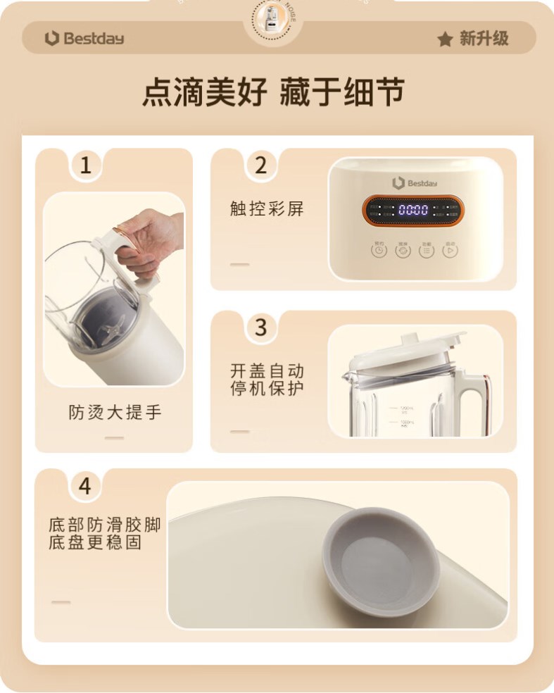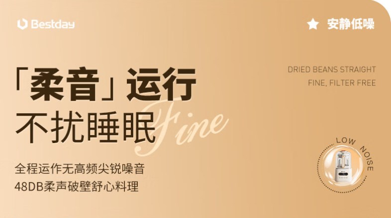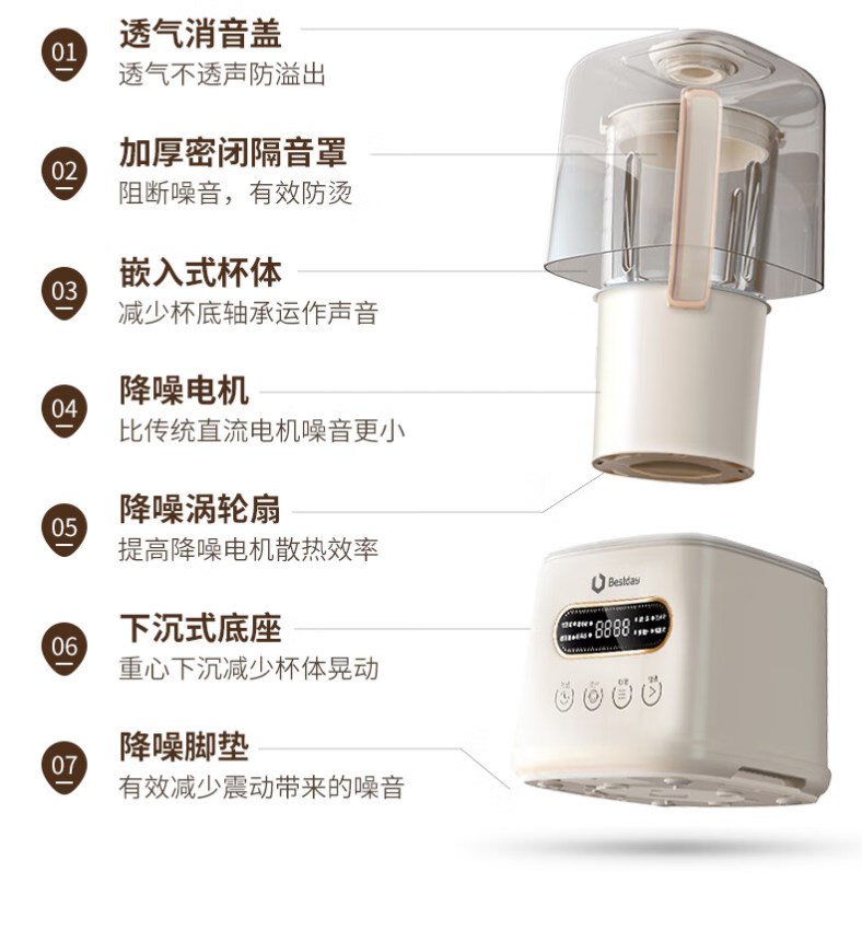 【超静柔音破壁机】贝尔斯顿(Bestday)超静柔音破壁机家用全自动豆浆机加热降噪榨汁机搅拌机 米色
