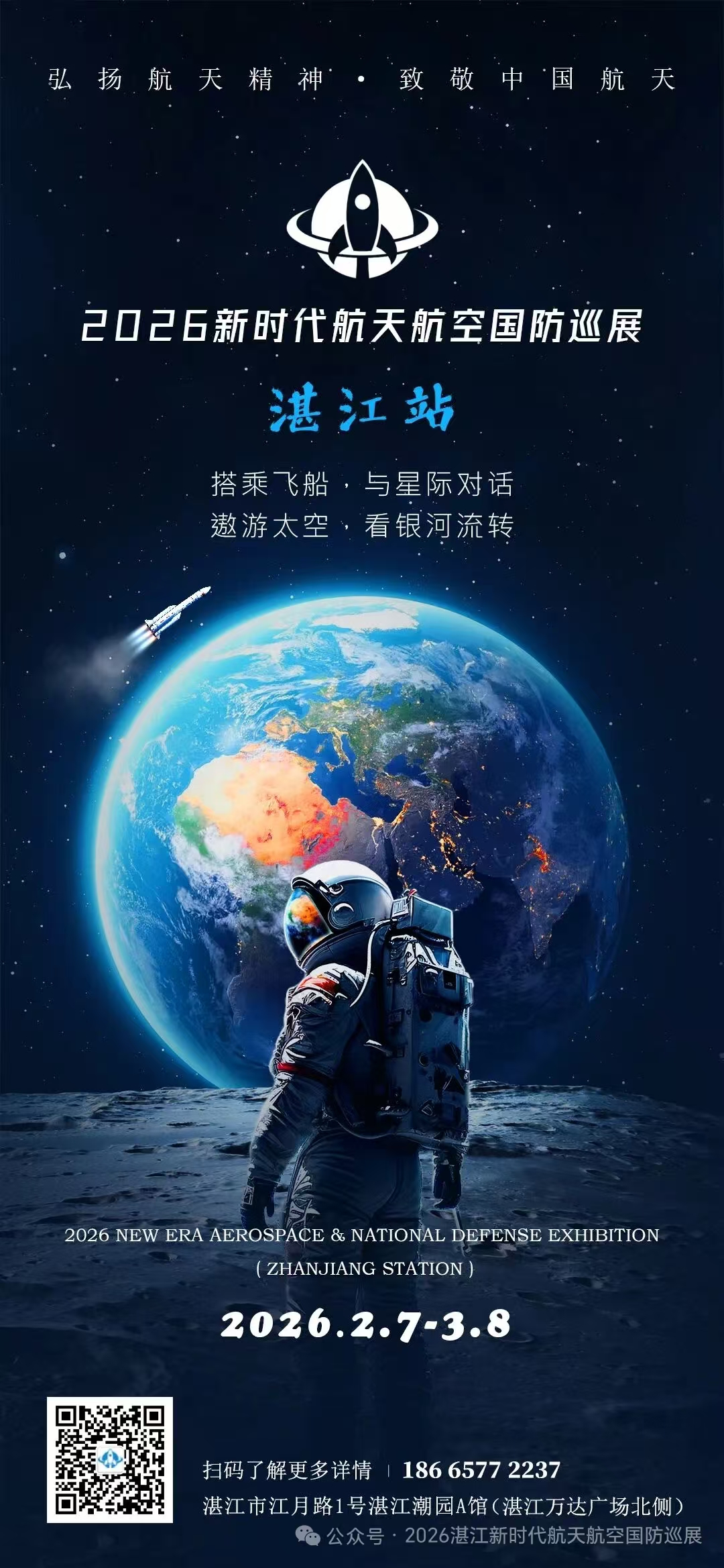 对孩子来说,最好的科普教育,不是课本上的文字,而是亲身的熏陶与体验!2026新时代航天航空国防巡展-湛江站,把“航天课堂”搬进展馆,以“沉浸式体验+趣味VR互动”的形式,让孩子在玩乐中爱上科学,在震撼中种下航天梦想的种子!