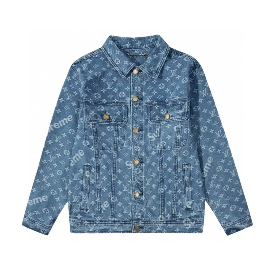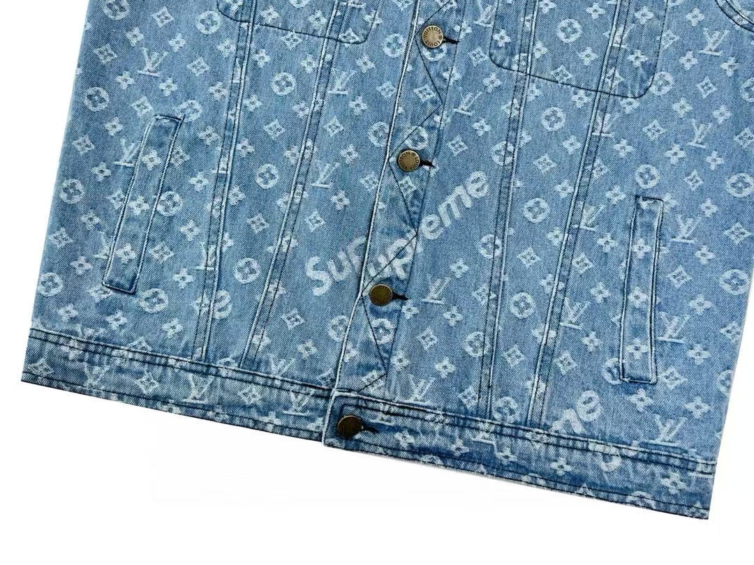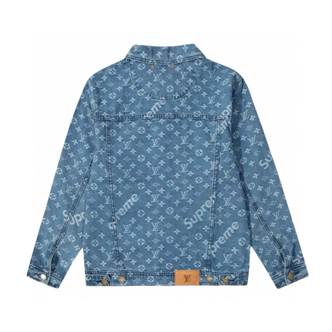 Louis Vuitton LV 路易威登 x Supreme 联名款老花满印 logo 字母印花情侣水洗牛仔外套夹克-顶级原单版本