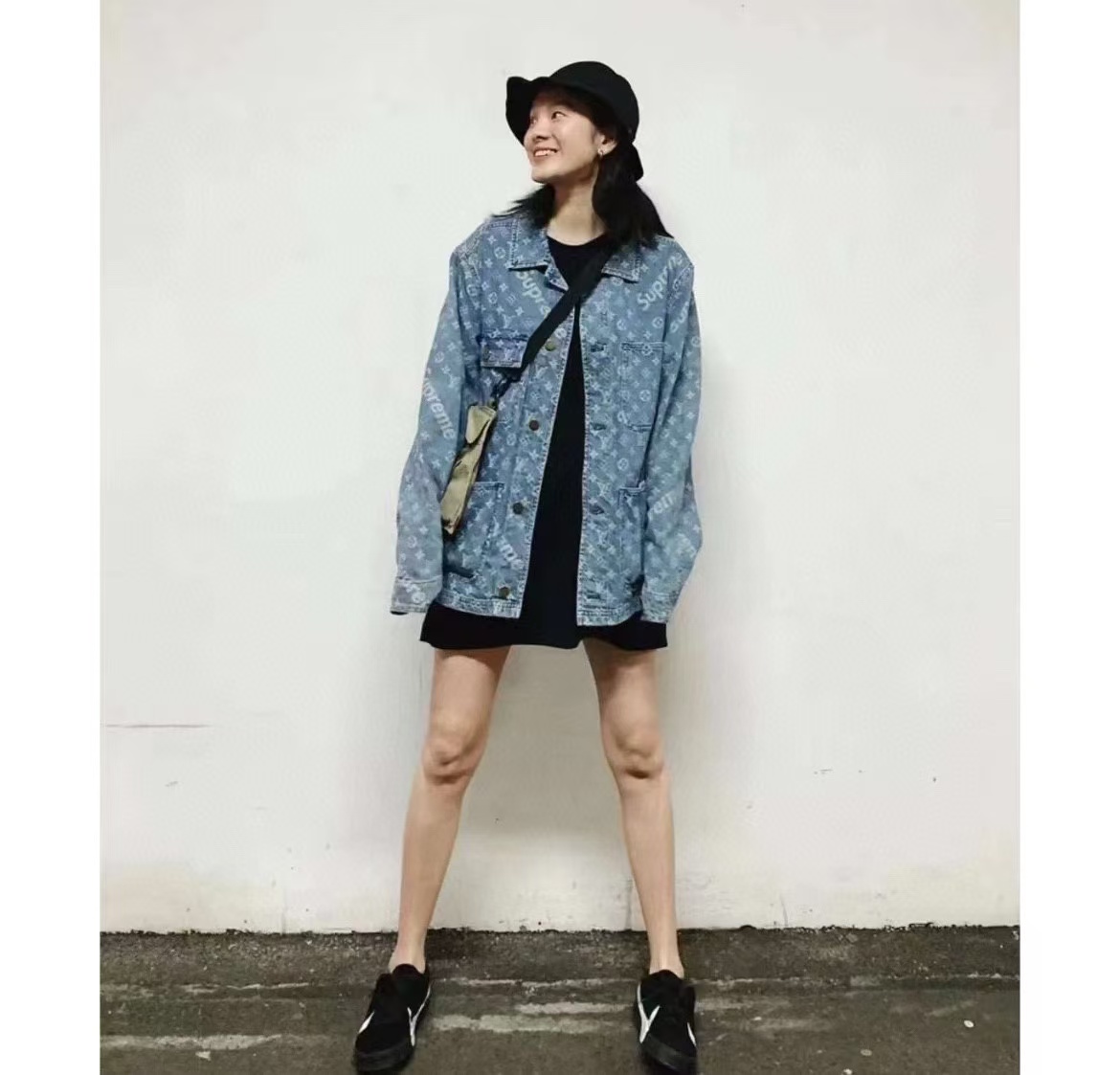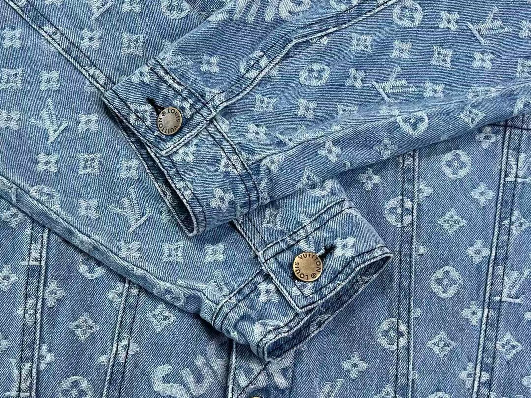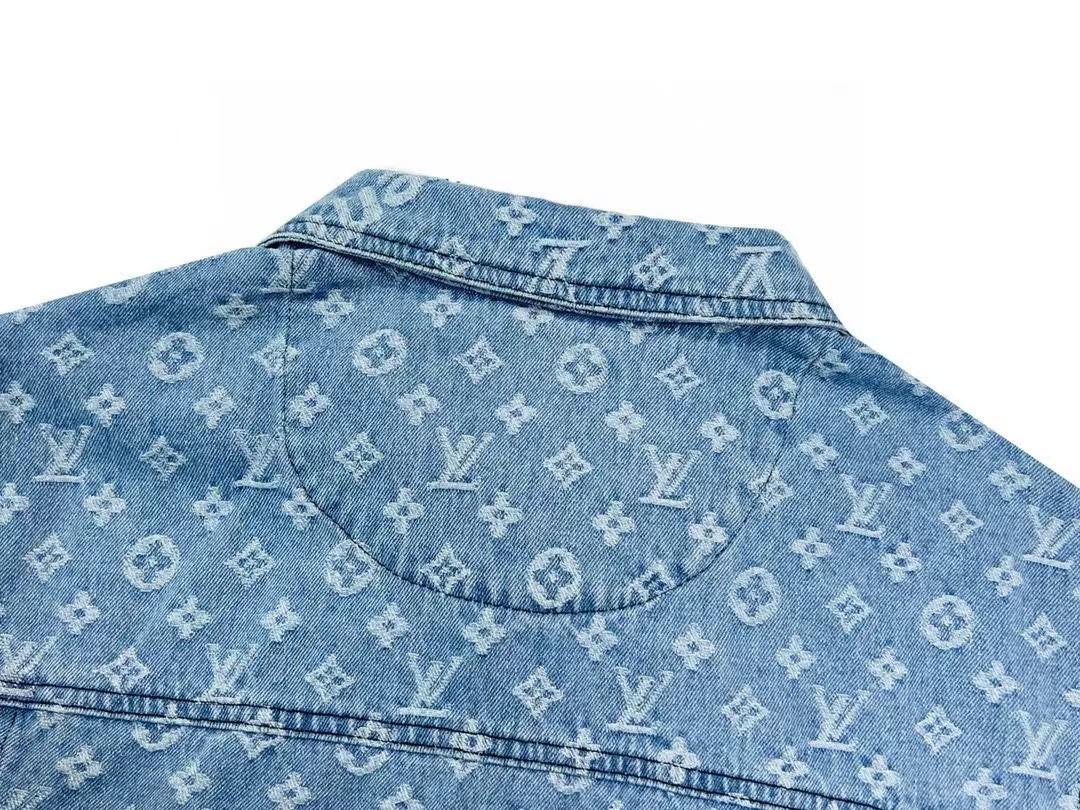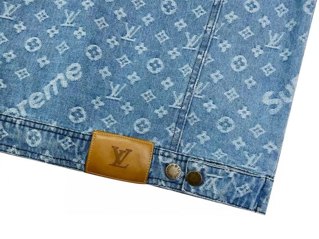 Louis Vuitton LV 路易威登 x Supreme 联名款老花满印 logo 字母印花情侣水洗牛仔外套夹克-顶级原单版本