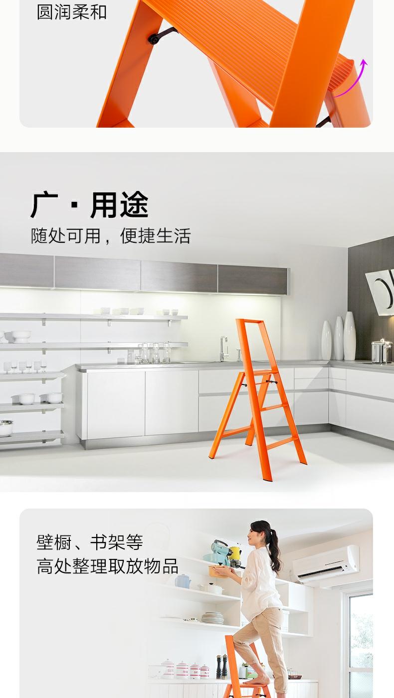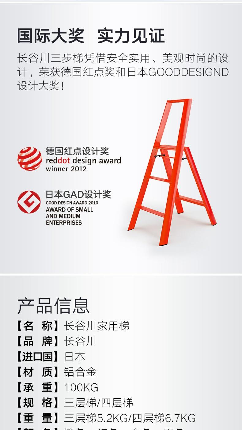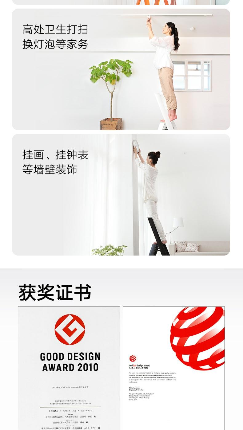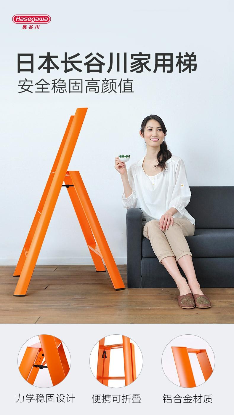 长谷川Hasegawa双扶手三步梯/四步梯铝合金家用梯子超薄多功能折叠人字梯
