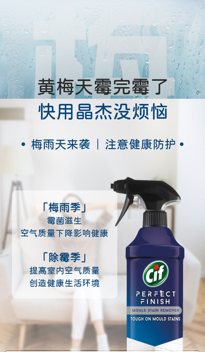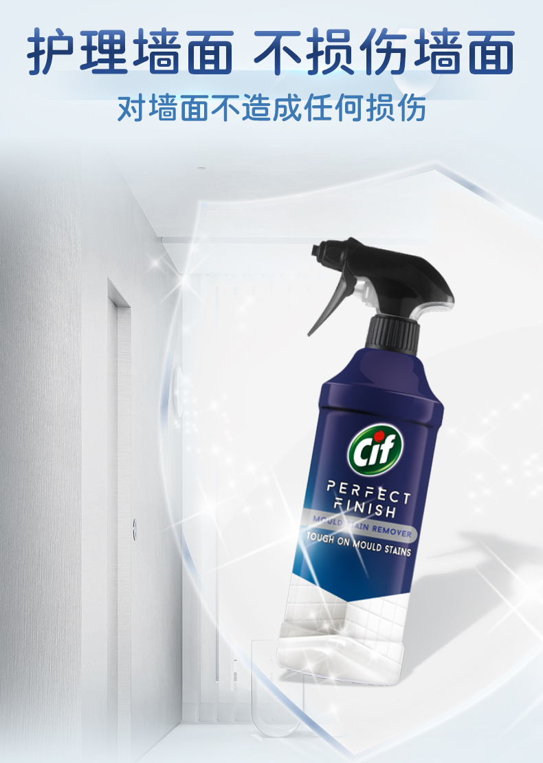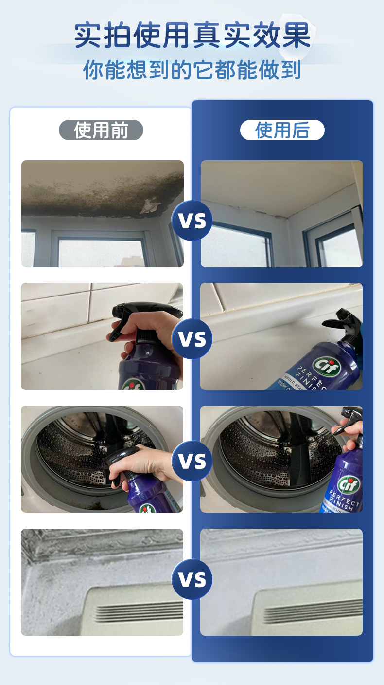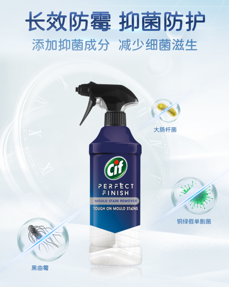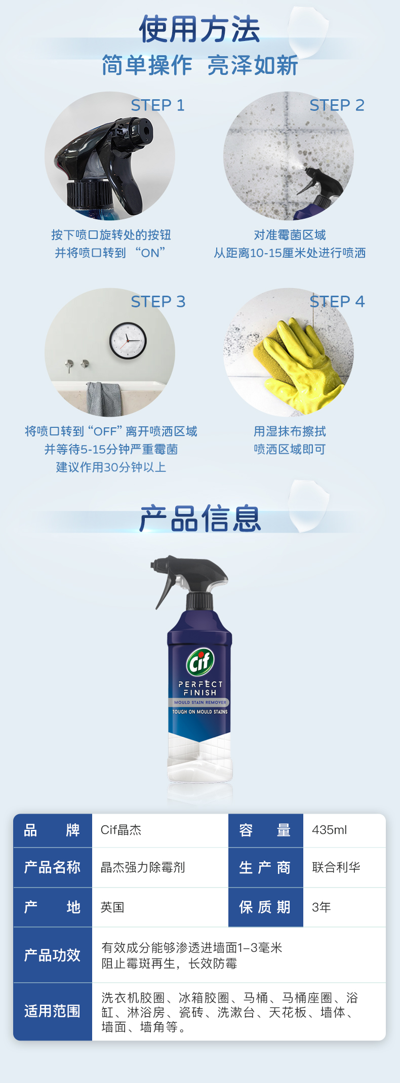 CIF晶杰强力除霉剂 435ml*2 去除99.96%黑曲霉菌 梅雨季必备 一喷轻松除莓 抑菌防护 3 效合 1 高效清洁