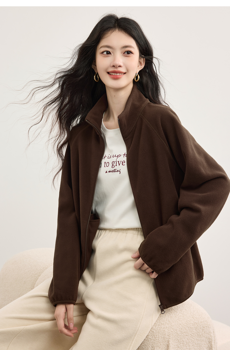 【周四狂欢价】熙世界户外运动风摇粒绒外套女秋冬季冲锋衣内胆保暖立领抓绒上衣