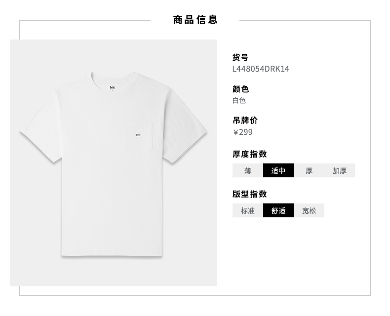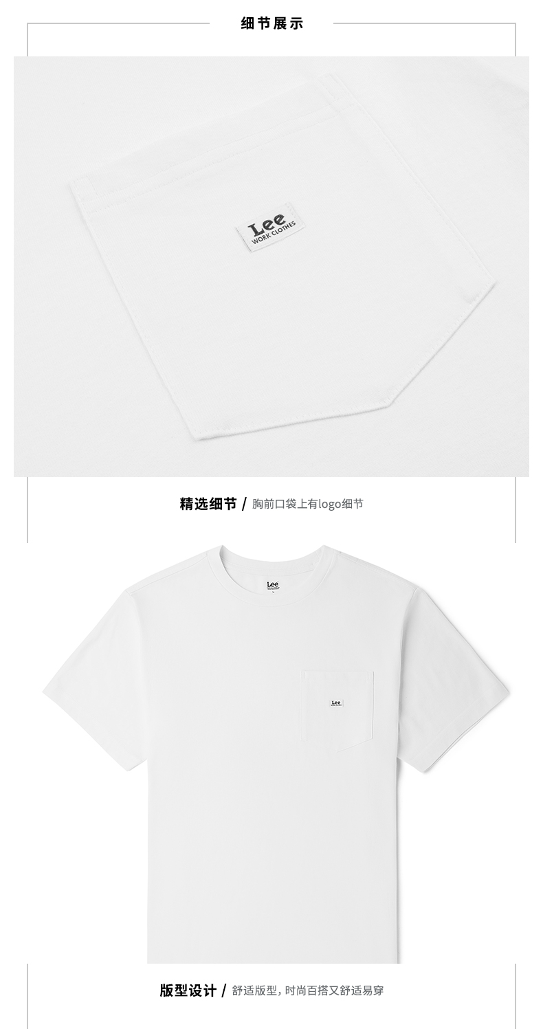 Lee商场同款21春夏新品舒适版型男口袋短袖T恤潮流L448054DRK14