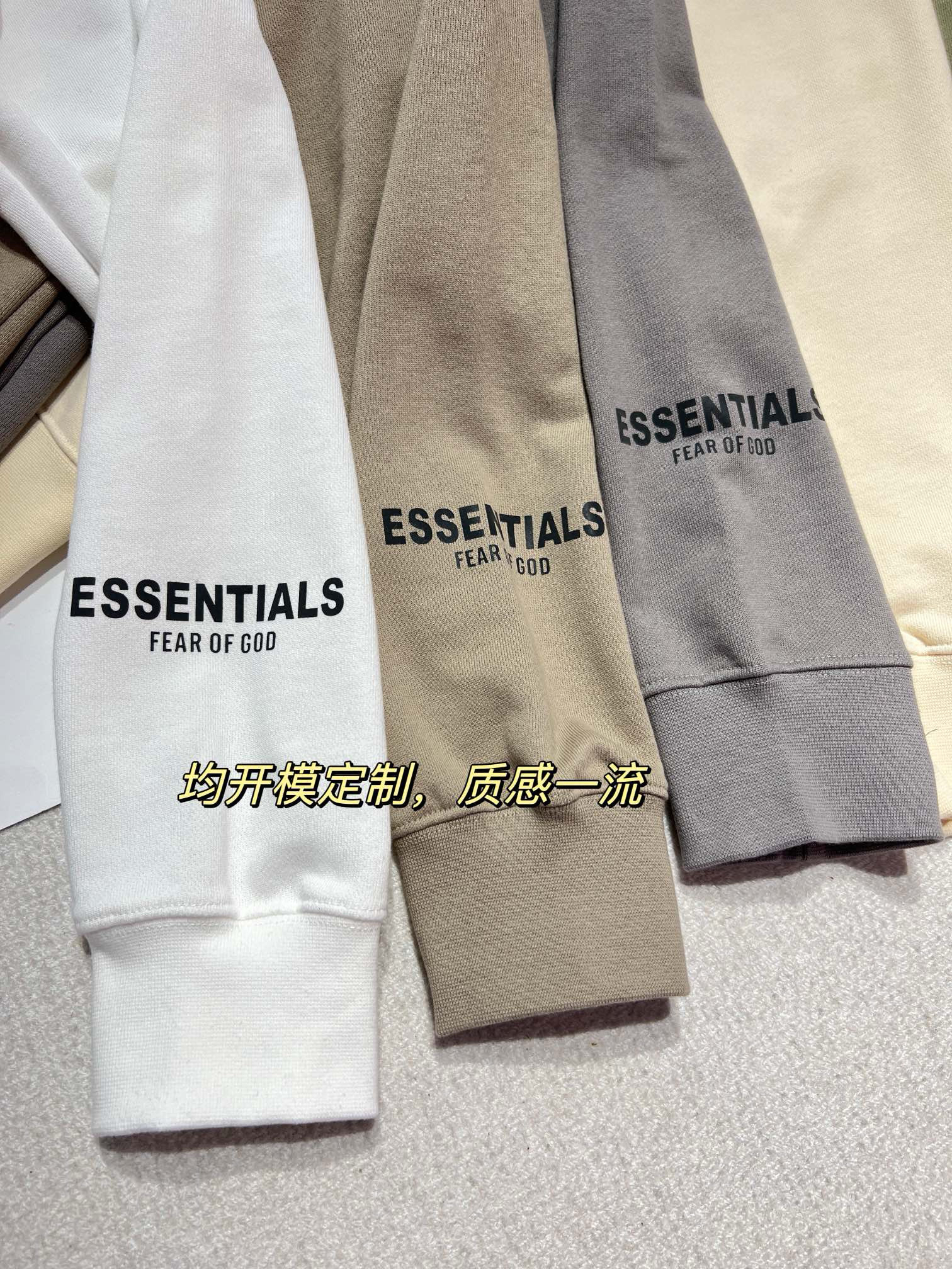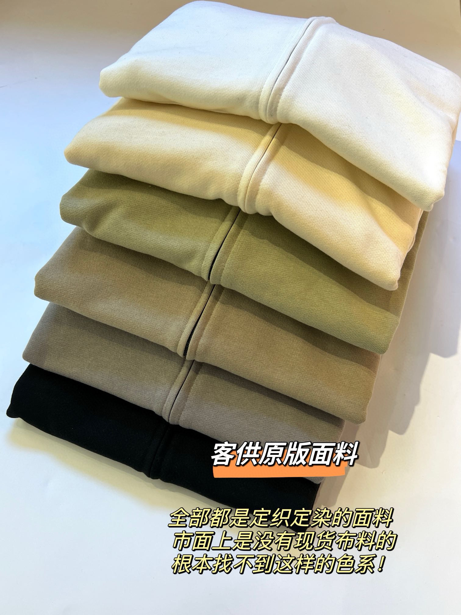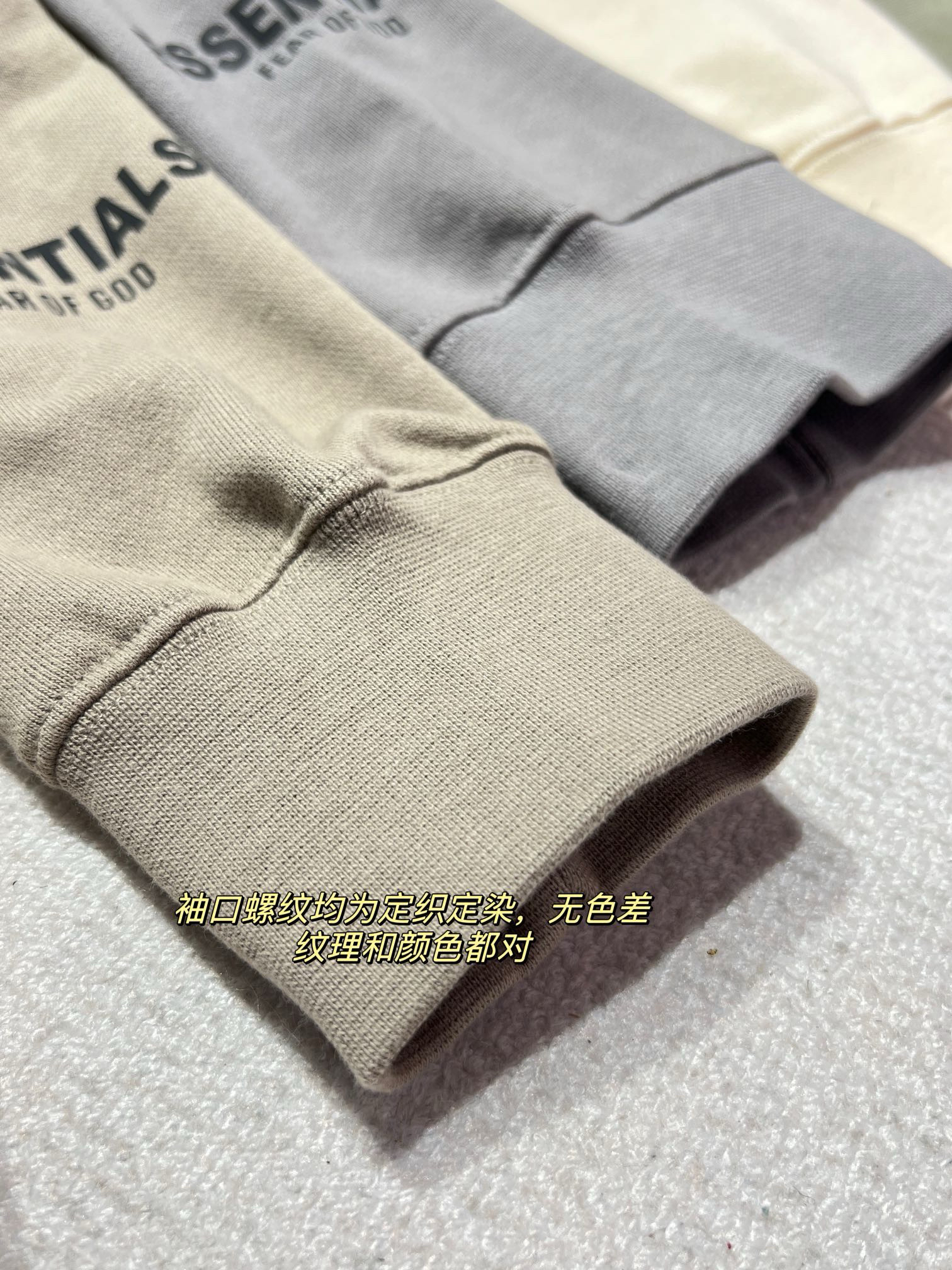 🔺面料是重点 上次买过ess都应该感受过了 我们的面料全部都是定织定染的面料 客供原版面料 市面上是没有现货布料的,根本找不到这样的色系!!全部面料衣身,袖口,下摆包括连帽款的,口袋帽身,均为定织定染,这样才能确保面料纹理性和颜色的一致~