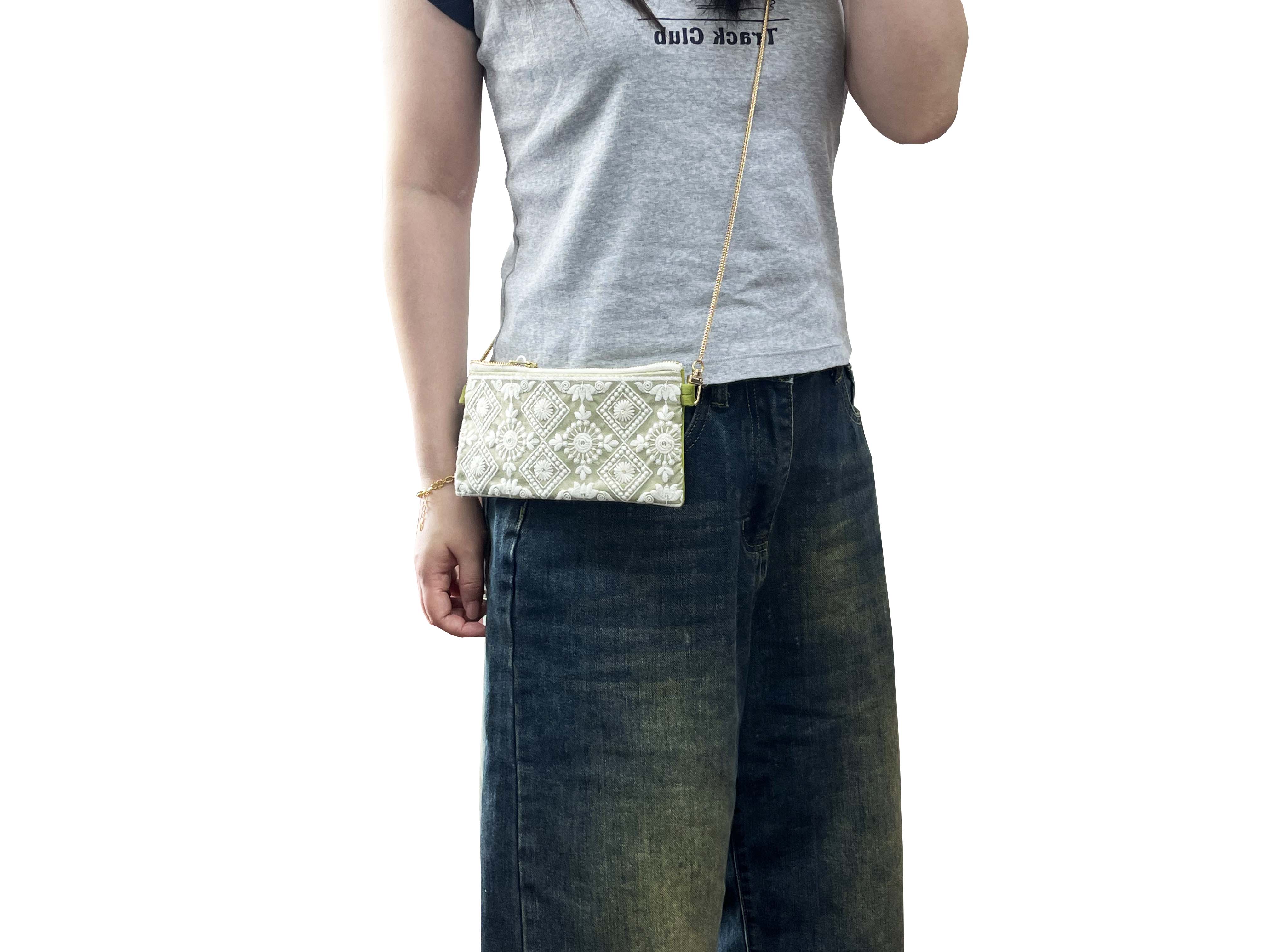 HUJI祤集横版链条斜挎包OrientMarket刺绣天鹅绒