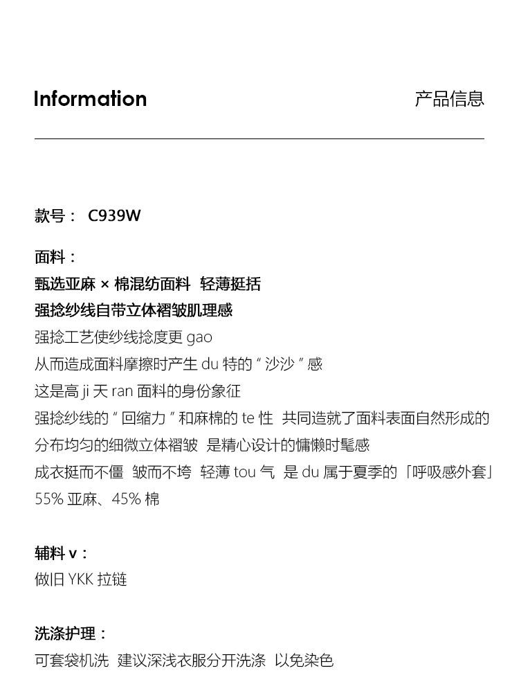 UMILAB|海风*率性老钱 呼吸感亚麻棉 重工轻薄休闲夏季外套C939W
