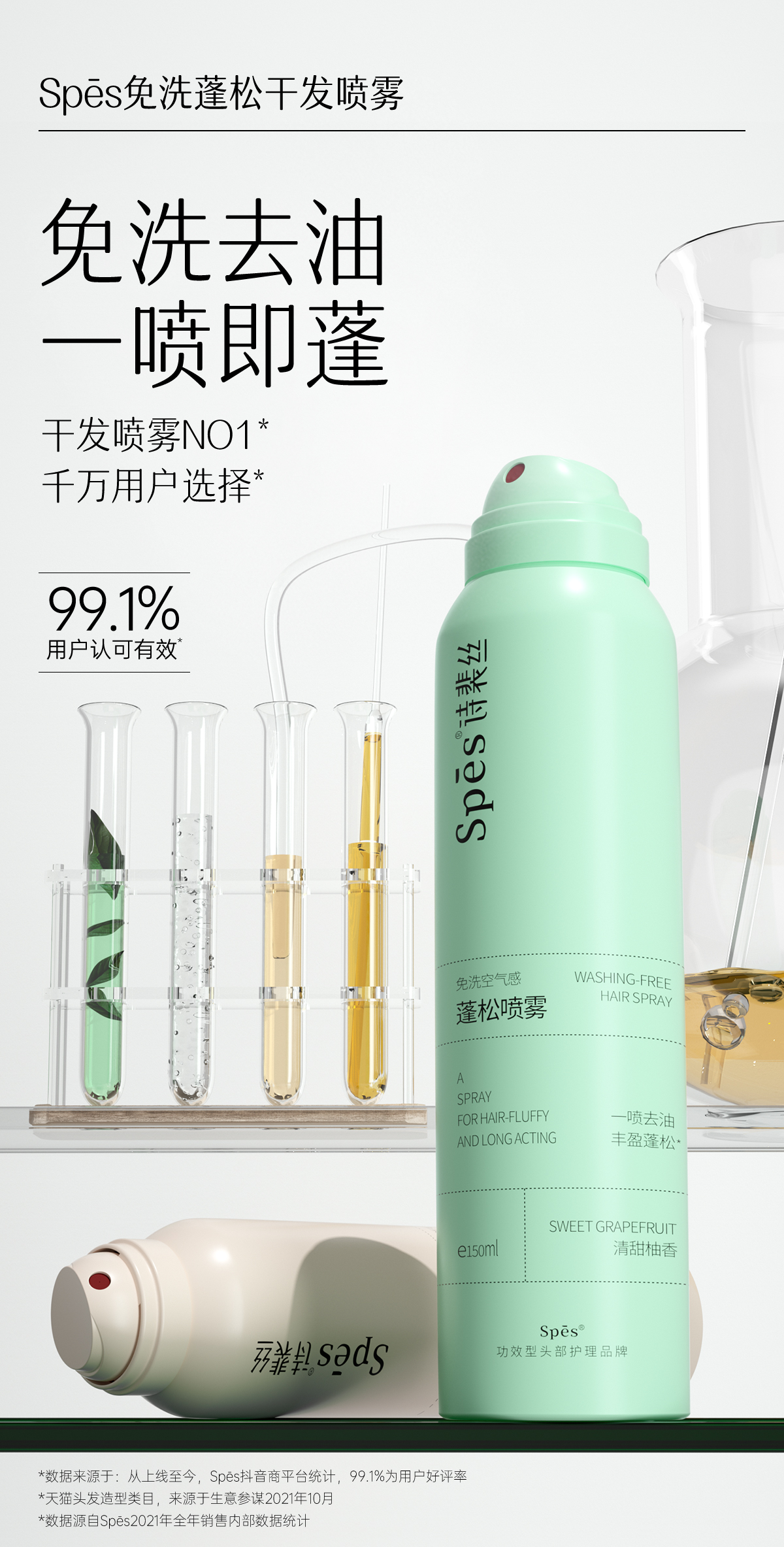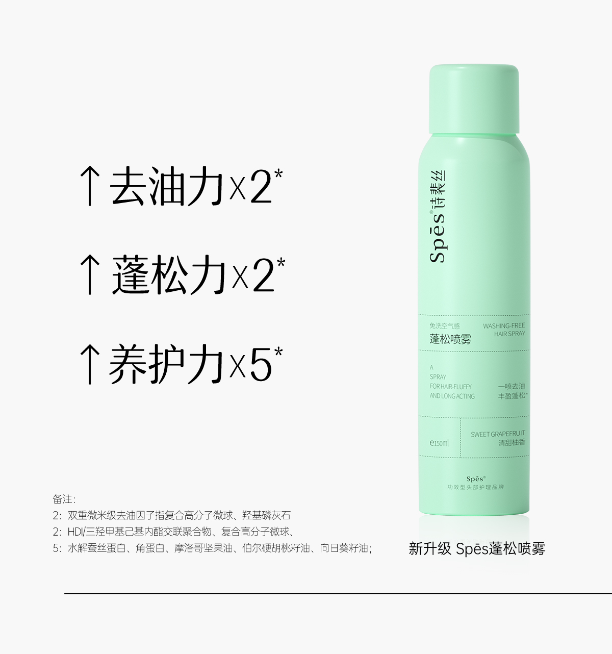【积分兑换】Spes诗裴丝 干发喷雾免洗蓬松喷雾 头发控油神器干爽蓬蓬粉高颅顶诗 150ml*2瓶