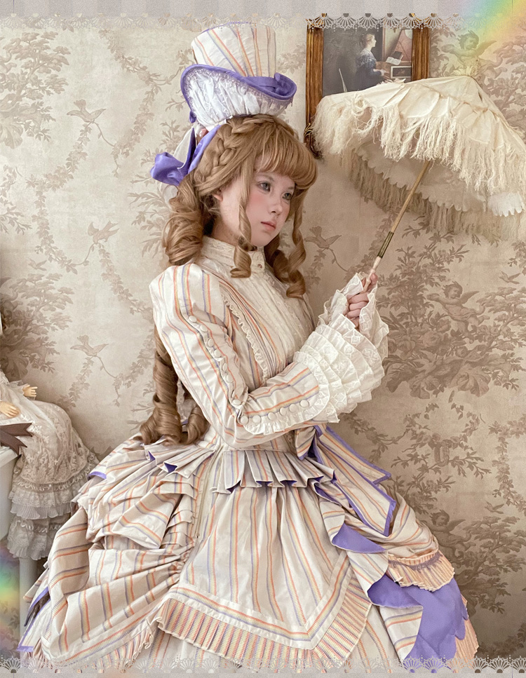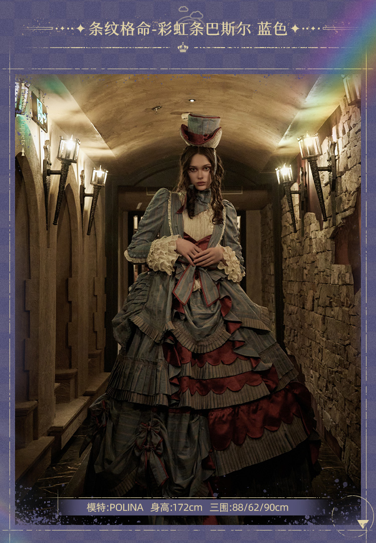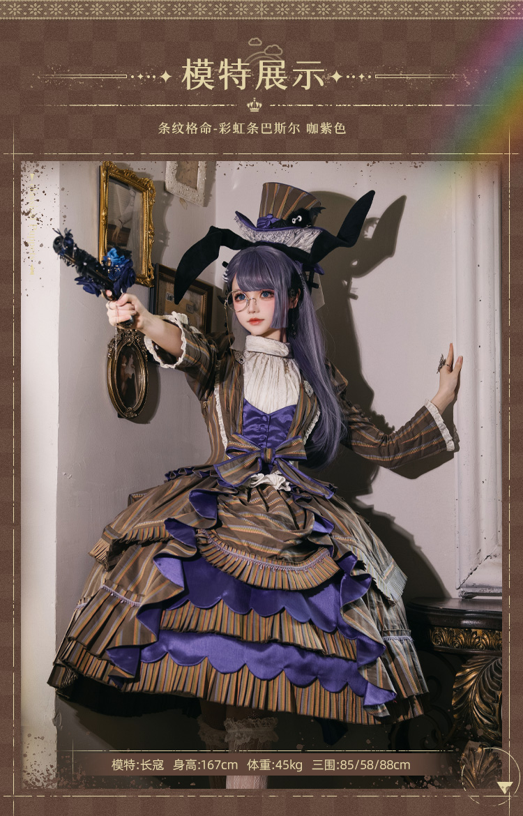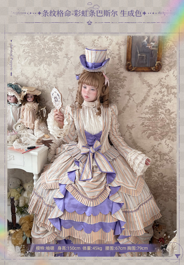 【全款预售】条纹格命 彩虹条巴斯尔 鱼骨OP+延长衬裙 古典玩偶 Lolita【2025年5月31日起发货】