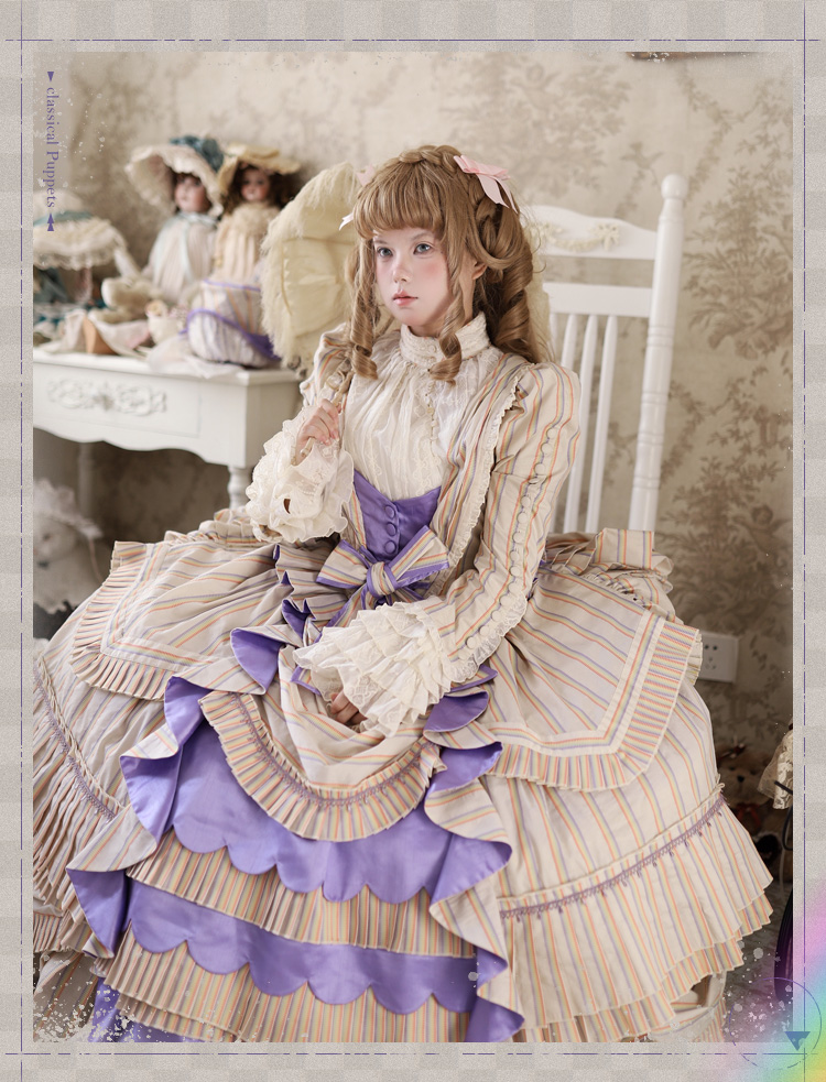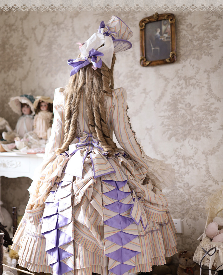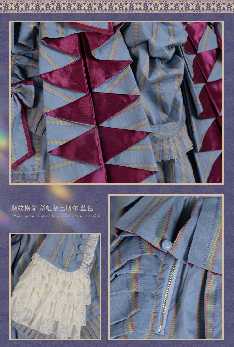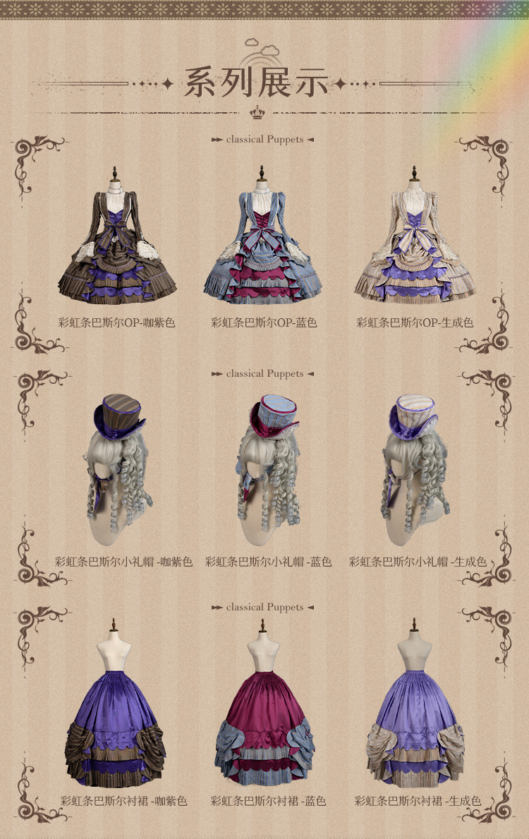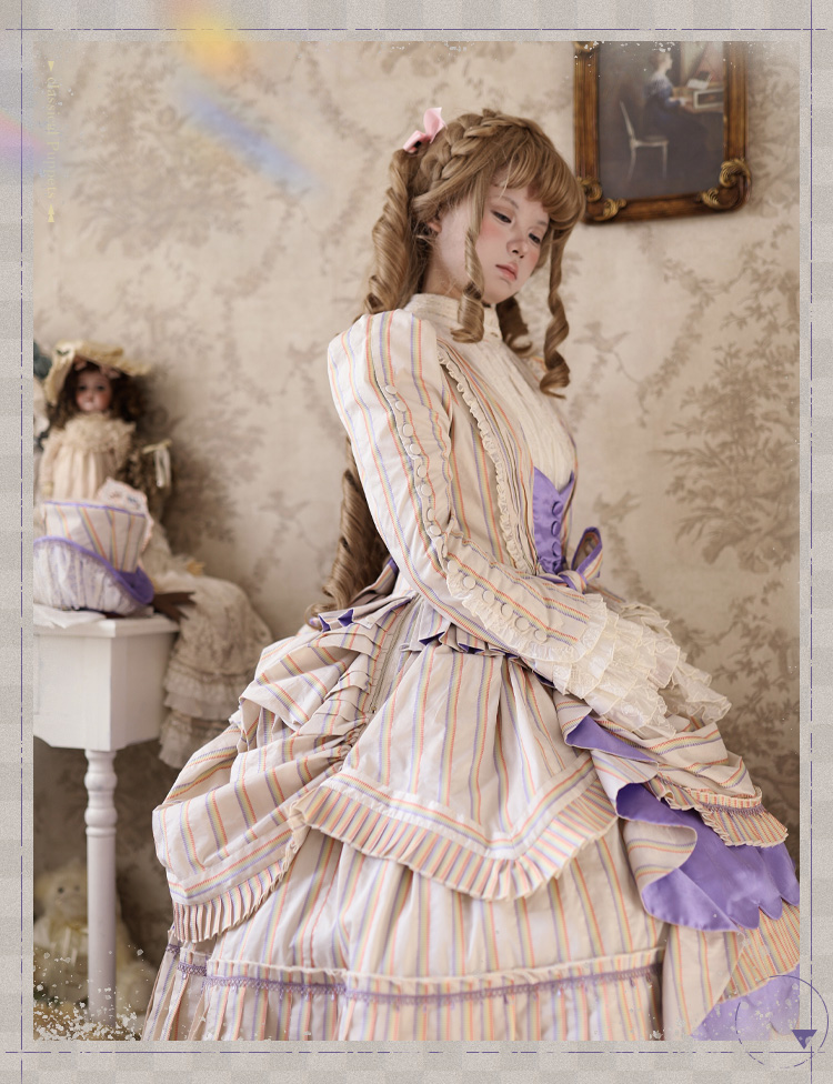 【全款预售】条纹格命 彩虹条巴斯尔 鱼骨OP+延长衬裙 古典玩偶 Lolita【2025年5月31日起发货】