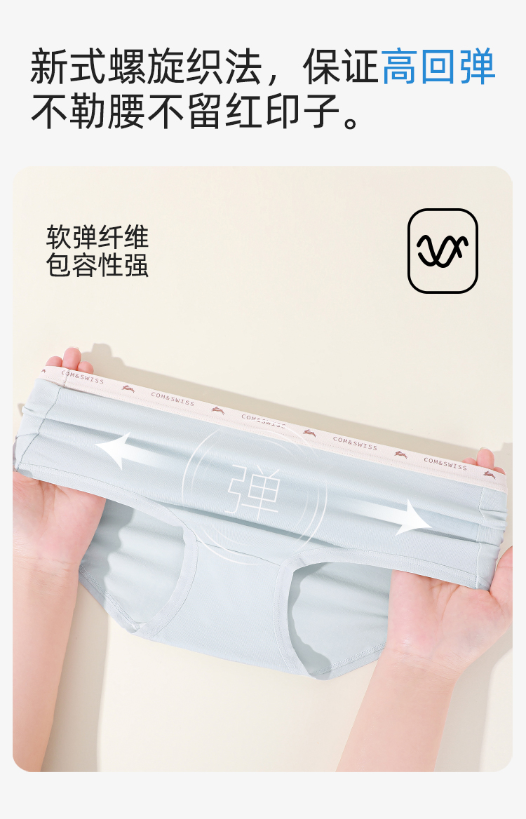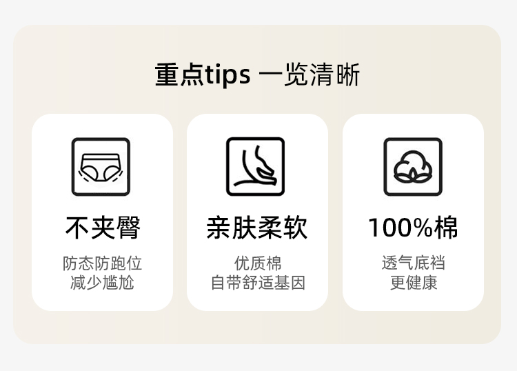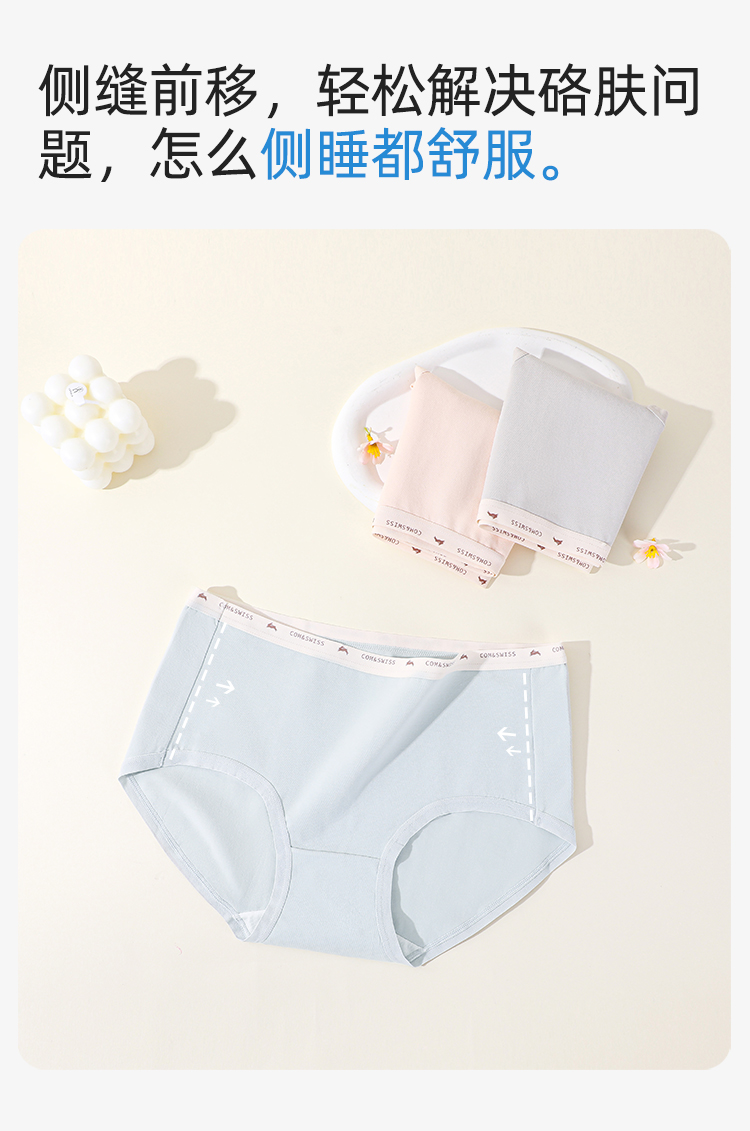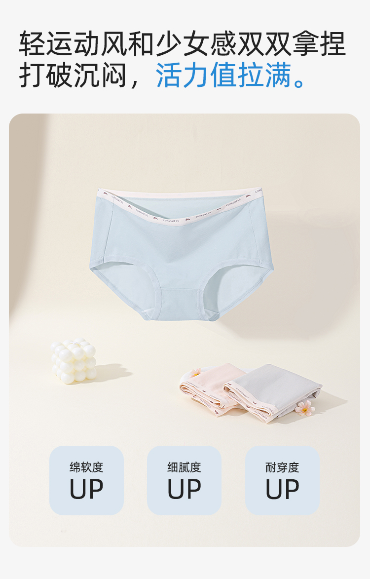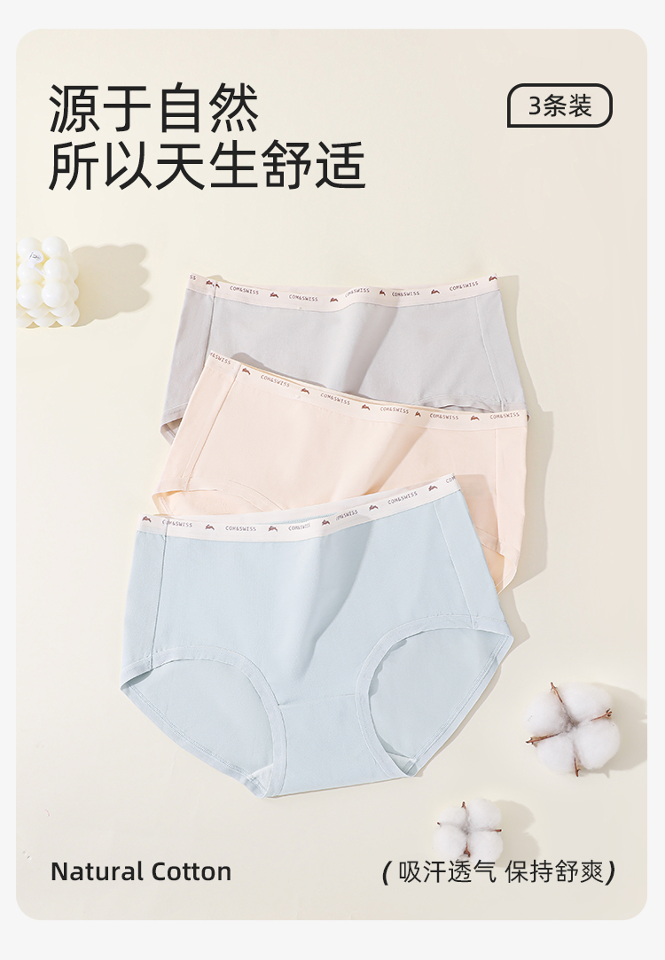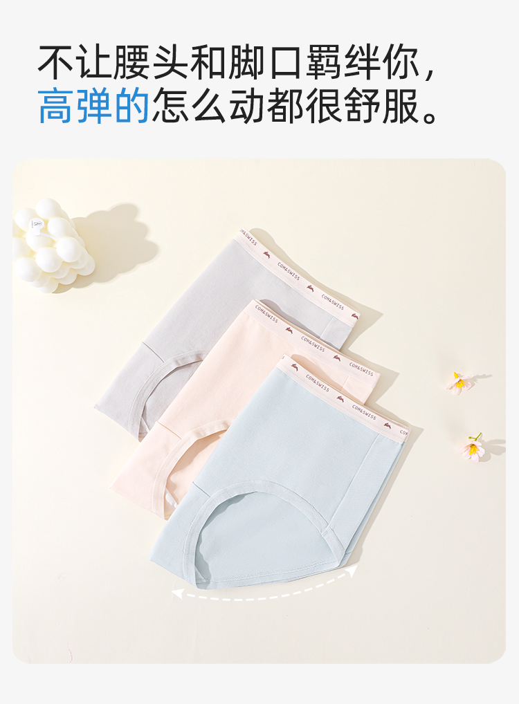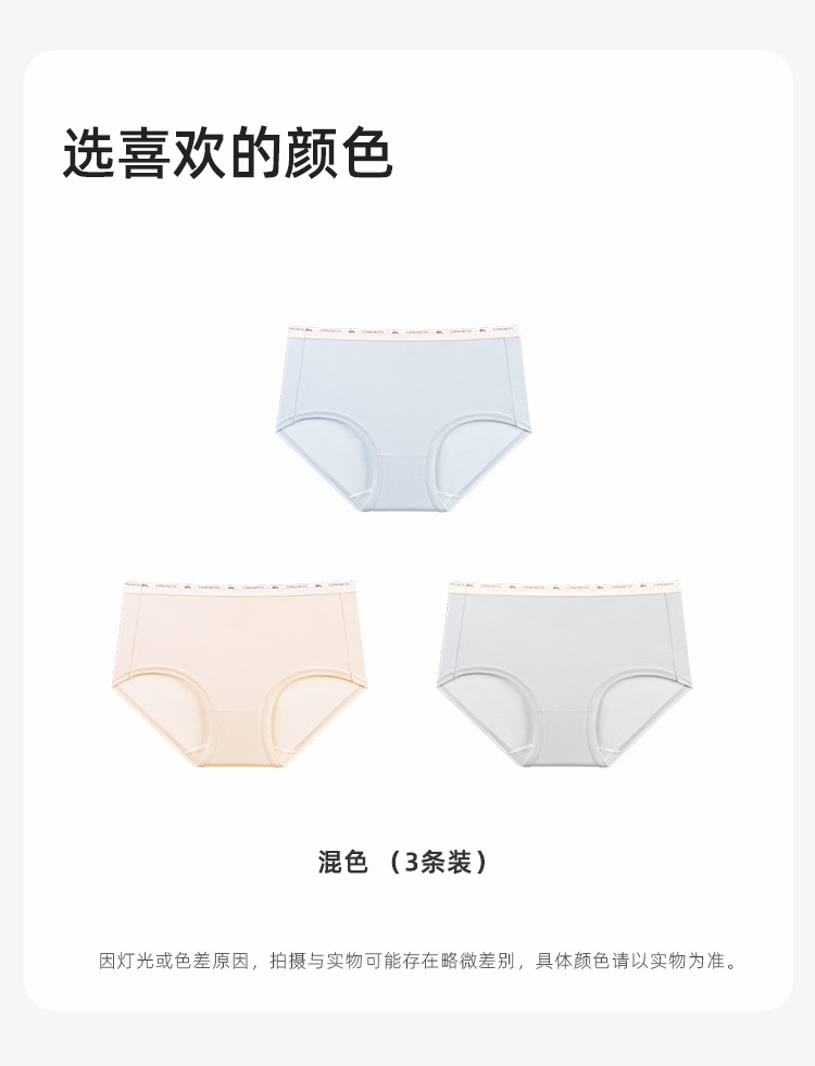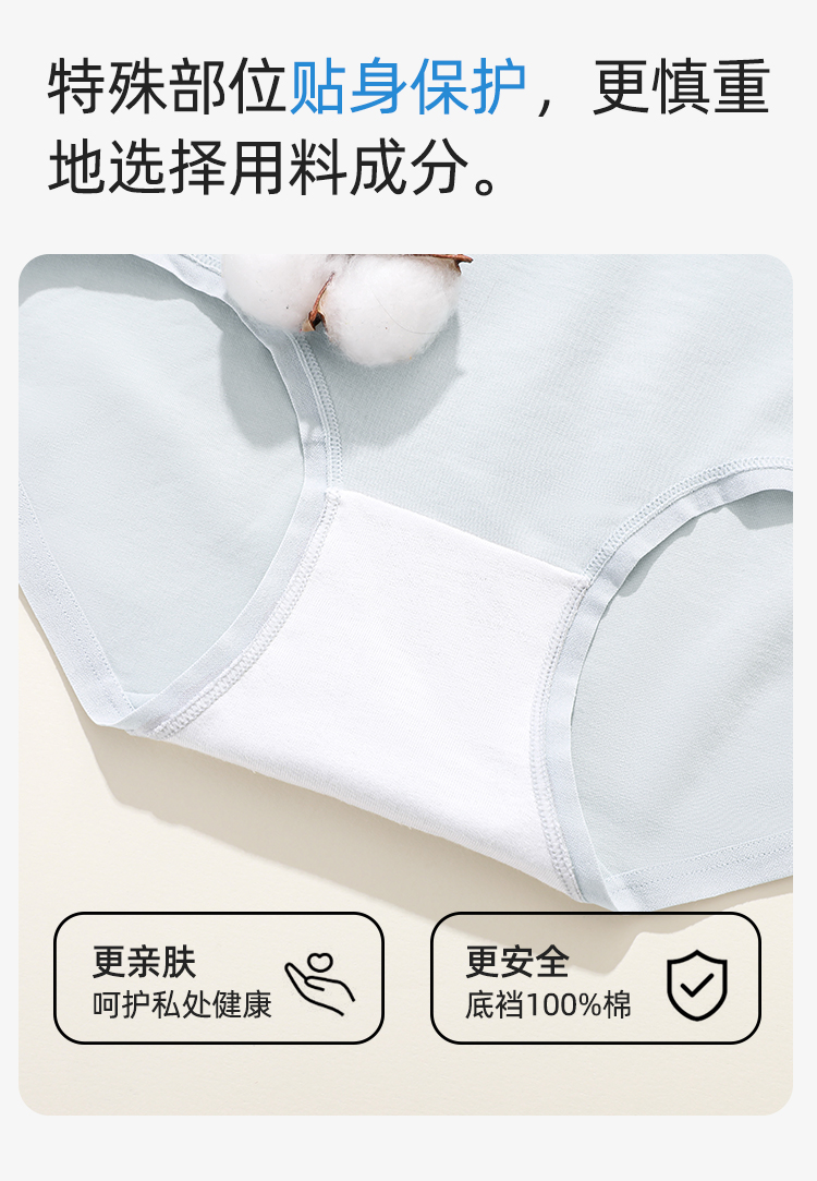 【3条装】熳洁儿 纯色女士内裤50支长绒棉新疆棉高弹舒适不夹臀24752108