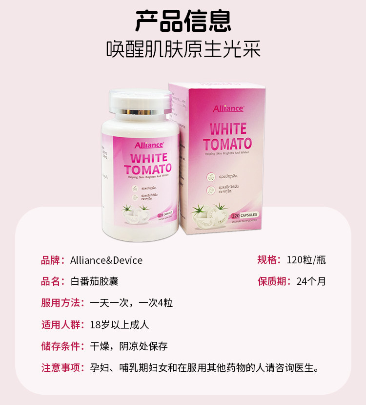 「肌源新生 全身亮白」Alliance & Device 水晶白番茄美白丸 120粒/瓶
