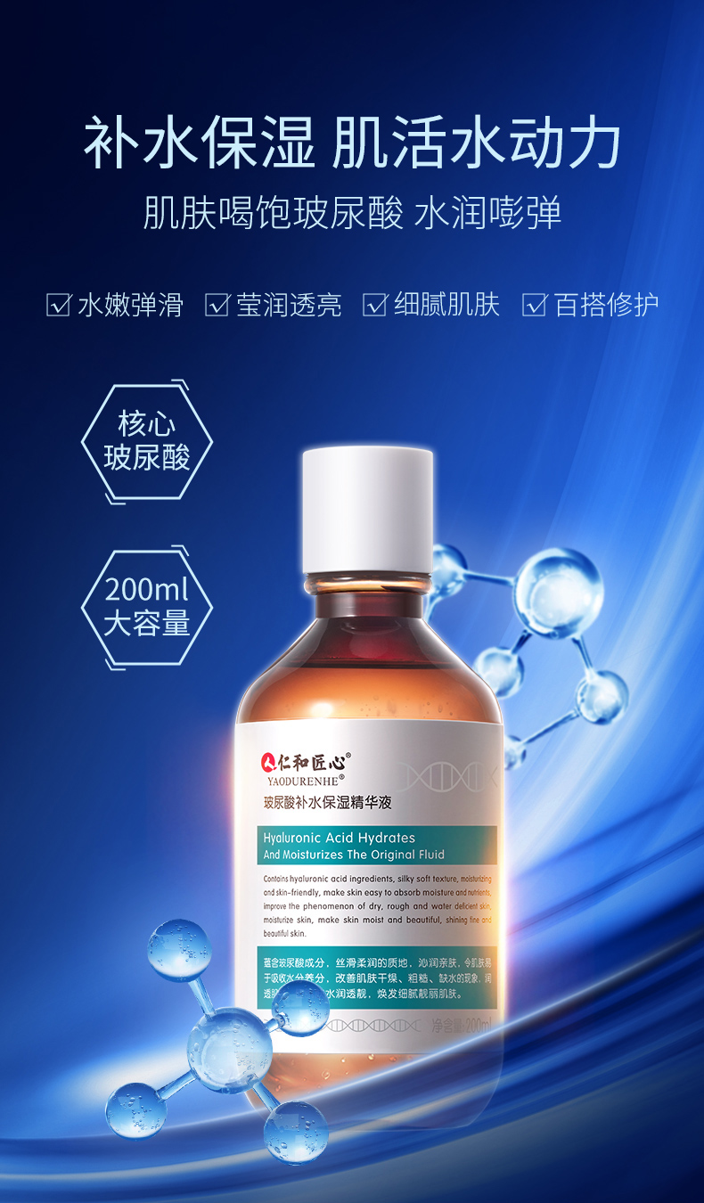 【买2送1】仁和匠心玻尿酸补水保湿精华液200ml/瓶