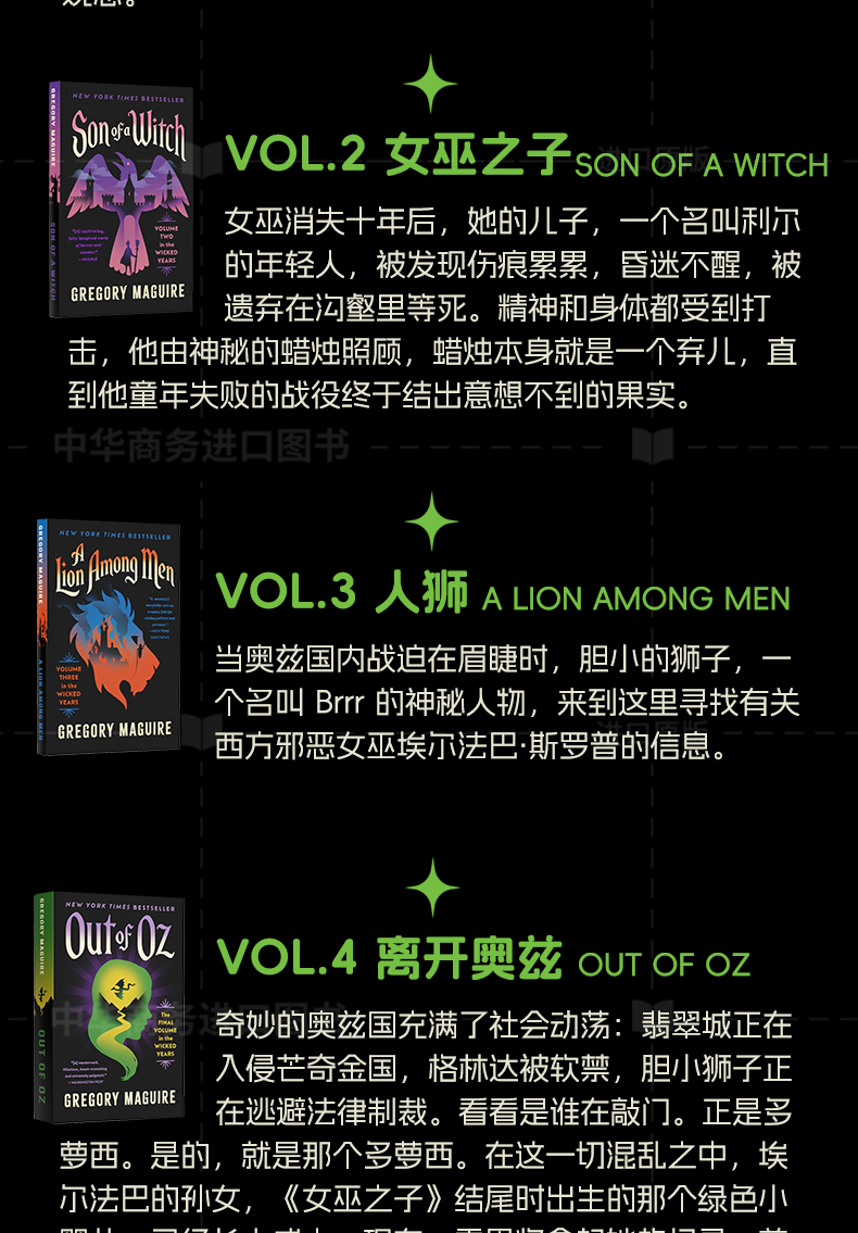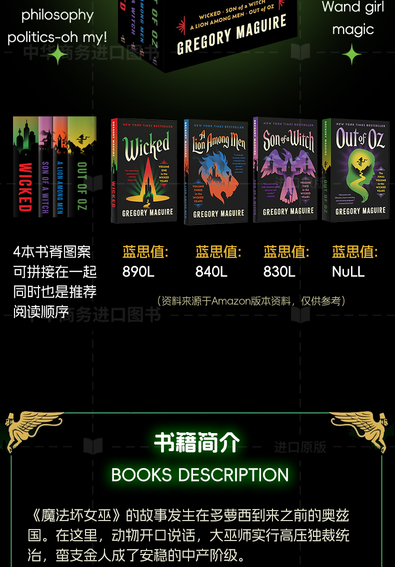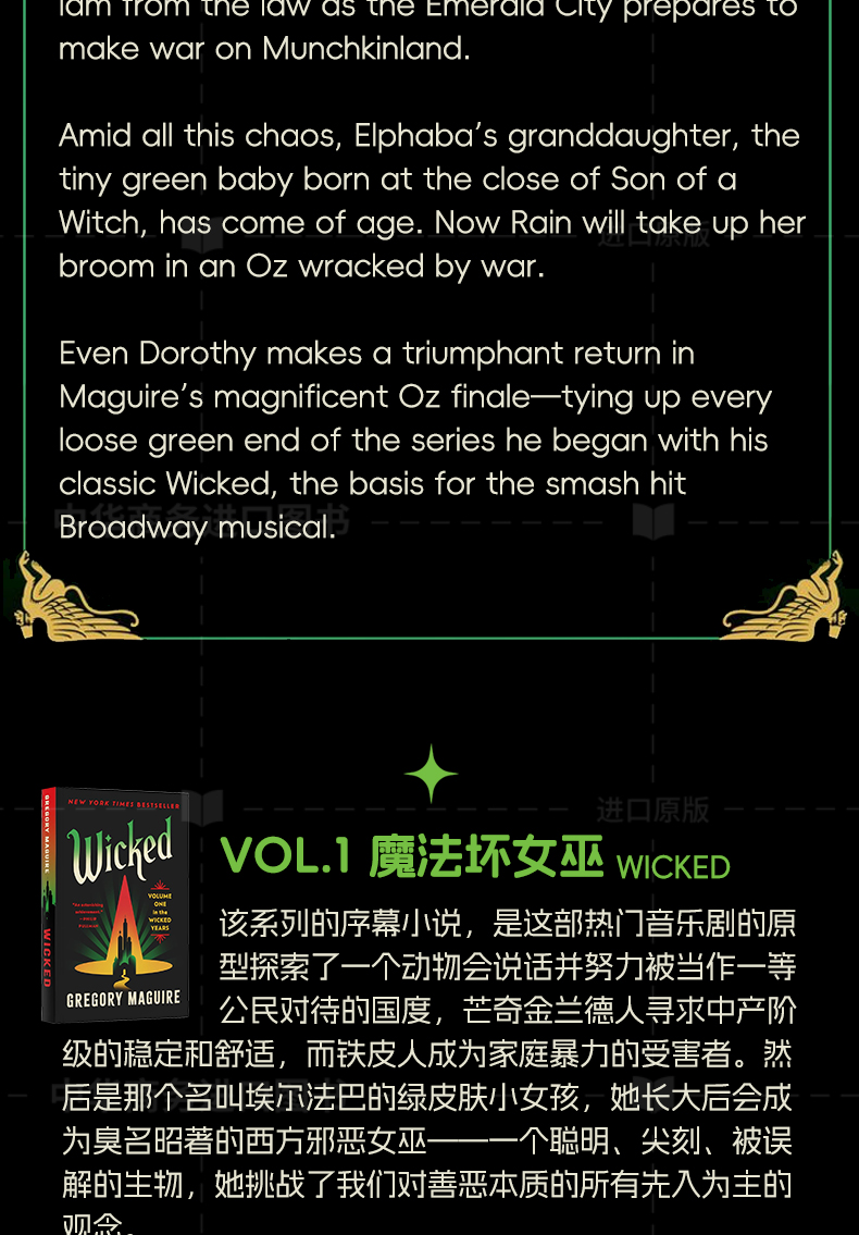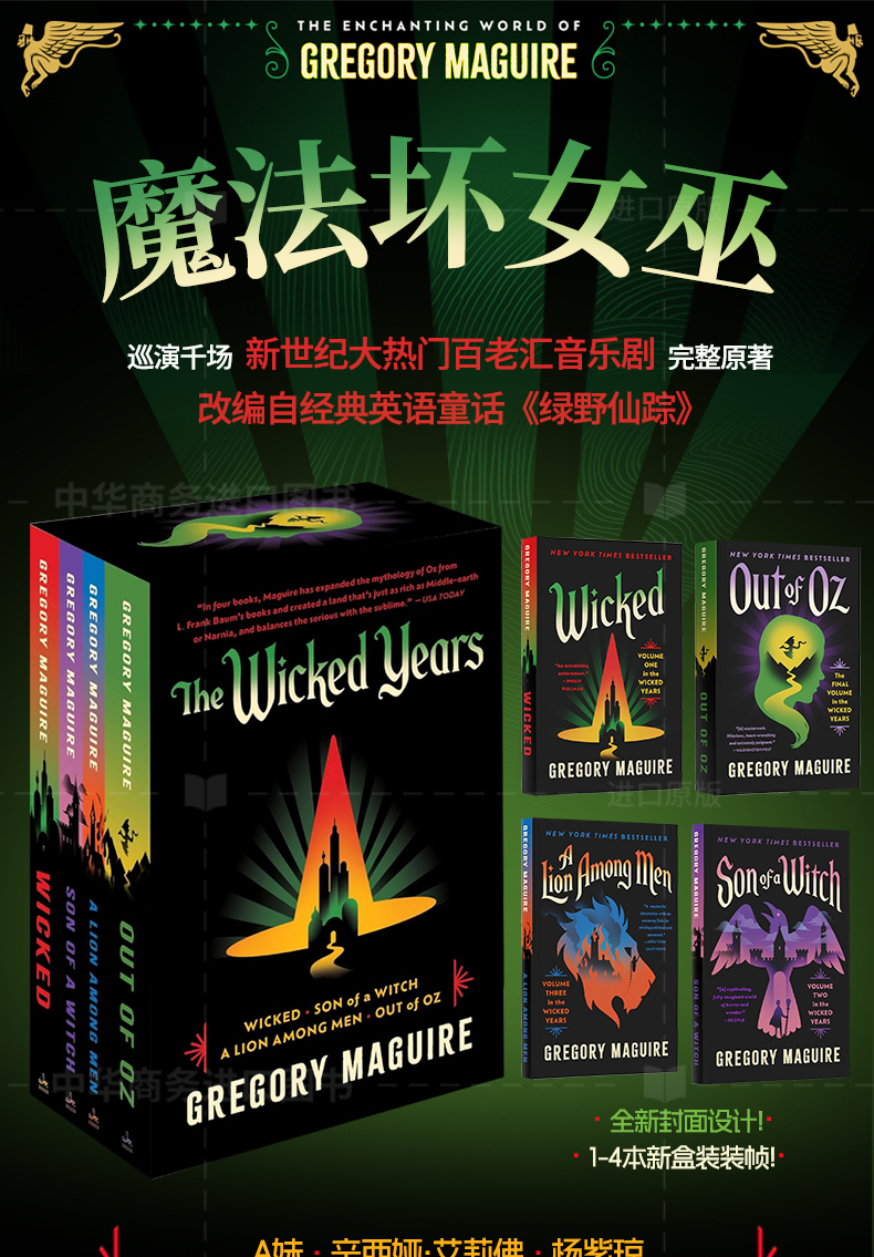 【中商原版】魔法坏女巫系列套装 美国音乐剧托尼奖原著小说 新版封面 The Wicked Series Box Set 英文原版 Gregory Maguire