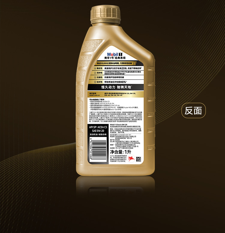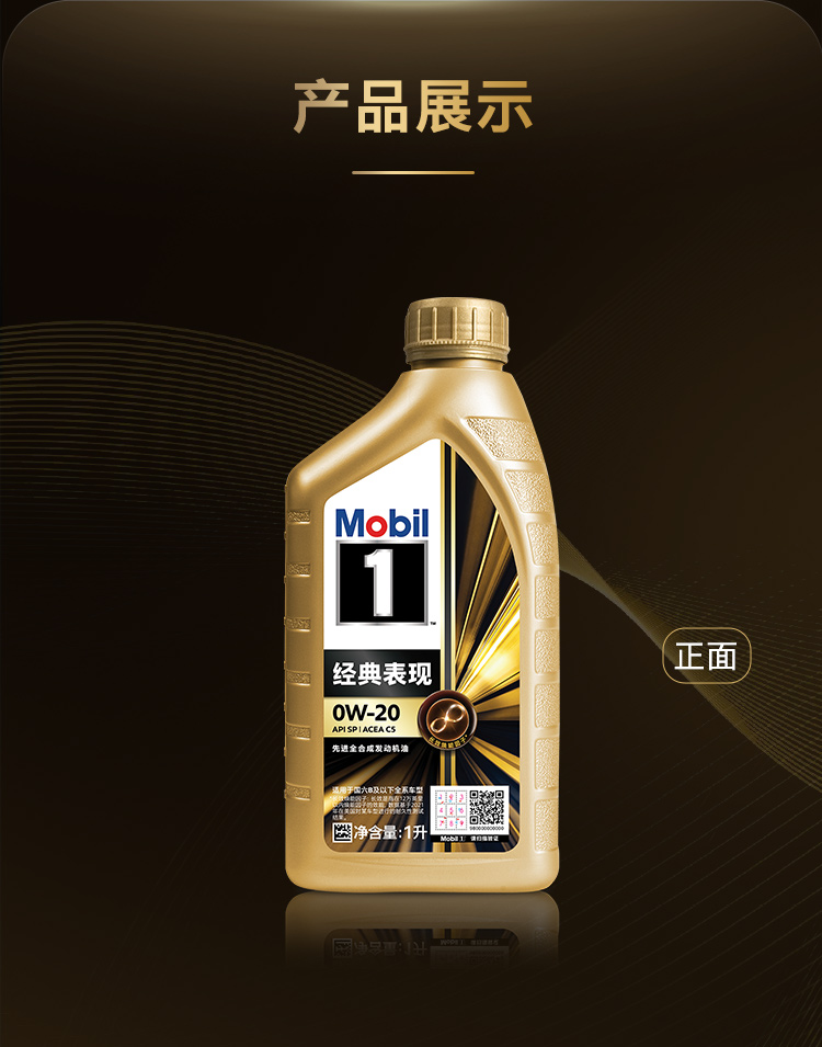 Mobil美孚1号经典表现金美孚0W-20 API SP 、ACEA C5 GF-6A 全合成机油