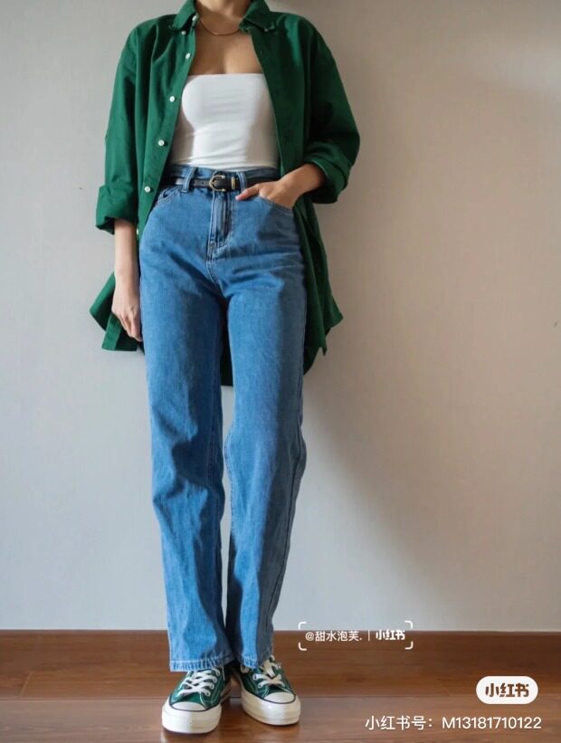 小红书上的图图 但凡往大了穿 就都是敞开 或者 卷袖 就不会出傻肥了 哈~