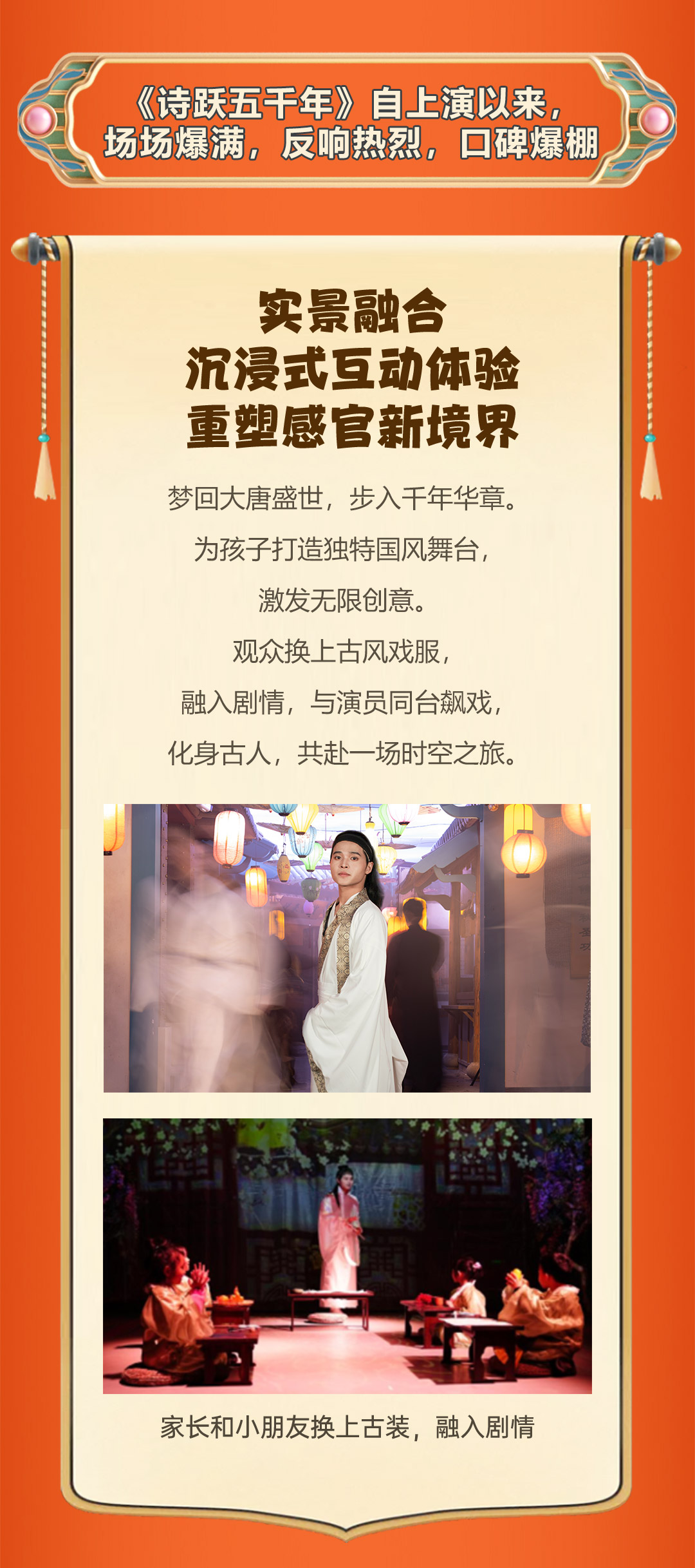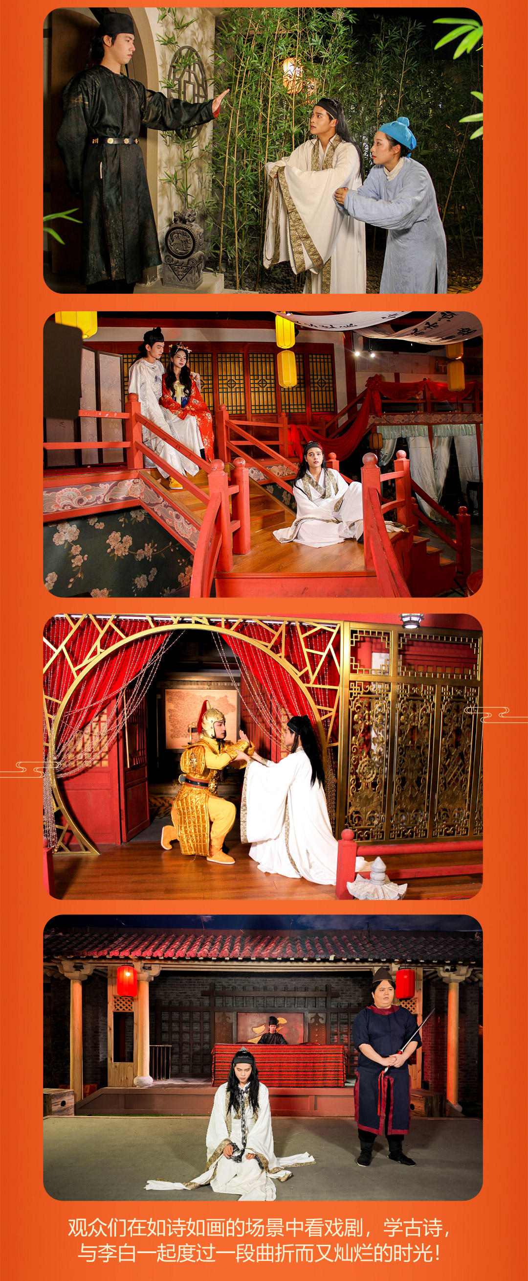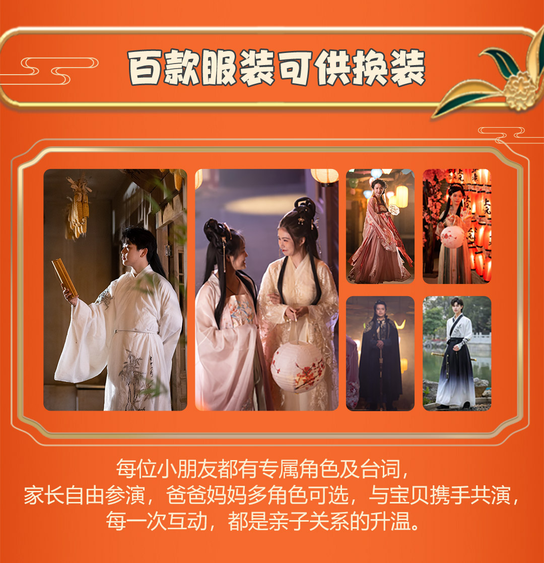 【注意事项】1.因免费提供汉服换装服务,请提前30分钟到达现场以便穿戴汉服。2.当天建议穿舒适的鞋子入场,勿穿高跟鞋,拖鞋;现场有收纳衣服的衣架。3.文明观剧,切勿对演员做出过激行为;拍照请勿使用闪光灯,手机调至静音。
