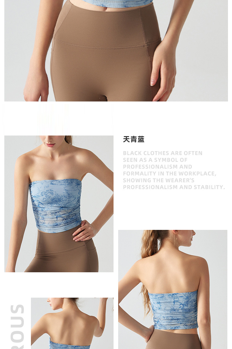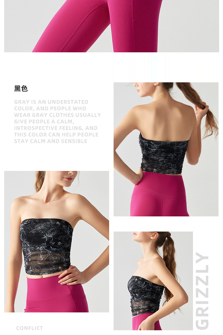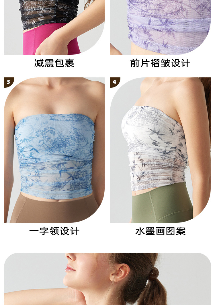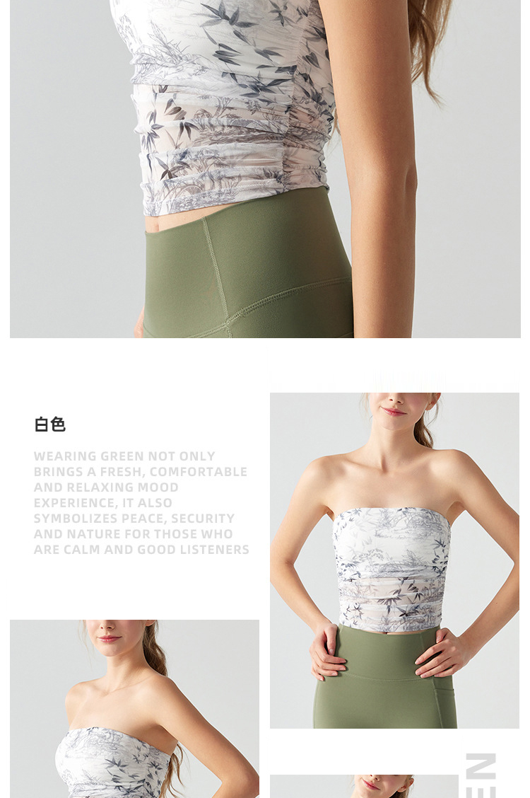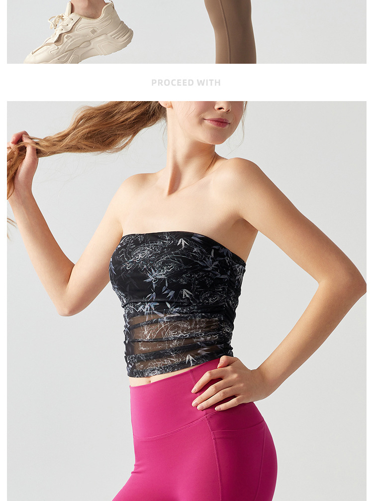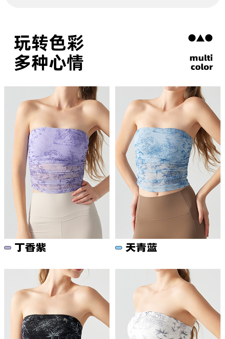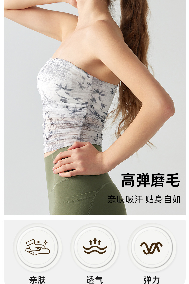 跃牌【海听系列】辣妹设计感印花抹胸带胸垫运动健身背心XC41