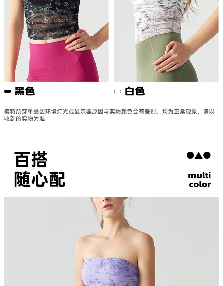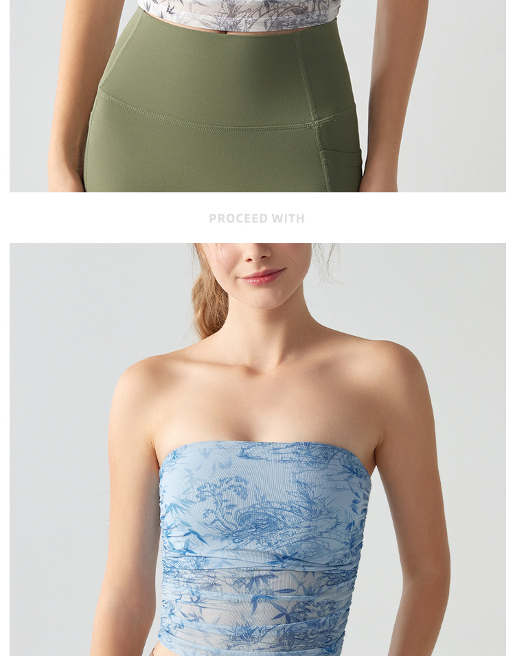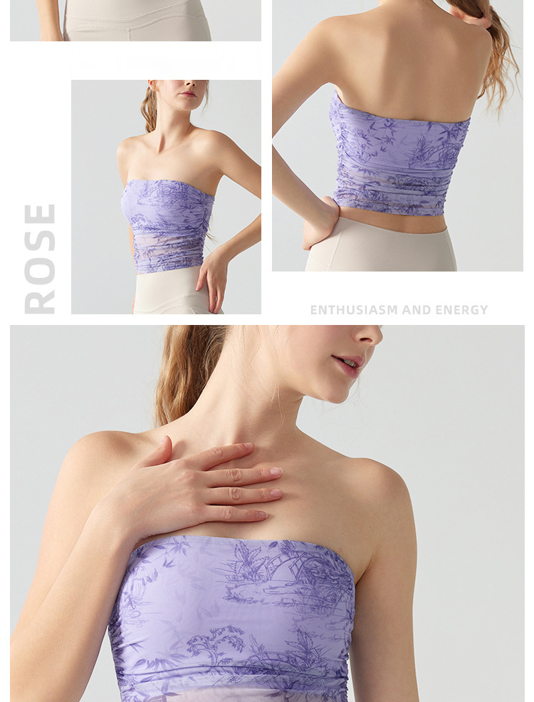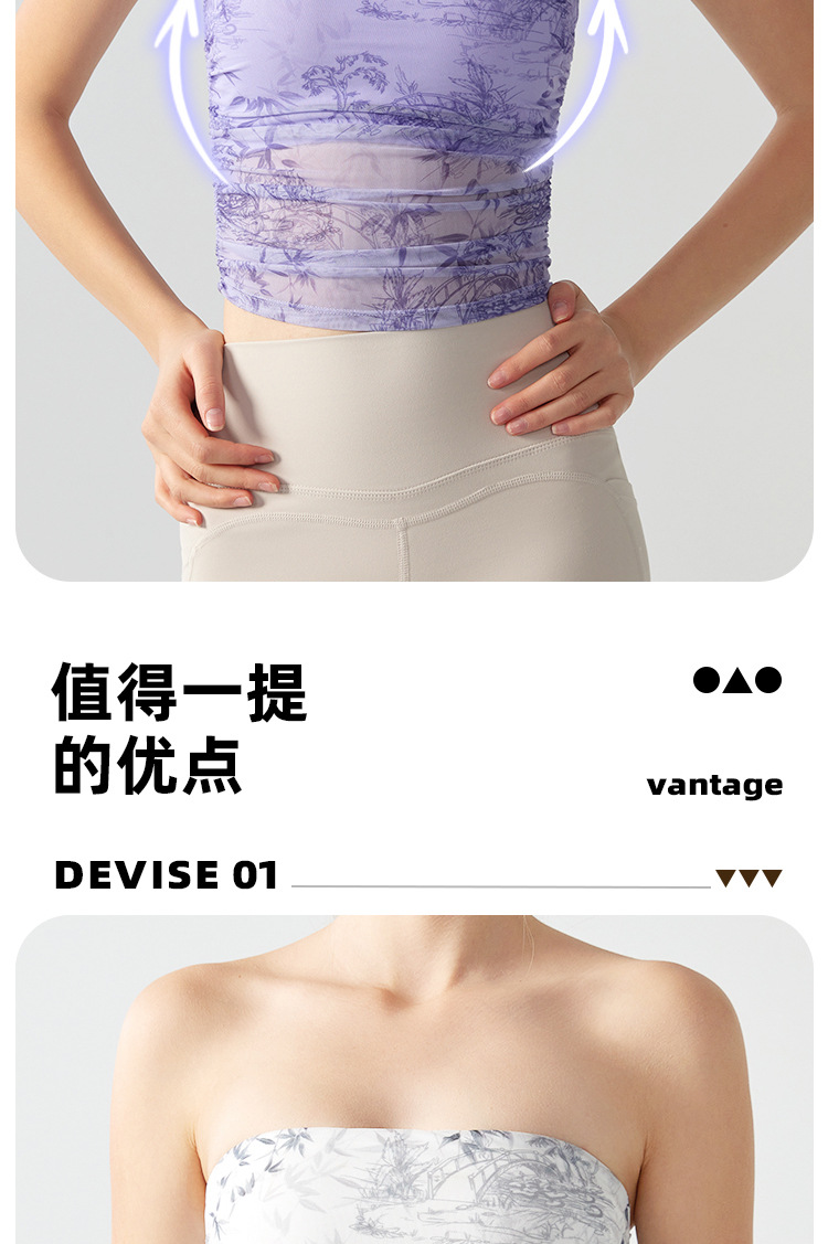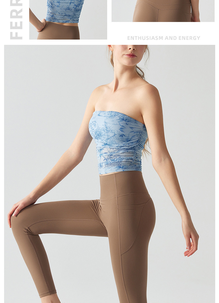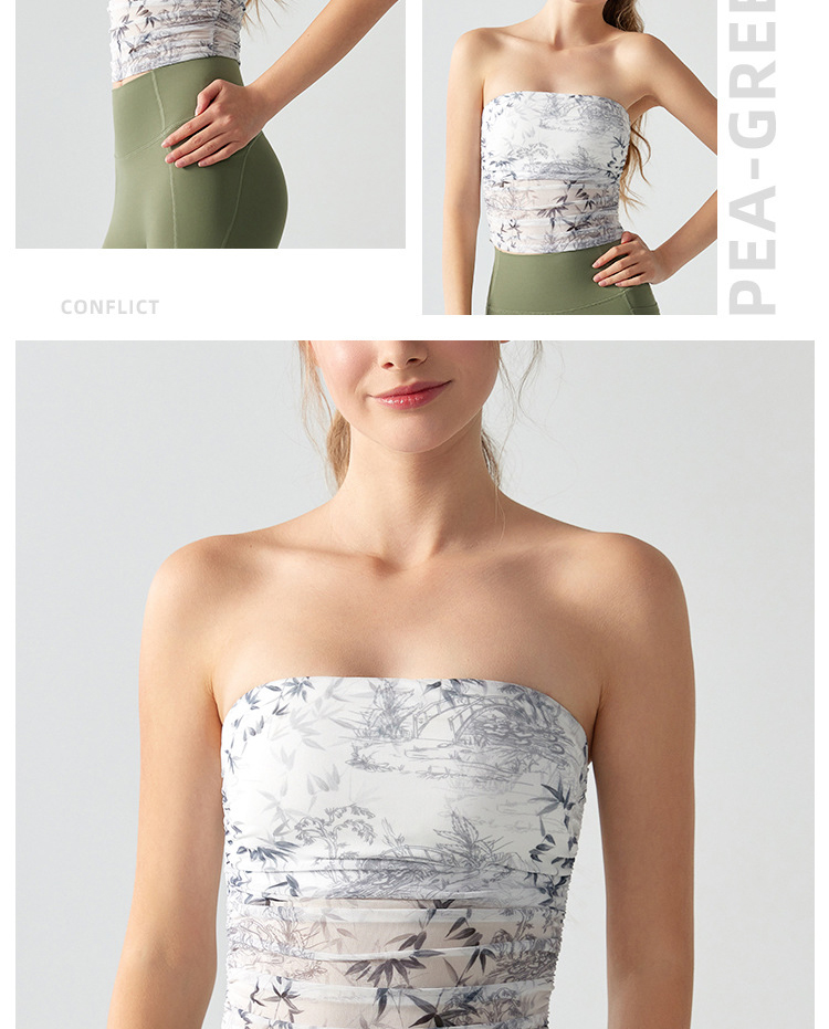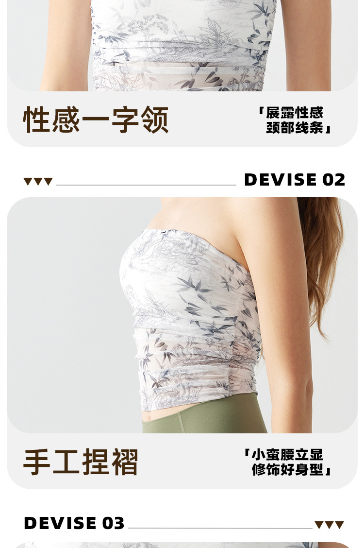 跃牌【海听系列】辣妹设计感印花抹胸带胸垫运动健身背心XC41