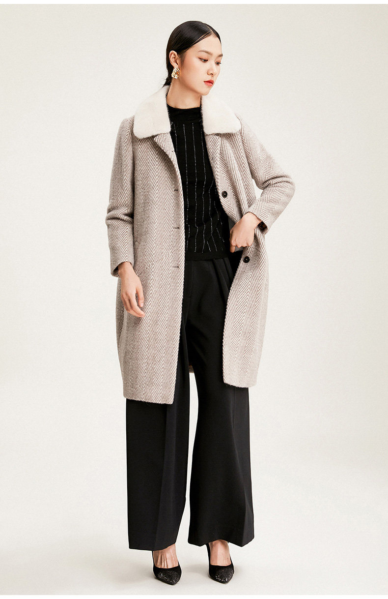 【羊驼毛】乔万尼秋冬流行毛呢大衣女中长款外套宽松时尚呢子大衣EN4A717