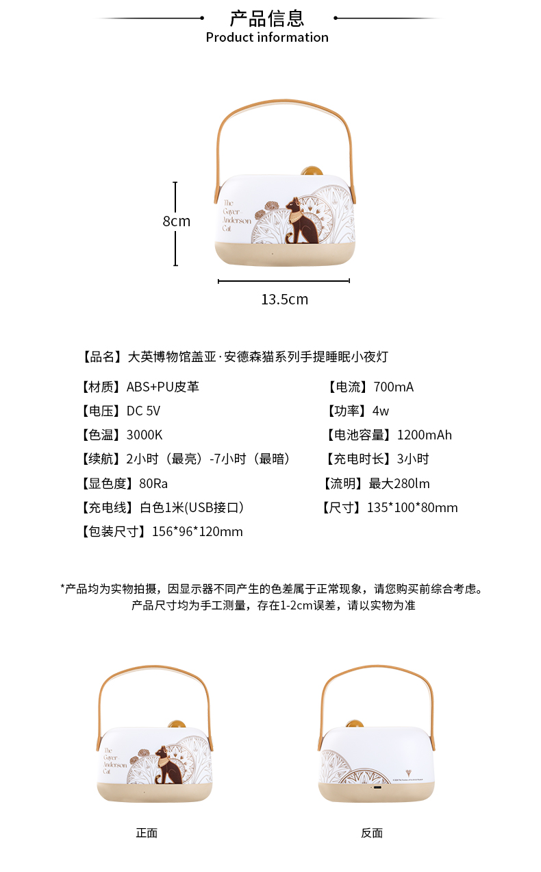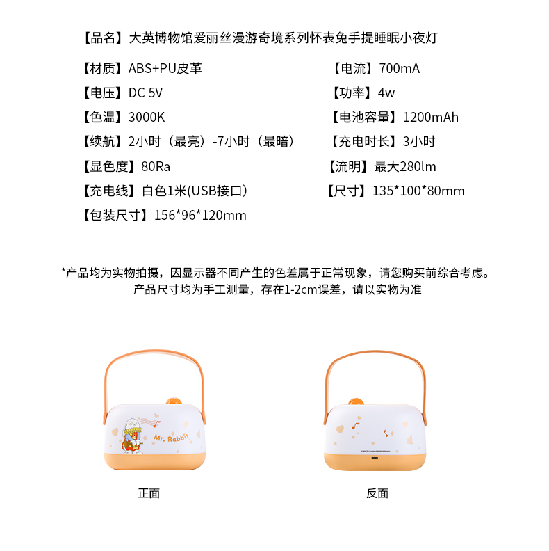 大英博物馆 盖亚·安德森猫系列 爱丽丝漫游奇境系列 安德森猫 怀表兔手提睡眠小夜灯 氛围灯 送礼 送朋友 节庆礼物
