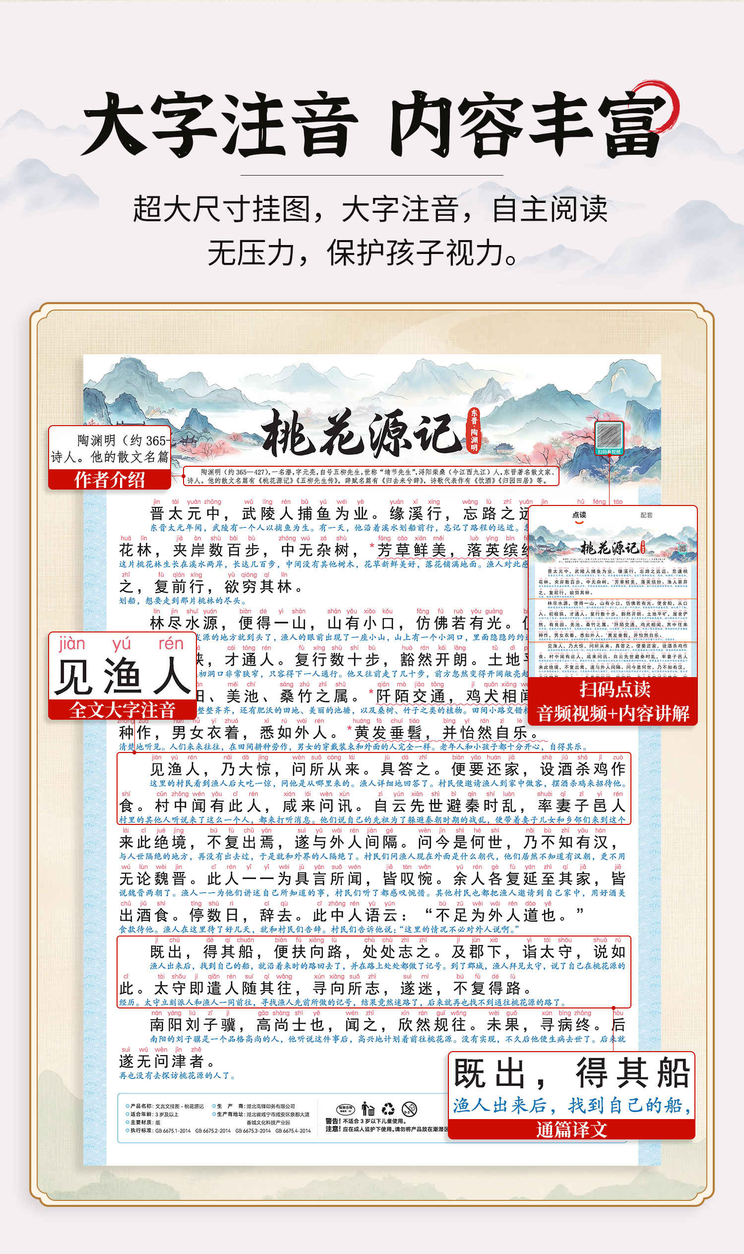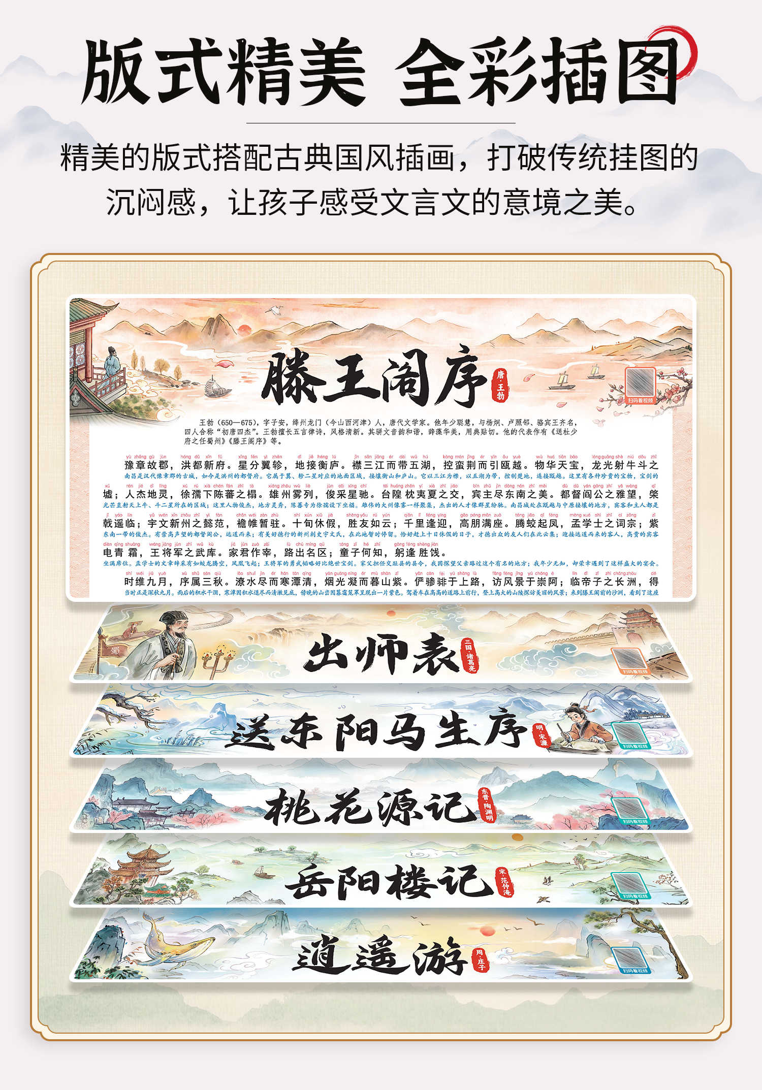 【斗半匠】小学初中通用文言文挂图出师表滕王阁序岳阳楼记桃花源记