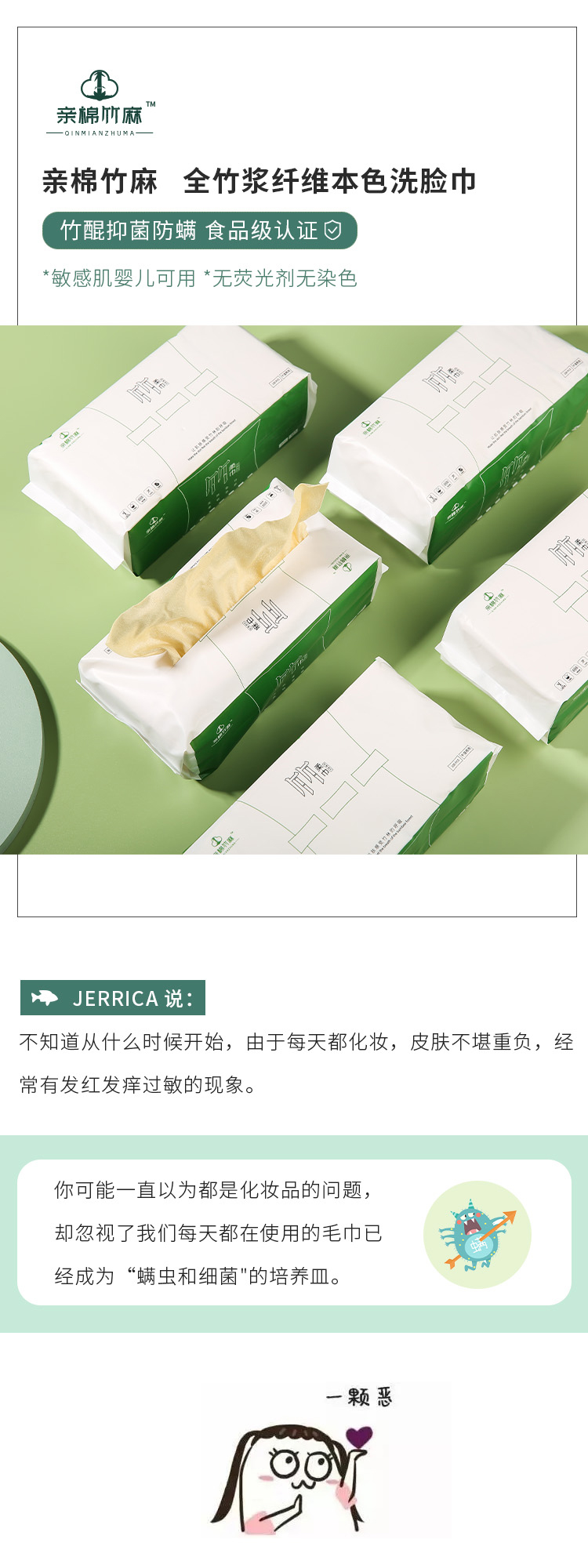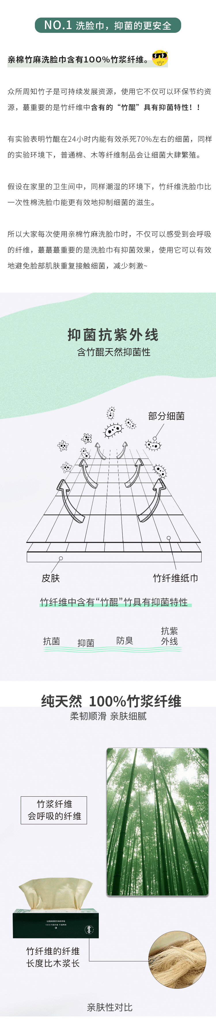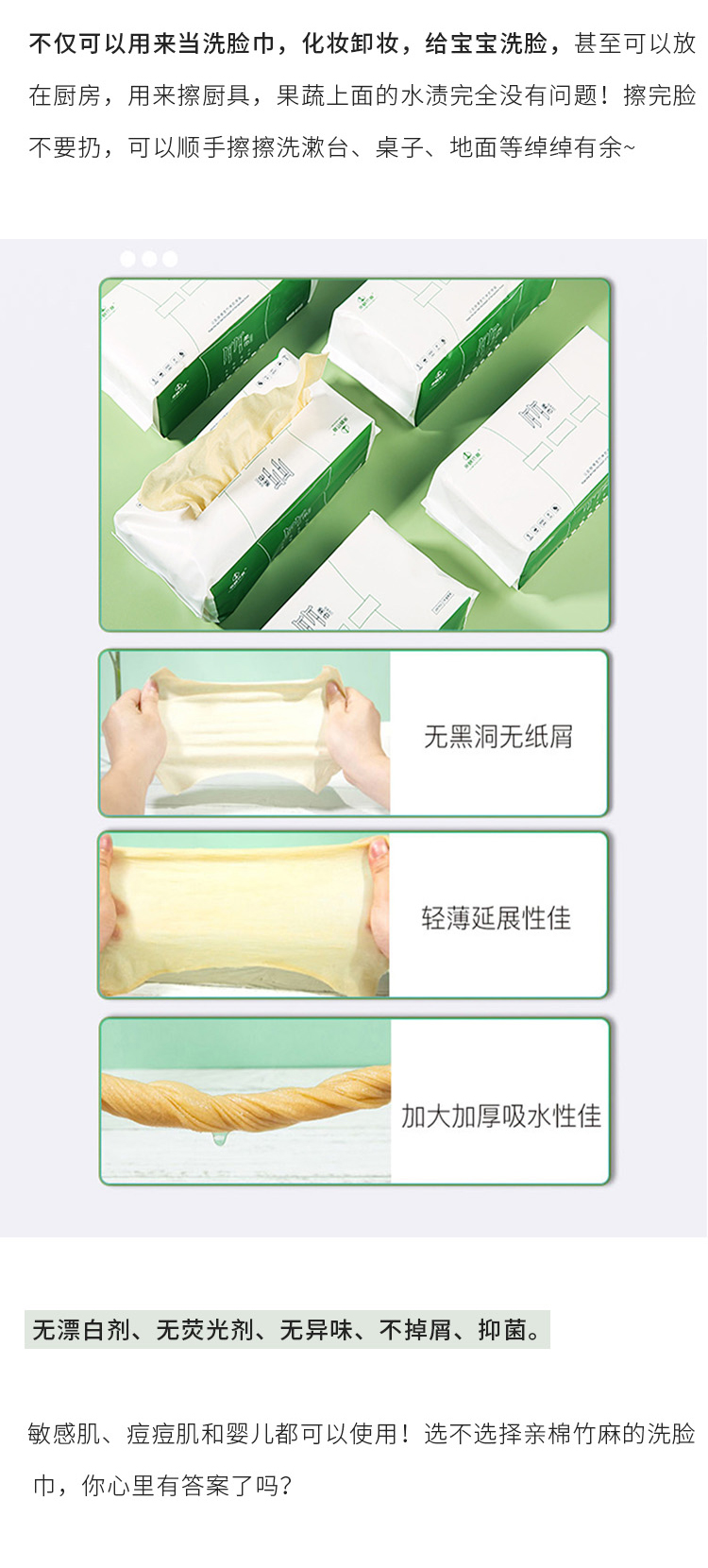 亲棉竹麻 【开春特惠:79元/4包】全竹浆纤维本色洗脸巾 竹醌抑菌防螨 食品级认证 敏感肌婴儿可用 无荧光剂无染色