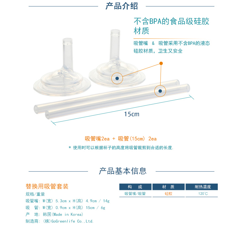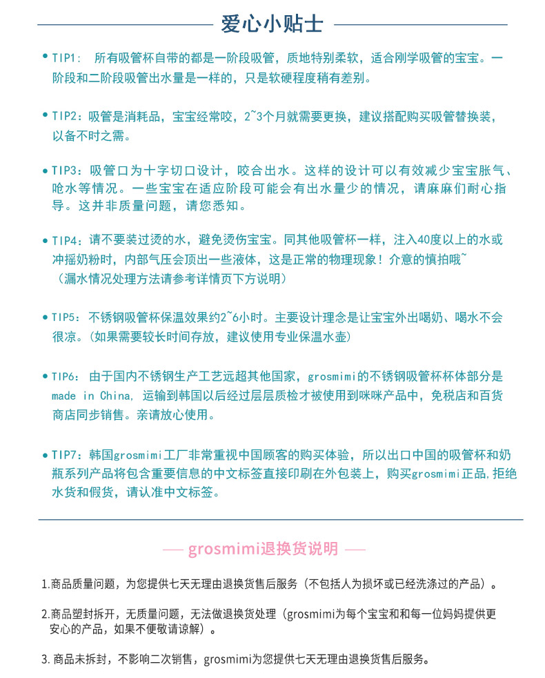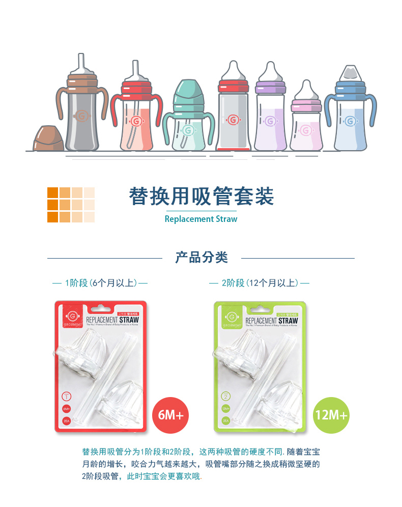 格罗咪咪Grosmimi进口宝宝吸管杯配件2段婴儿学饮防呛水杯-GLM-82110/1阶段吸管套续件6个月(两枚装)-GLM-80383