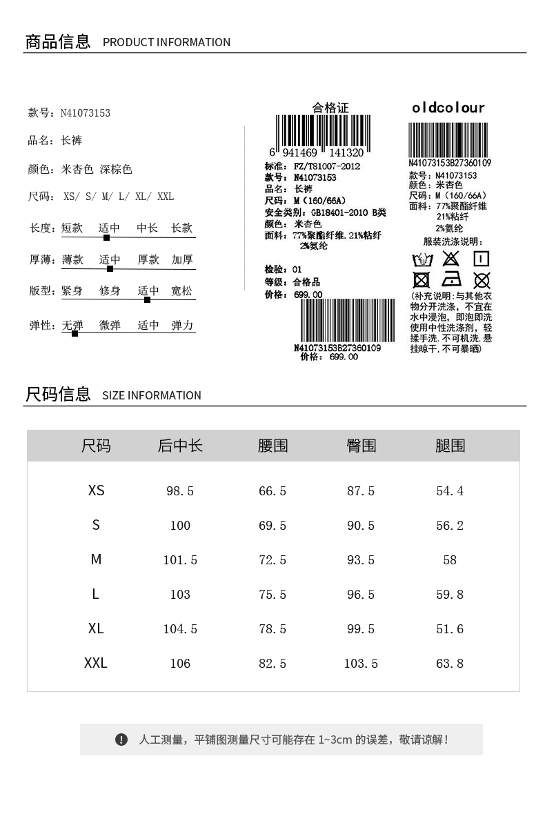 oldcolour2021冬季新款气质百搭高腰显瘦微喇休闲裤N41073153