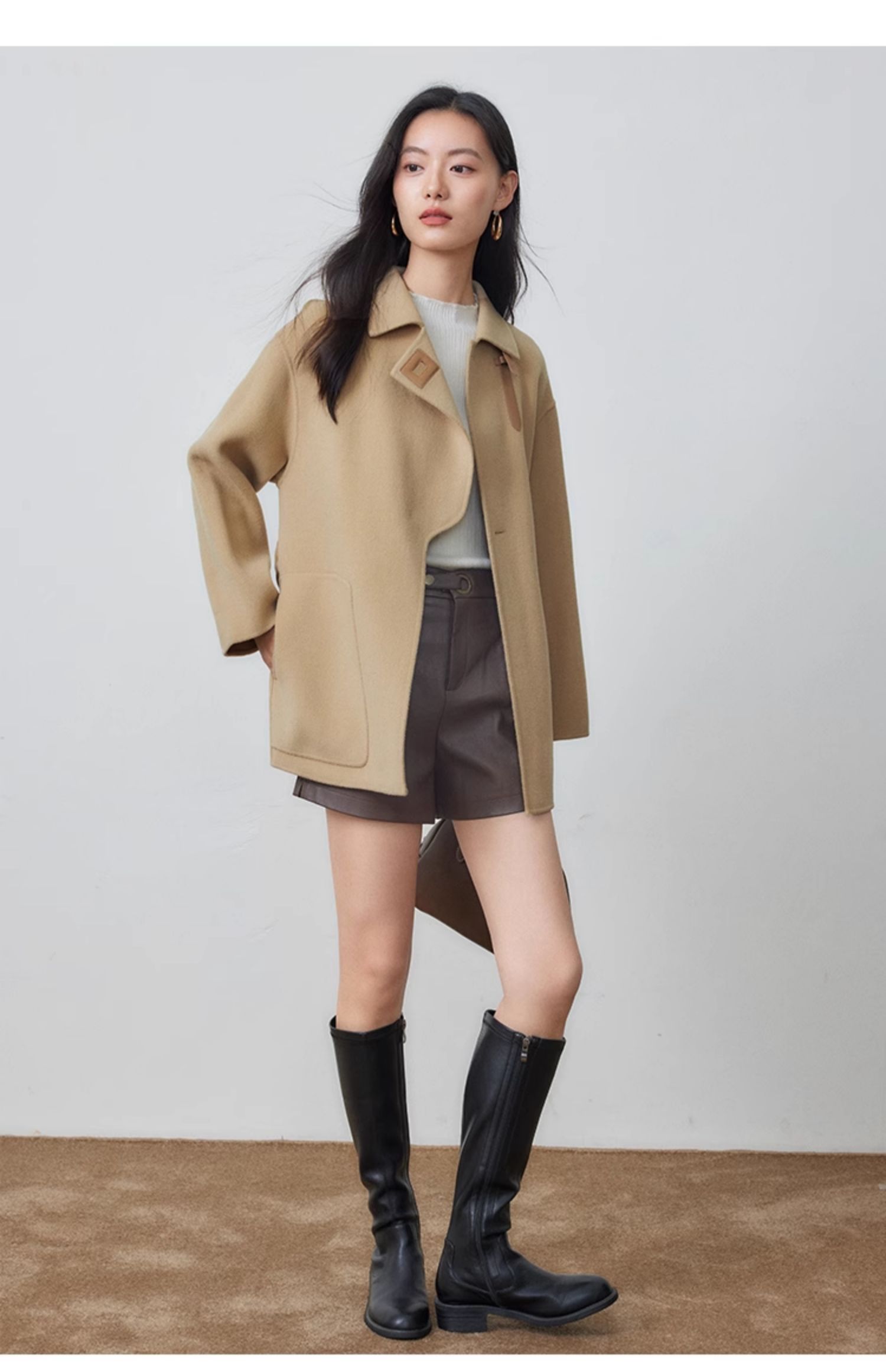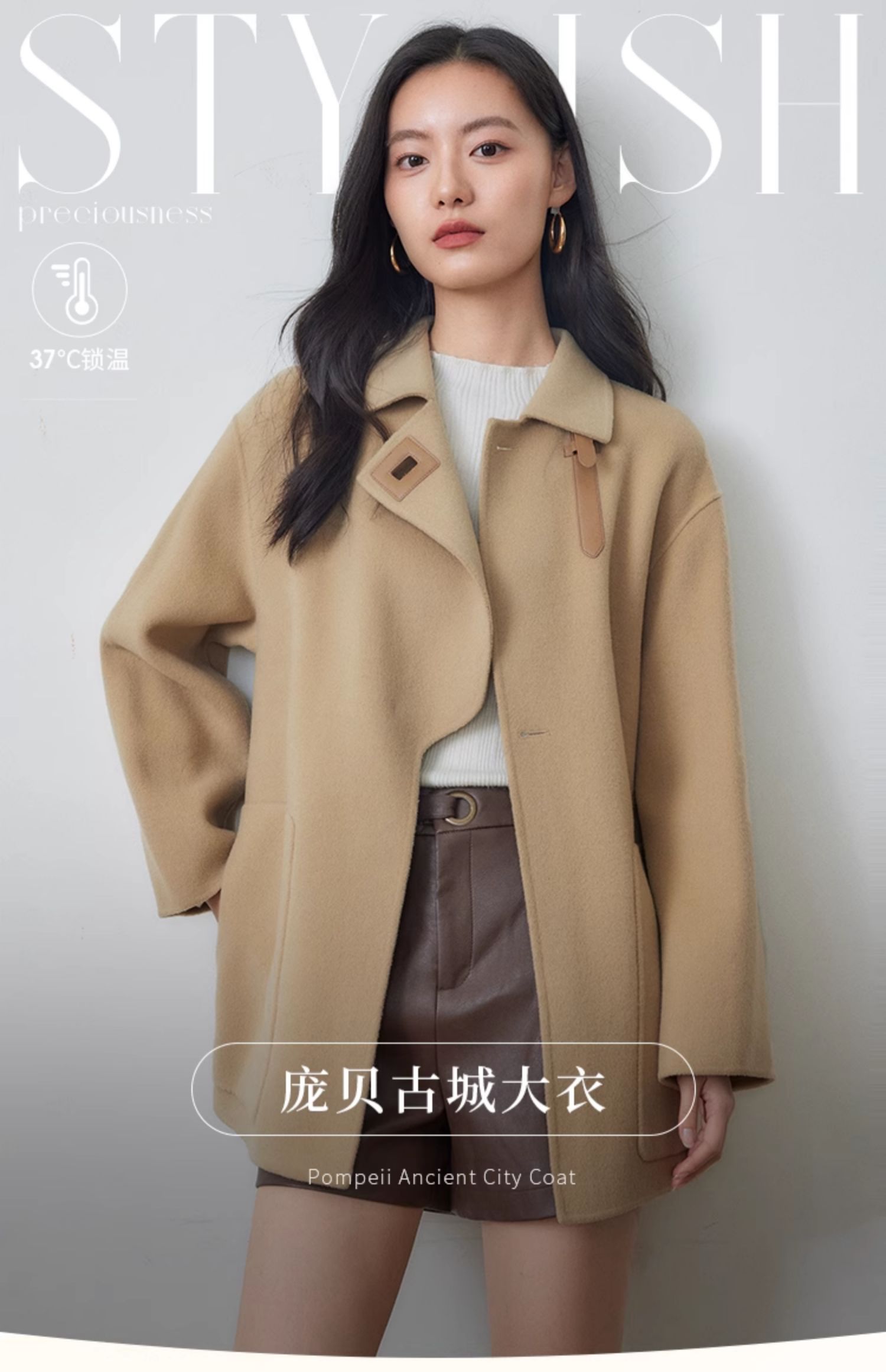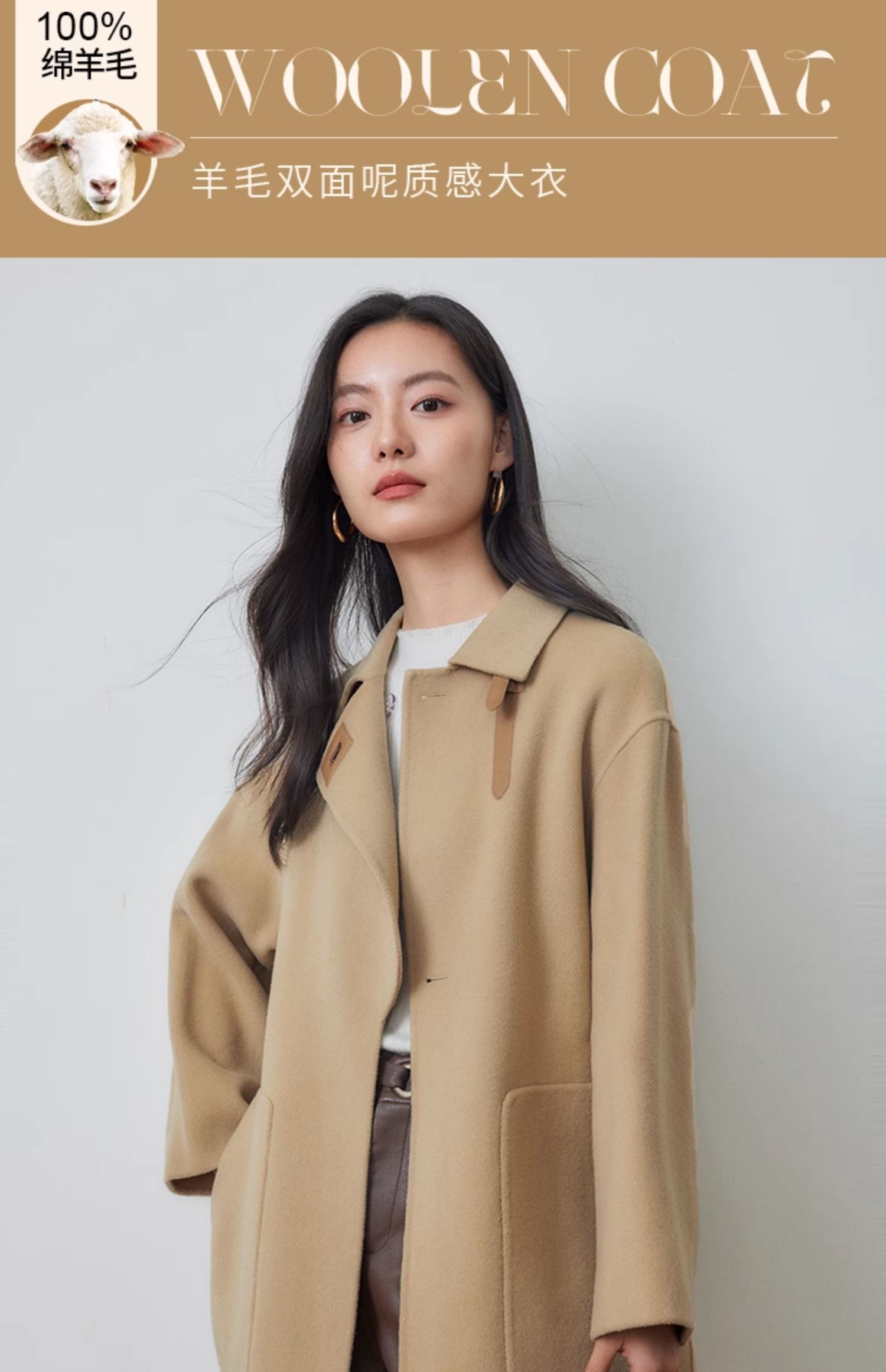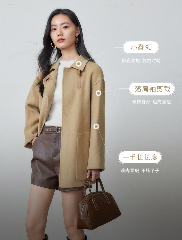 【年货节】熙世界羊绒大衣女秋冬高级感赫本风双面羊毛呢子外套