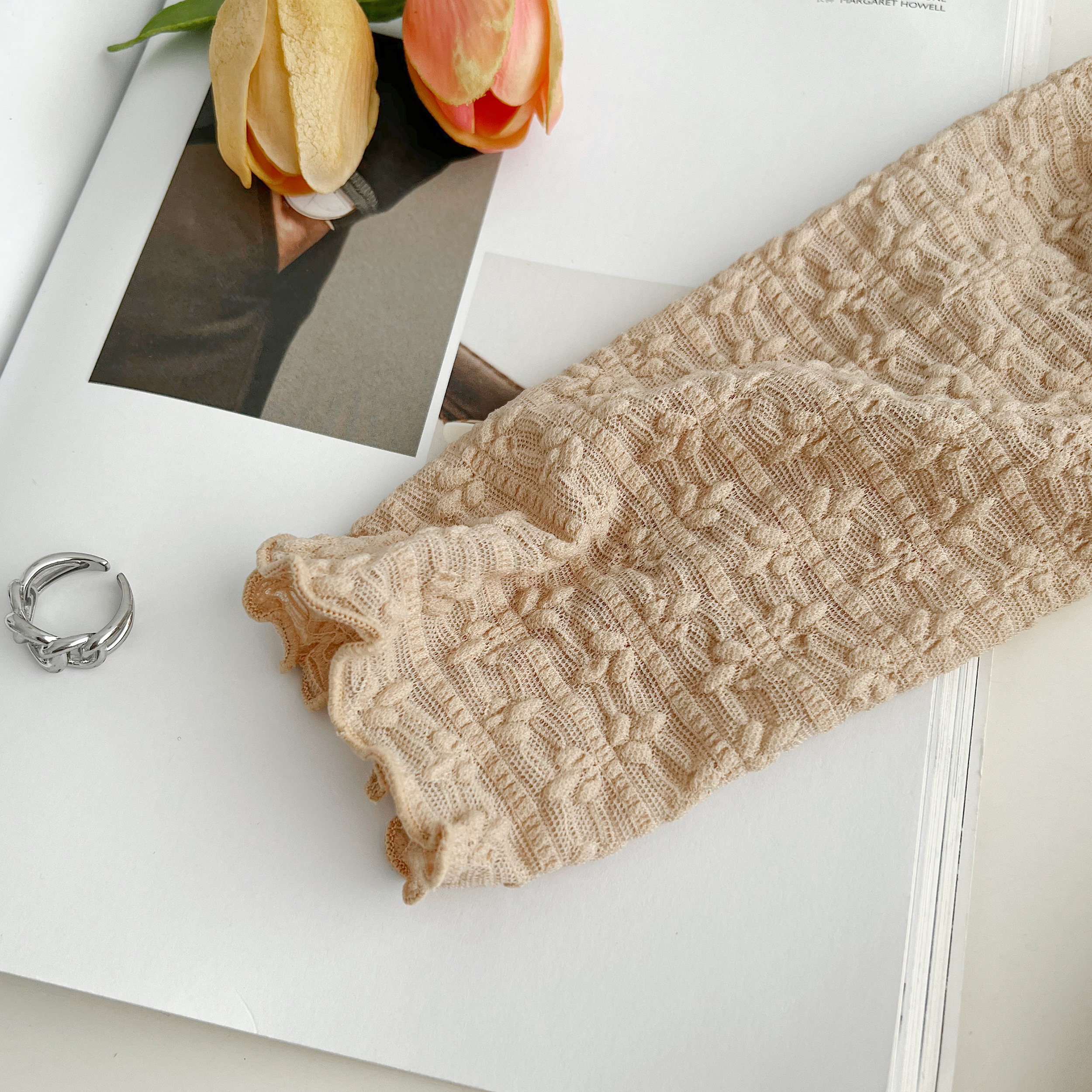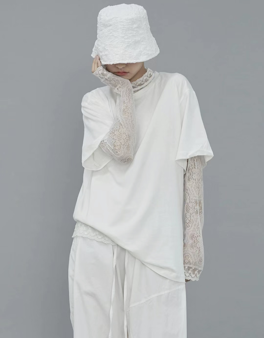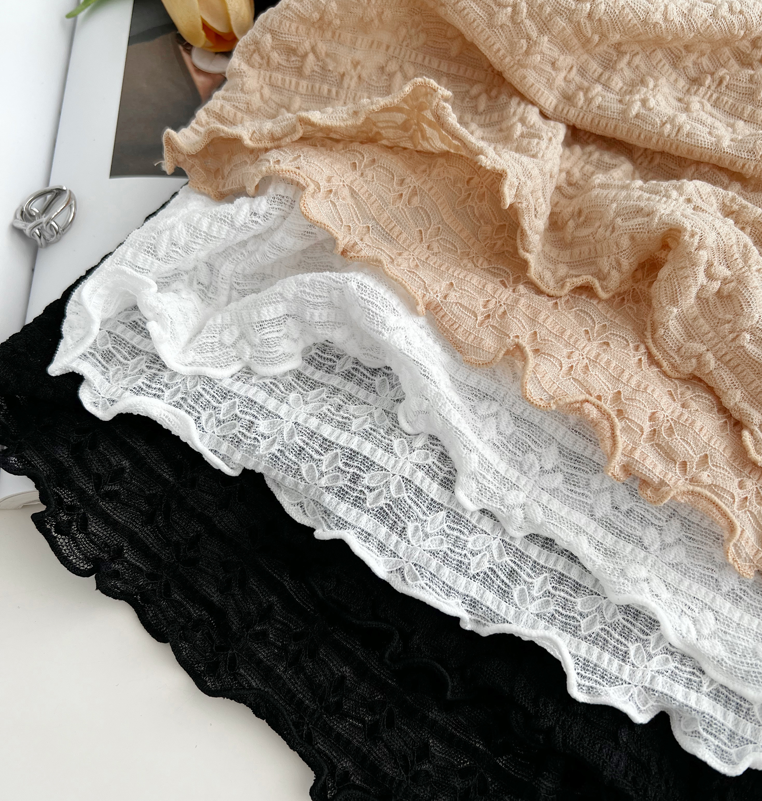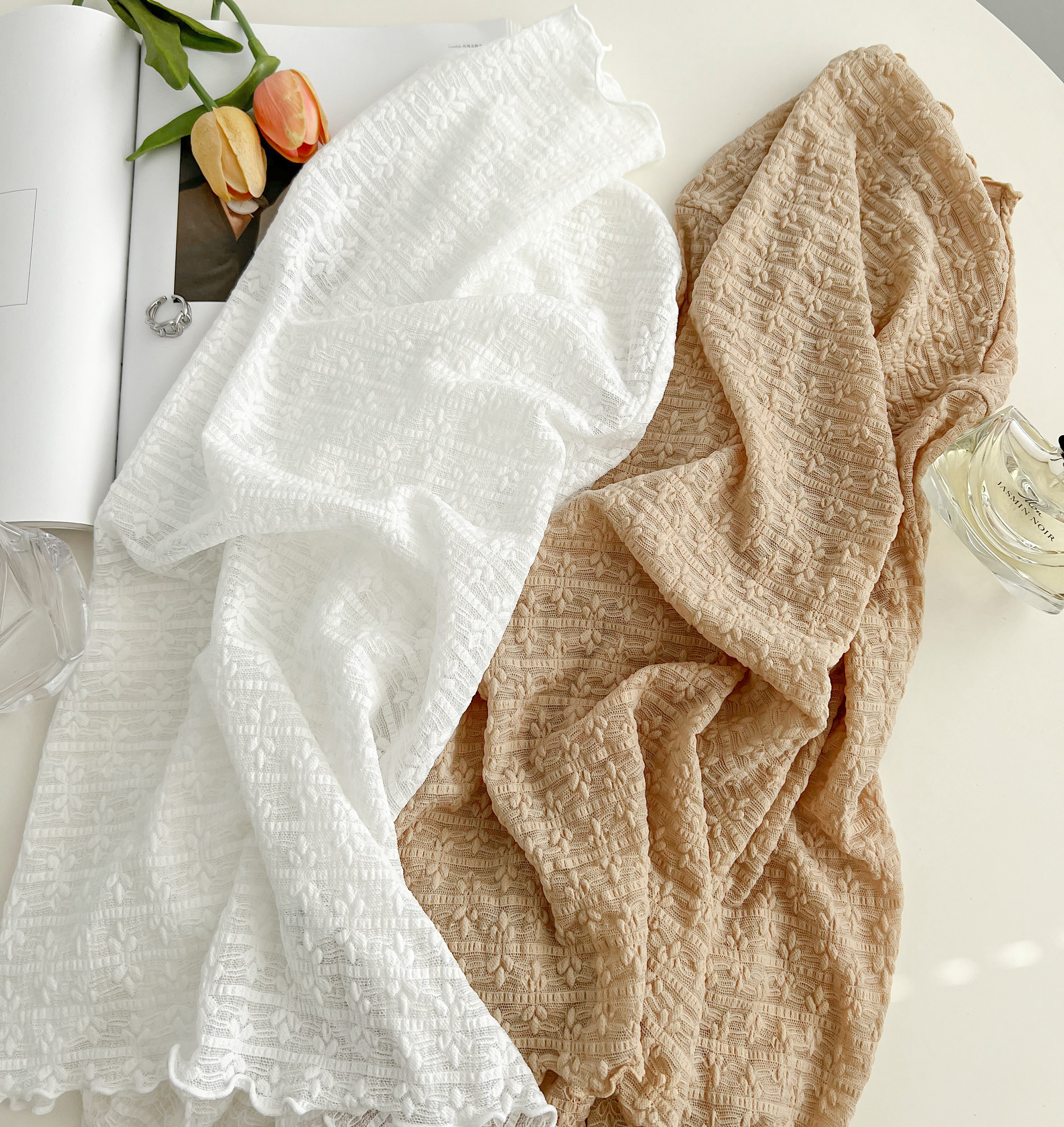 老米优品/小仙女的蕾丝衫《温柔泡泡蕾丝仙气打底衫》精美的小树叶花型无比治愈~~亲肤弹力好。T230907B